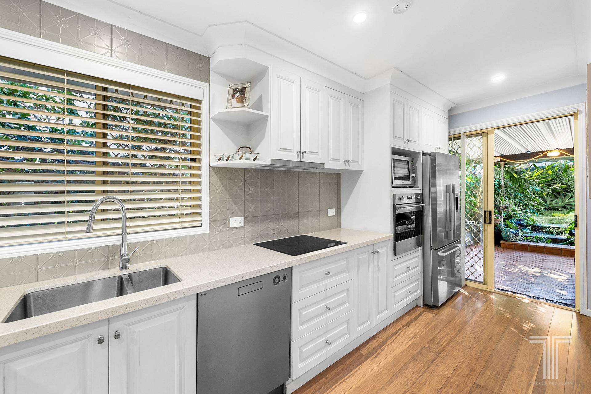 This fully renovated low set house rests on 405sqm in a quiet Coorparoo street. A tropical oasis surrounded by plants and greenery, the property is easy to maintain and presents a functional layout with open plan living and three bedrooms.