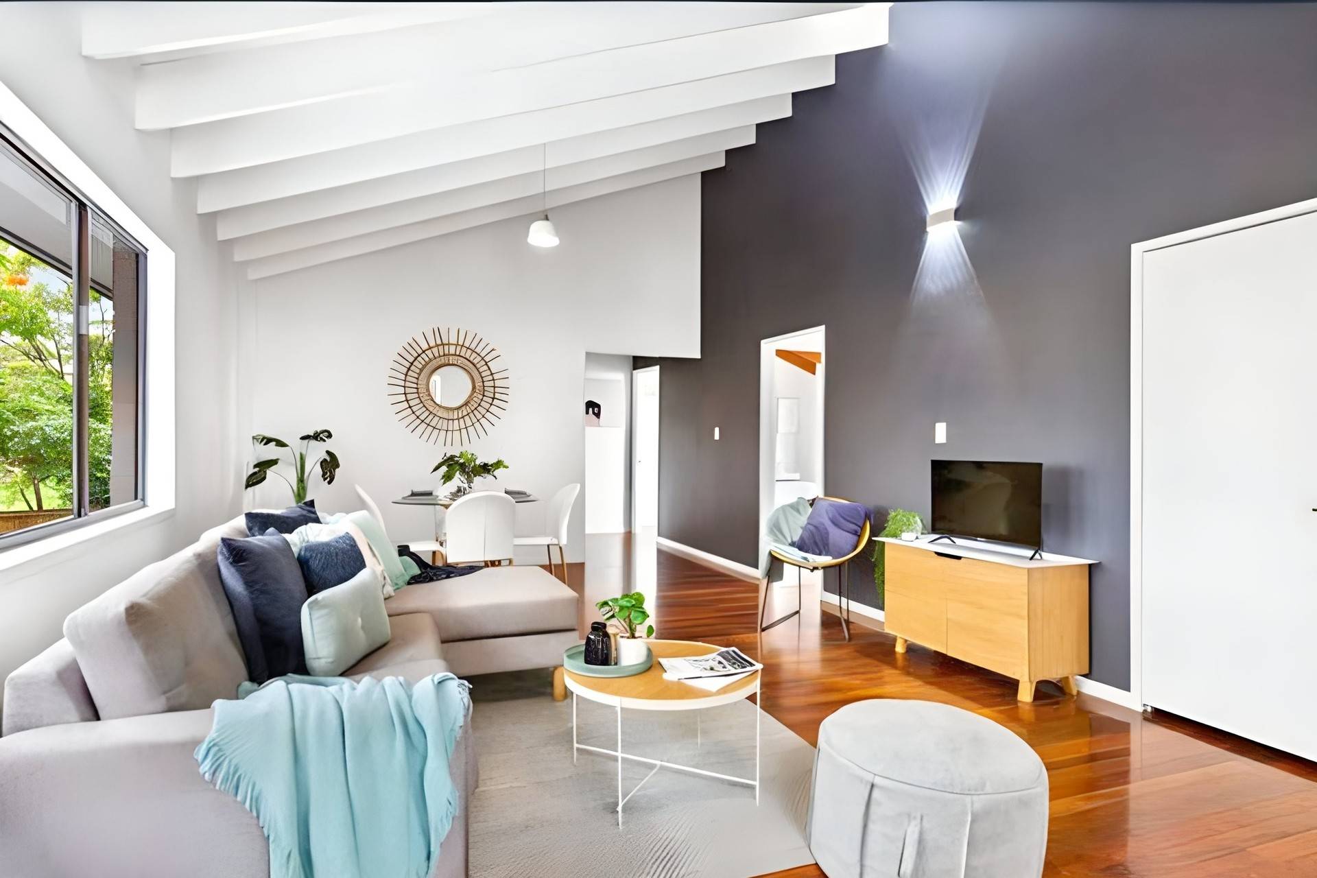 - Open plan living, kitchen, and dining