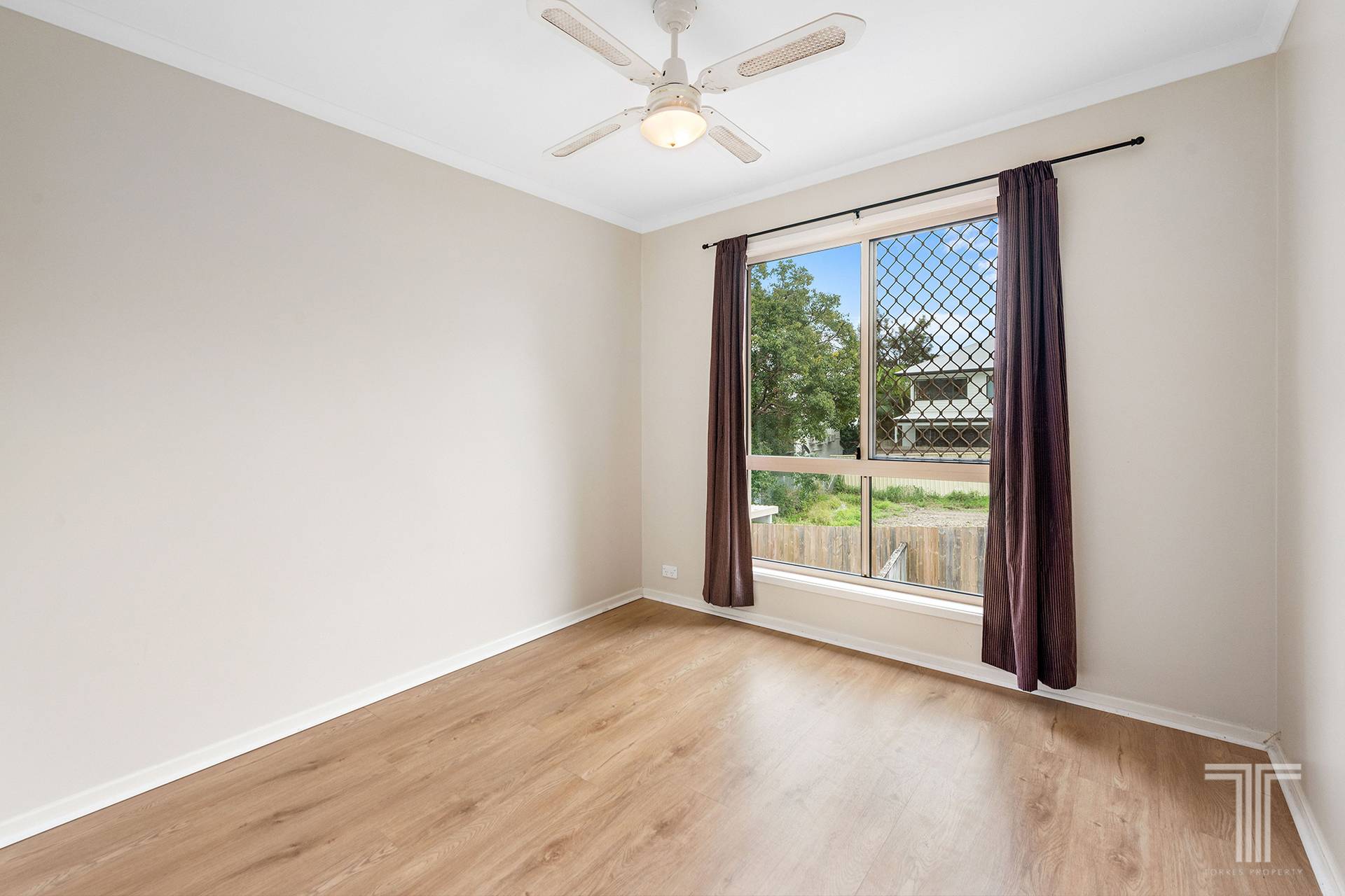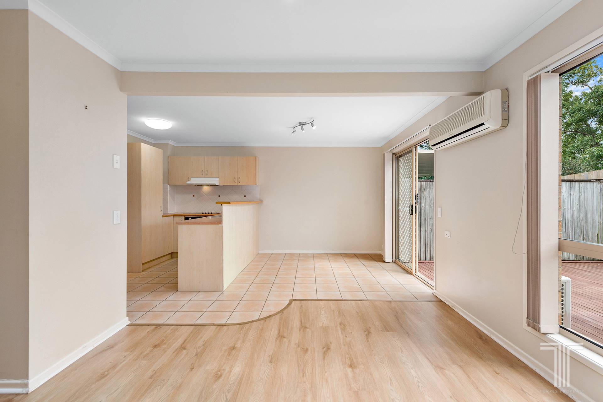 The open plan living and dining area is bright, air-conditioned and adjoins the well-appointed kitchen with stainless steel appliances. Stepping out to the large timber deck overlooking the private courtyard, lawns and gardens, this fully fenced and secure outdoor space is ideal for kids, pets and entertaining.
