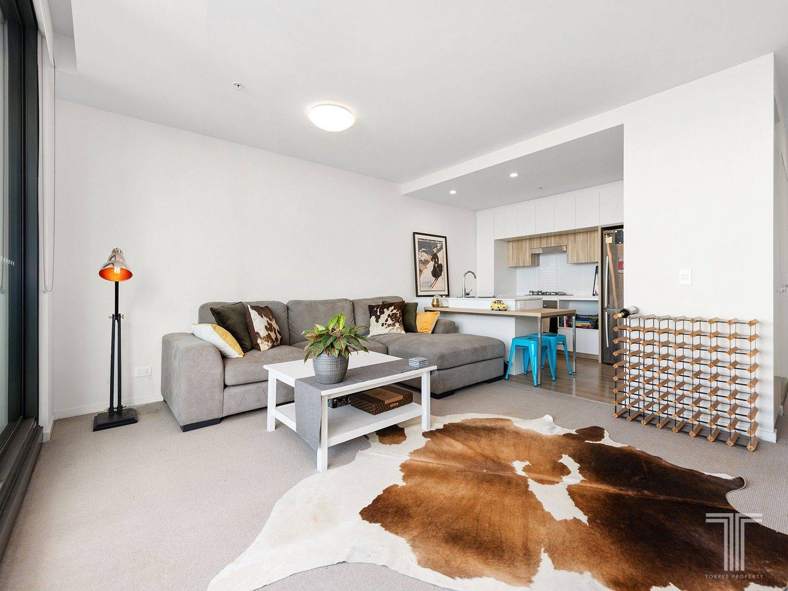 The floor plan of the apartment is highly functional, Featuring an open-plan kitchen with stone bench tops and breakfast bar, 4-burner gas stove, dishwasher and ample cupboard space. The lounge and dining area features direct access to the spacious North-facing balcony, capturing those all year round breezes. A spacious Master bedroom, complete with floor-to-ceiling glass windows, and built in wardrobes for convenience.