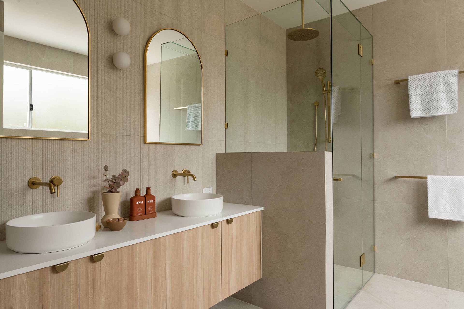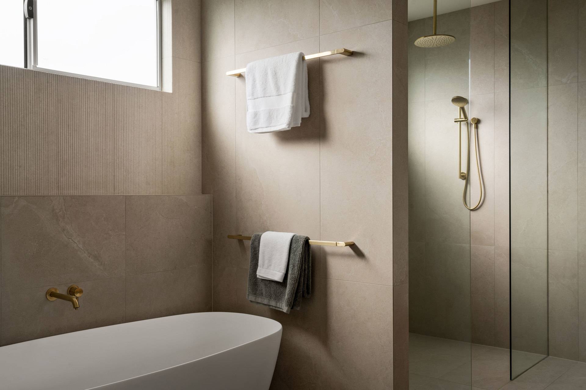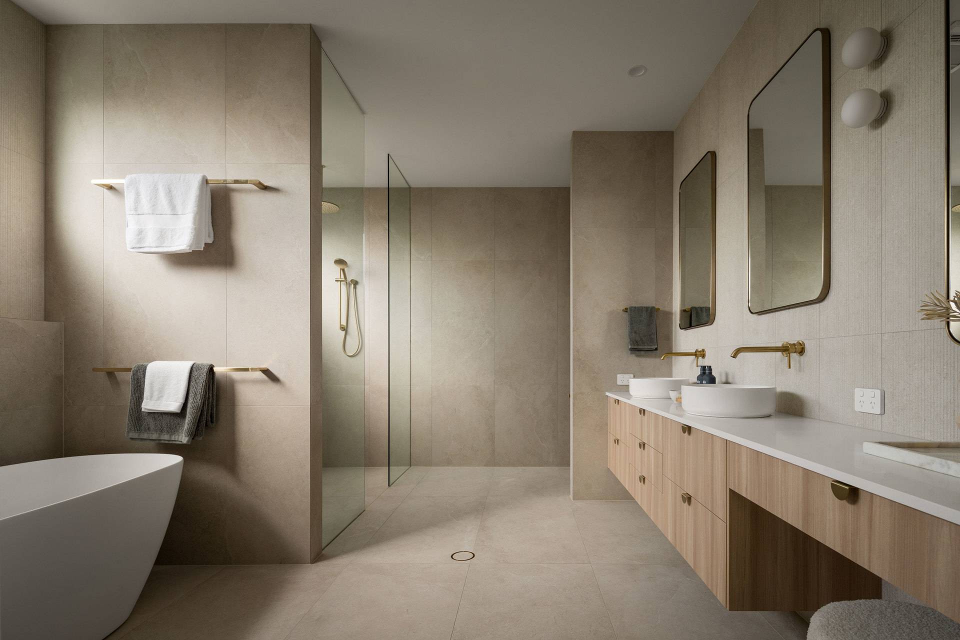 - Three stunning floor-to-ceiling tiled bathrooms with frameless glass shower screens, feature lighting and in-wall cistern toilets