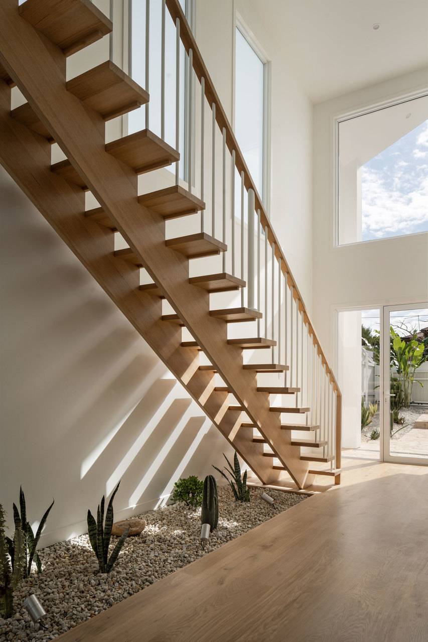 - Feature staircase above internal landscaped atrium; open plan living; upstairs family area; two study areas
