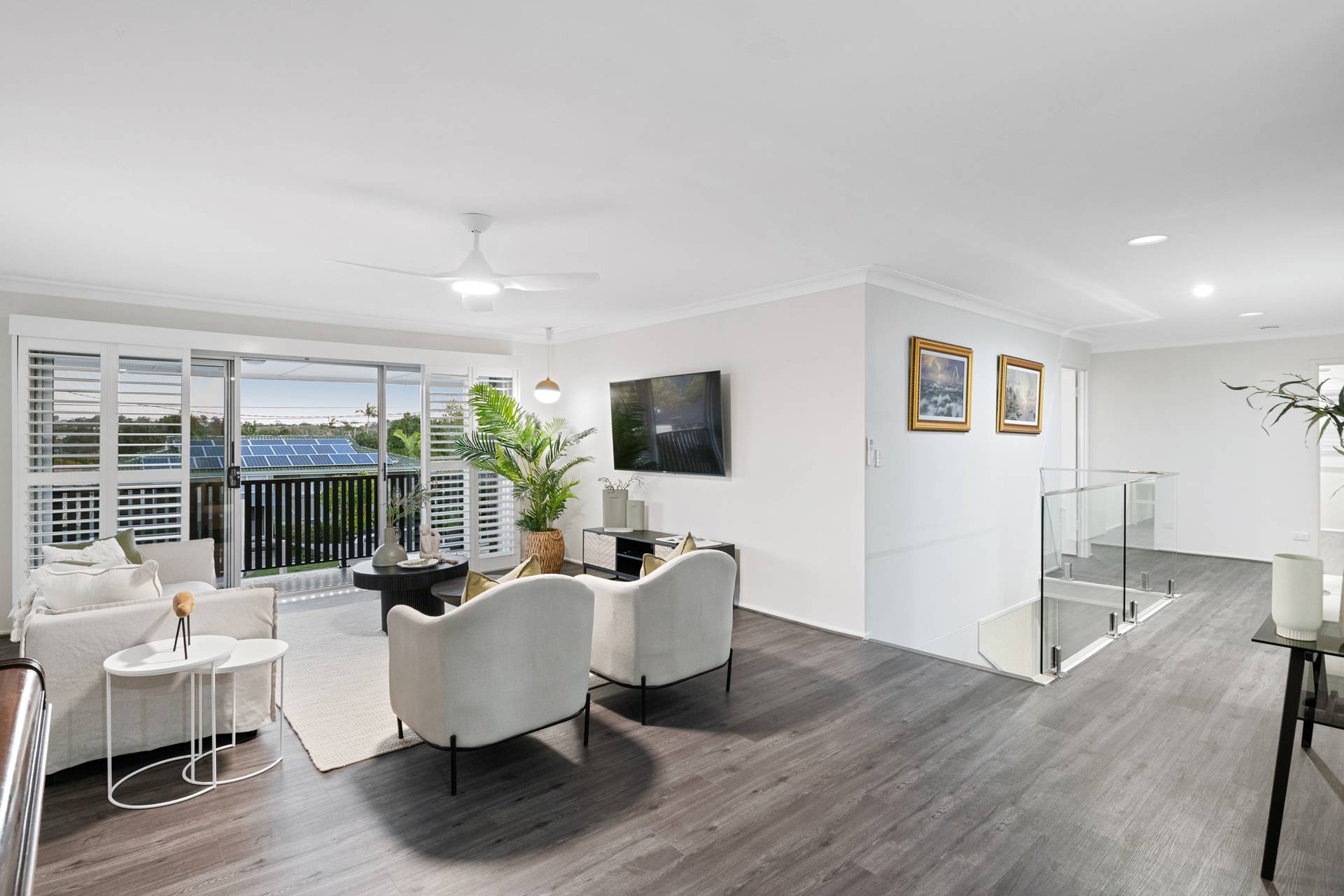 Designed for relaxed family living, the upper floor flows across the light-filled living and dining areas into the superb kitchen, featuring extensive cabinetry and quality appliances, including a dishwasher. Stepping out to the front balcony, which captures scenic views, and moving out to the private rear deck, you can enjoy peaceful moments and sensational entertaining outdoors.