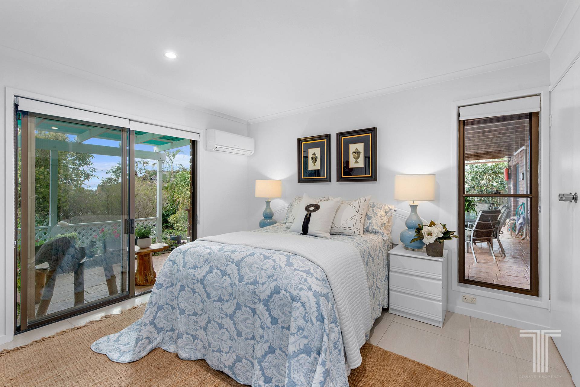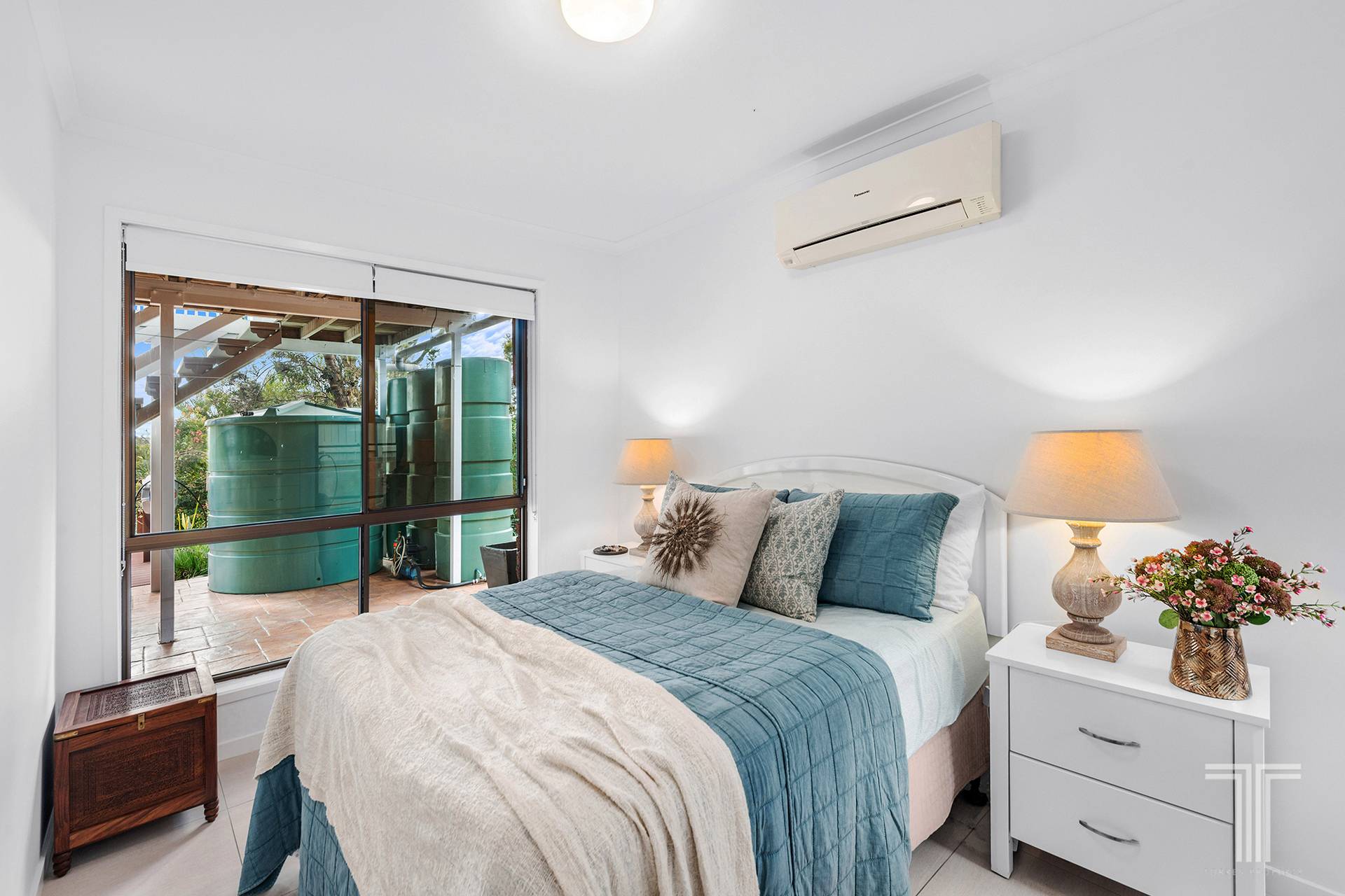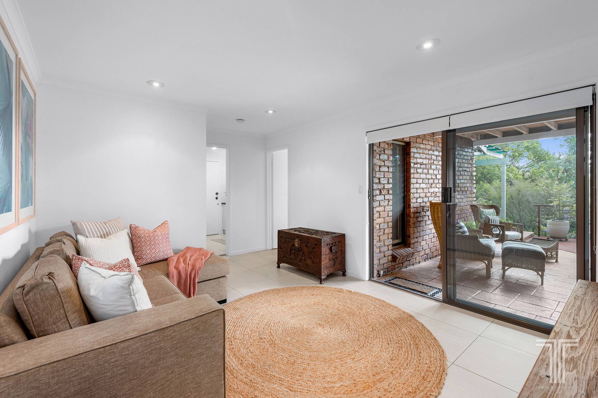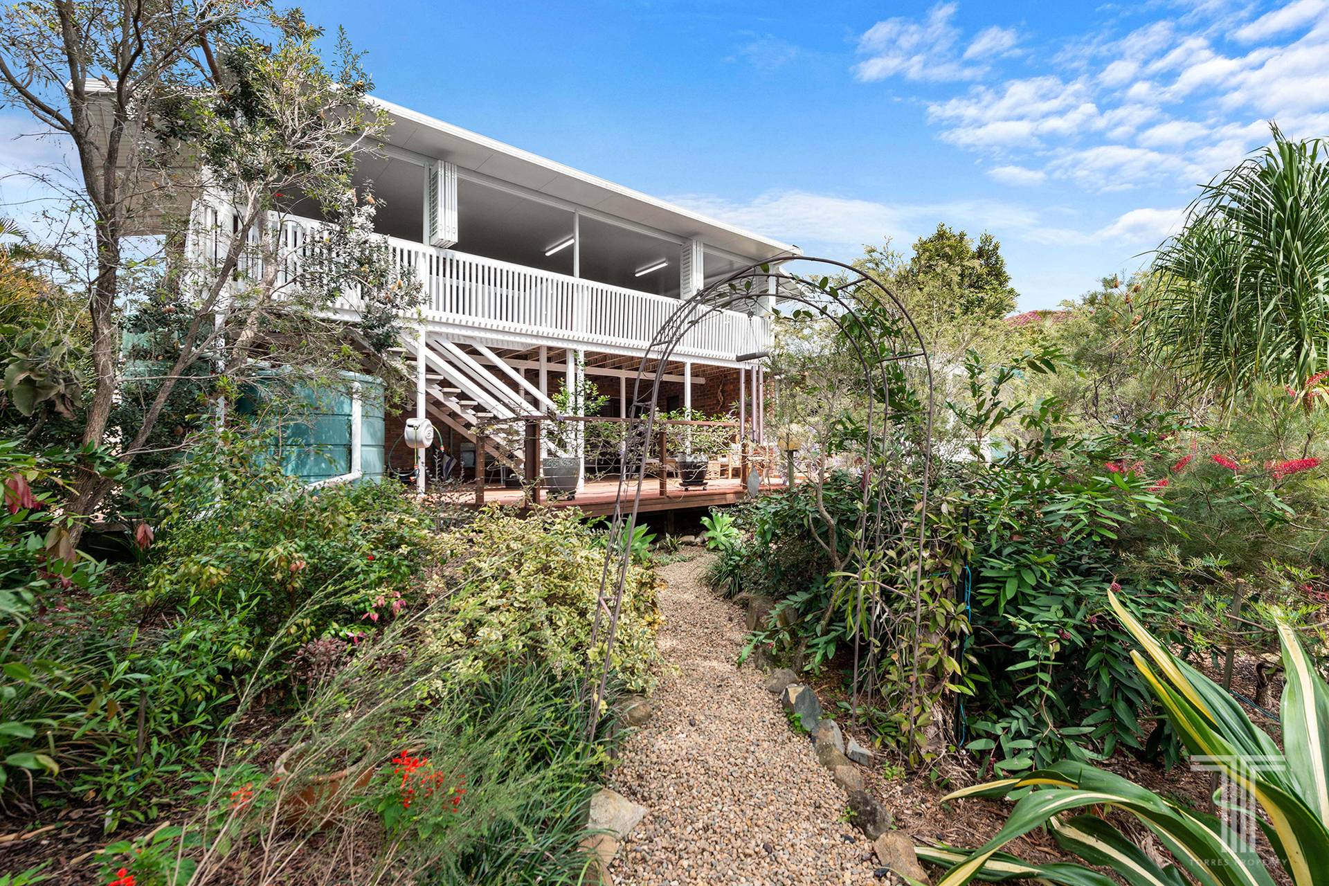 The ground floor presents a private breakout zone with a sitting room opening to the undercover patio, sun deck and an outdoor bath. Flowing out to meandering paths leading through the sprawling gardens, you can lose yourself amongst the native trees, North Queensland tropical fruit trees, ground orchids and honey-producing native bees.