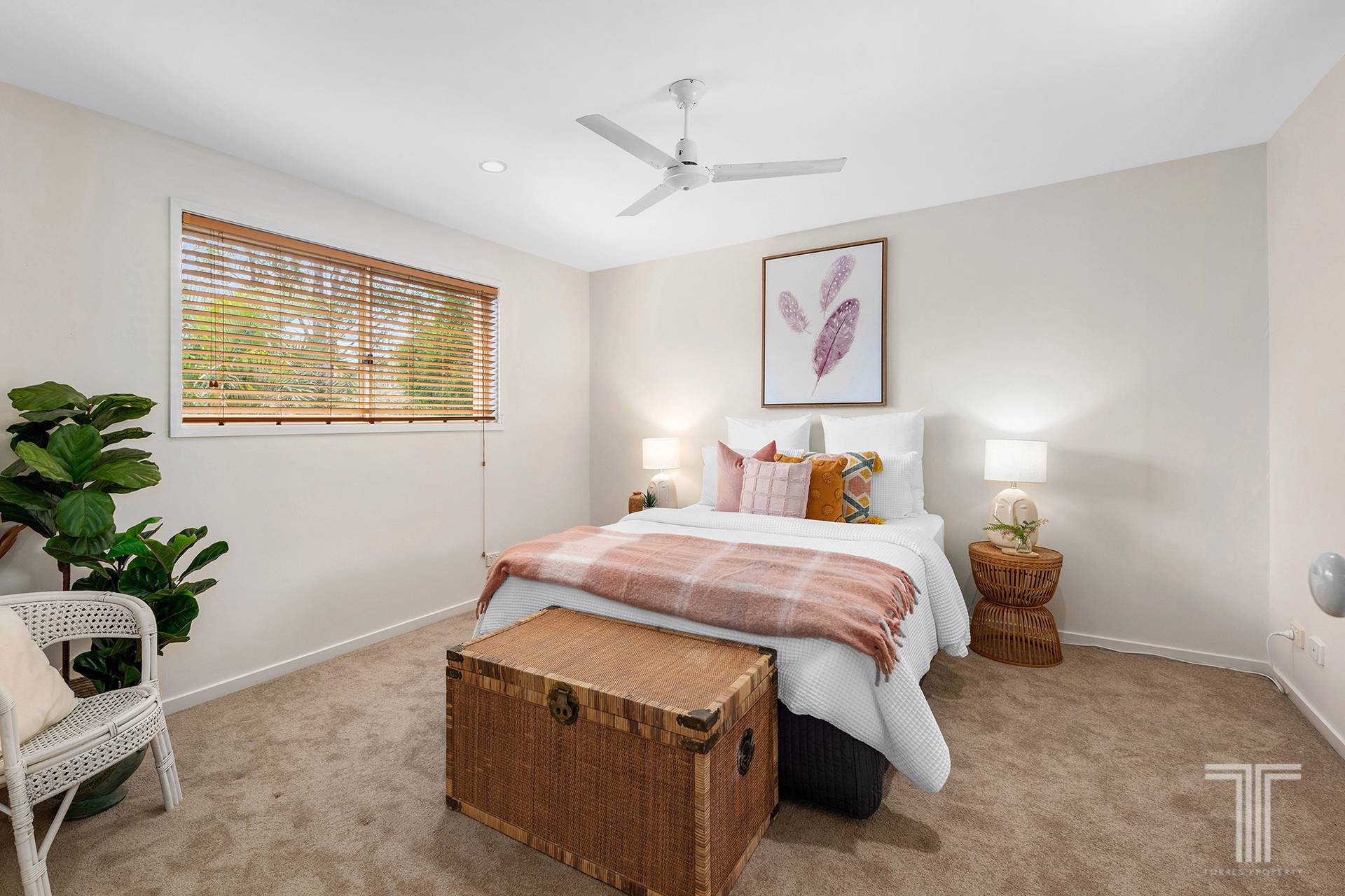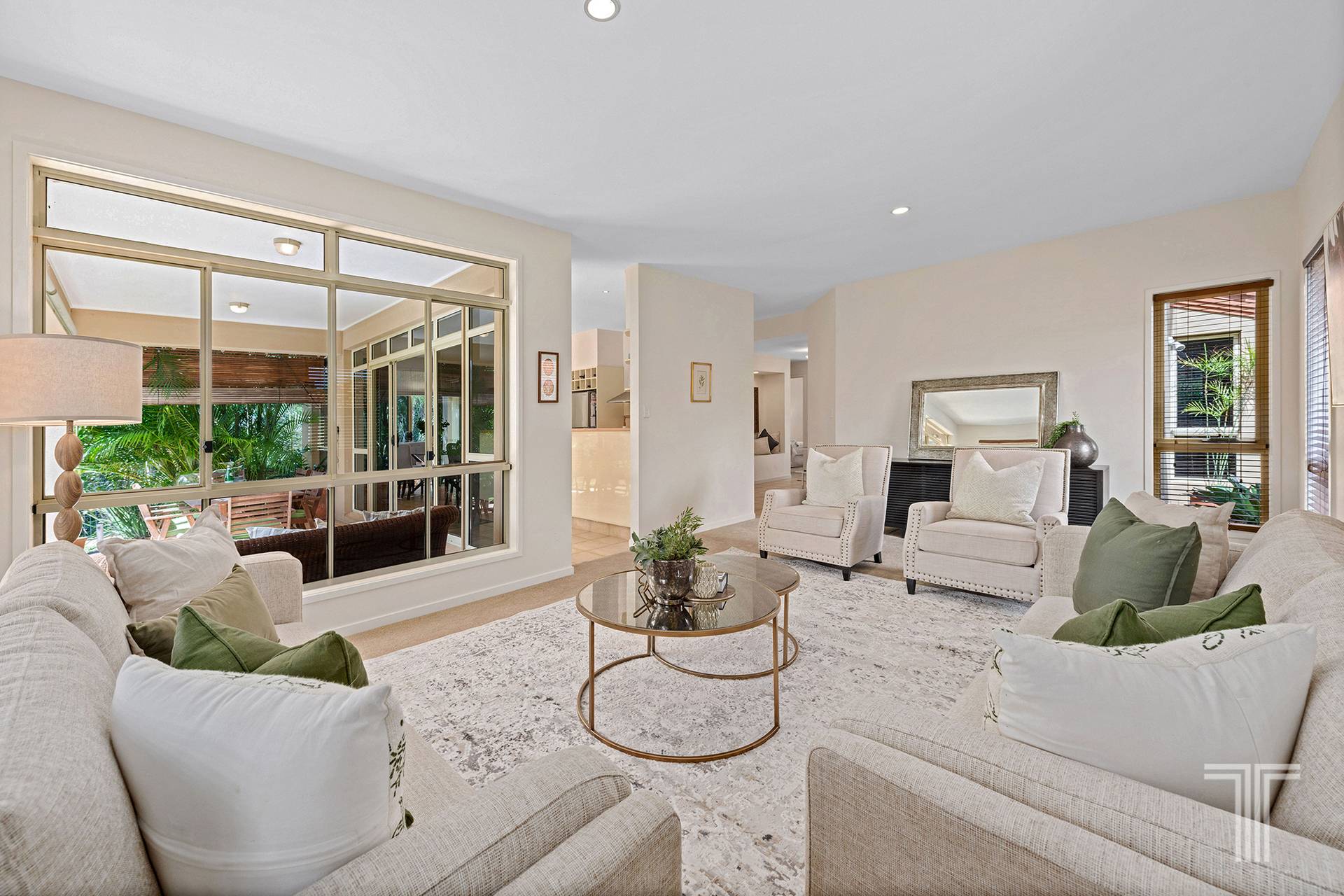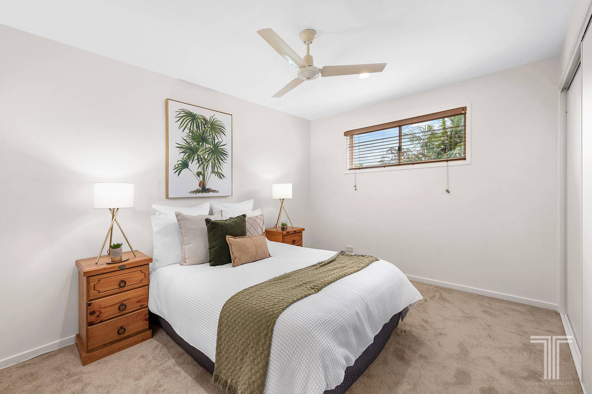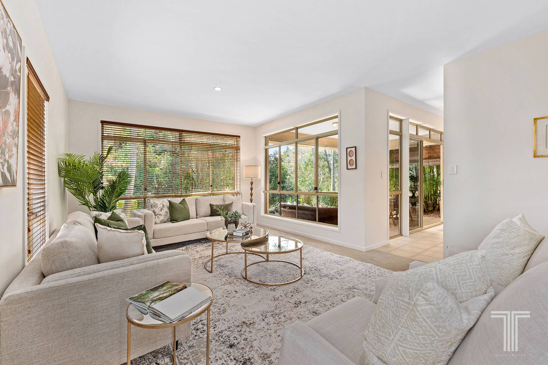 Extend with ease to the sunlit outdoor sitting area and the undercover patio. A tropical hideaway, your eye is drawn from the manicured lawns and low-maintenance gardens to the sprawling parkland beyond the fence line. A blissful retreat, you can entertain and enjoy meals while listening to the breezes rustle through the trees and birds sing.