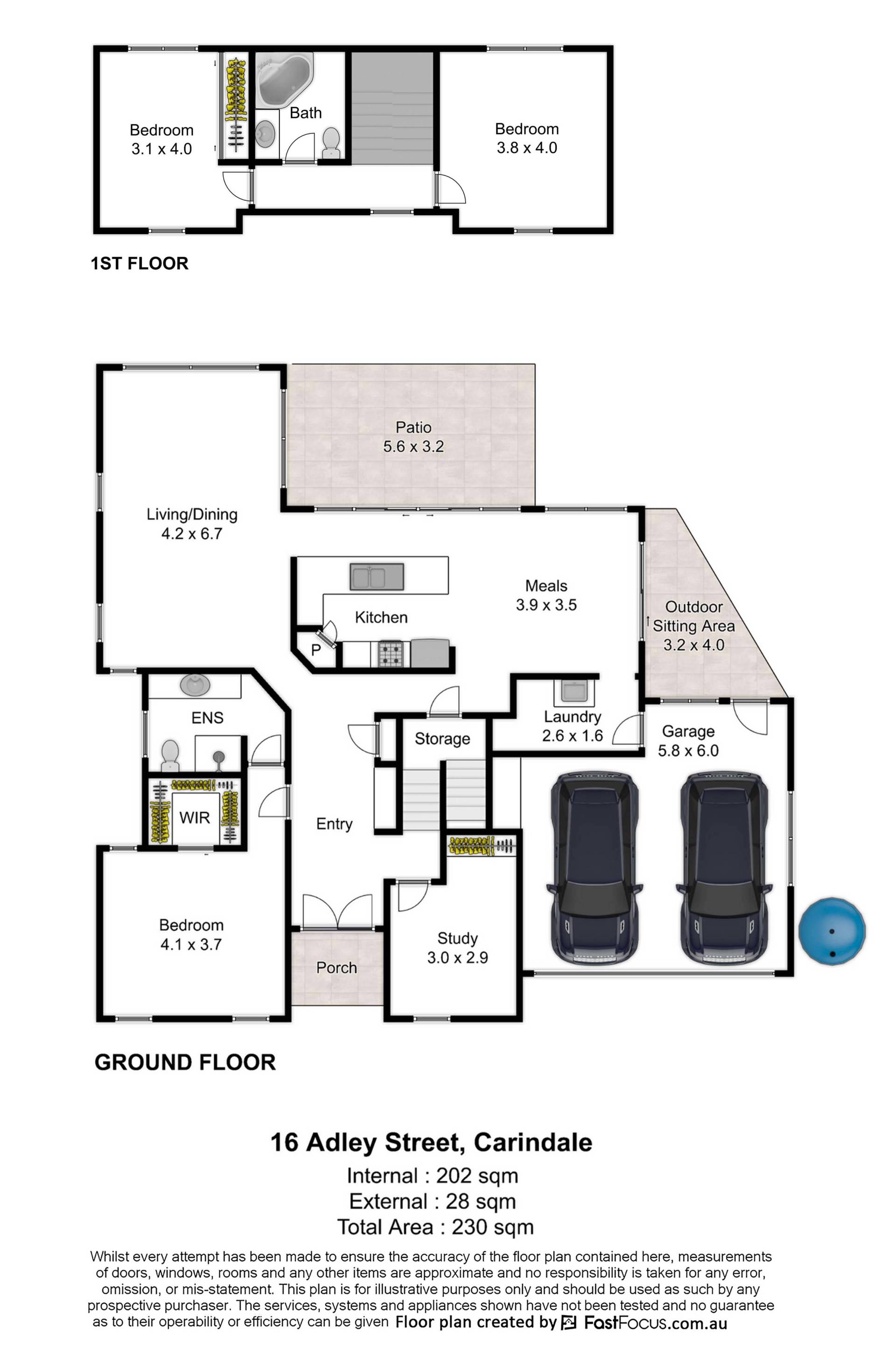 The master suite, study and laundry are located downstairs. The master has been well-designed with a walk-in robe, ensuite, air-conditioning and a ceiling fan. The upper floor provides breakout space with two additional bedrooms and a family bathroom with a spa bath.