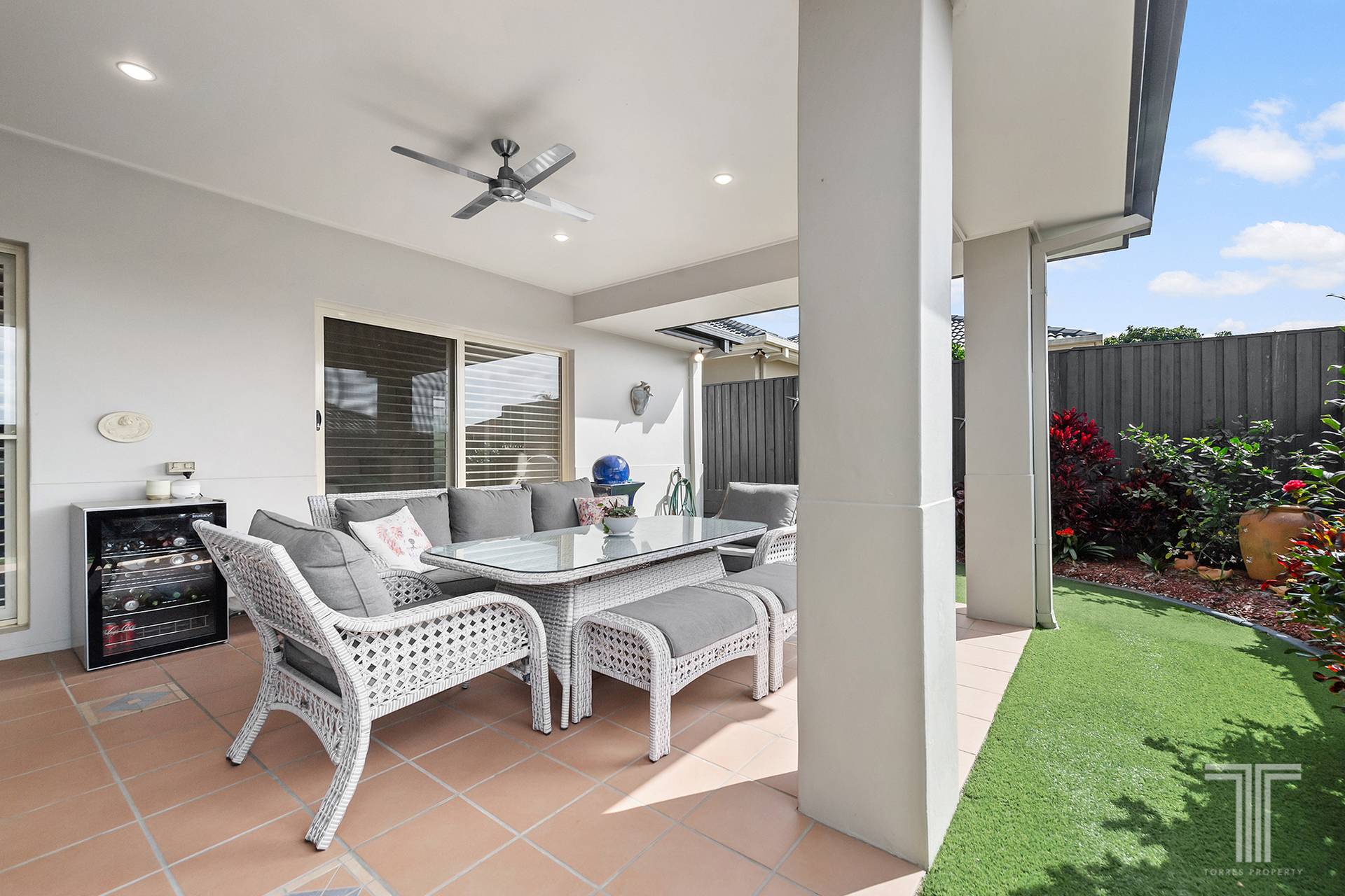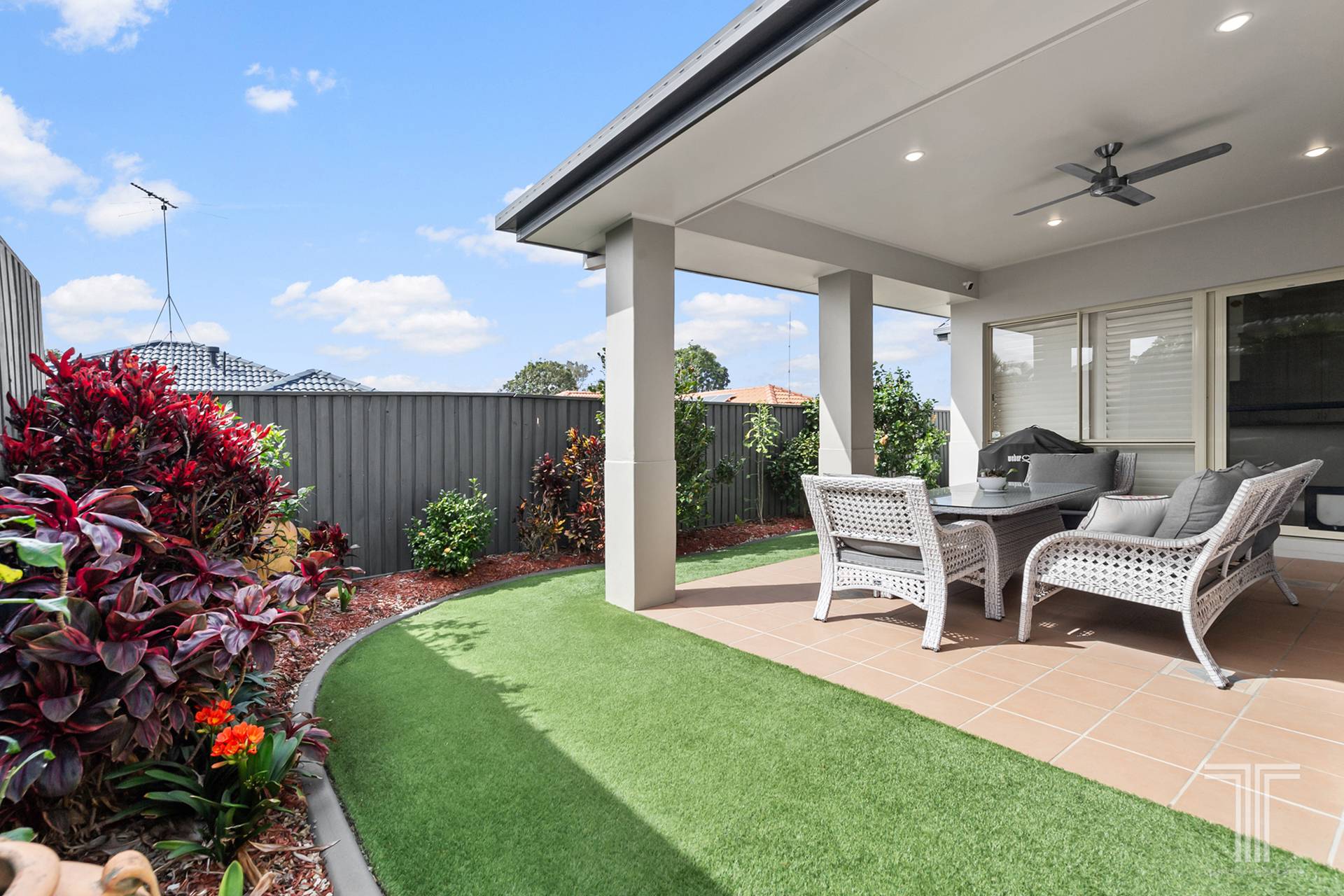 Residents can relax and host guests on the undercover patio, which steps out to the kid-friendly, Astroturf lawns and low-maintenance gardens.