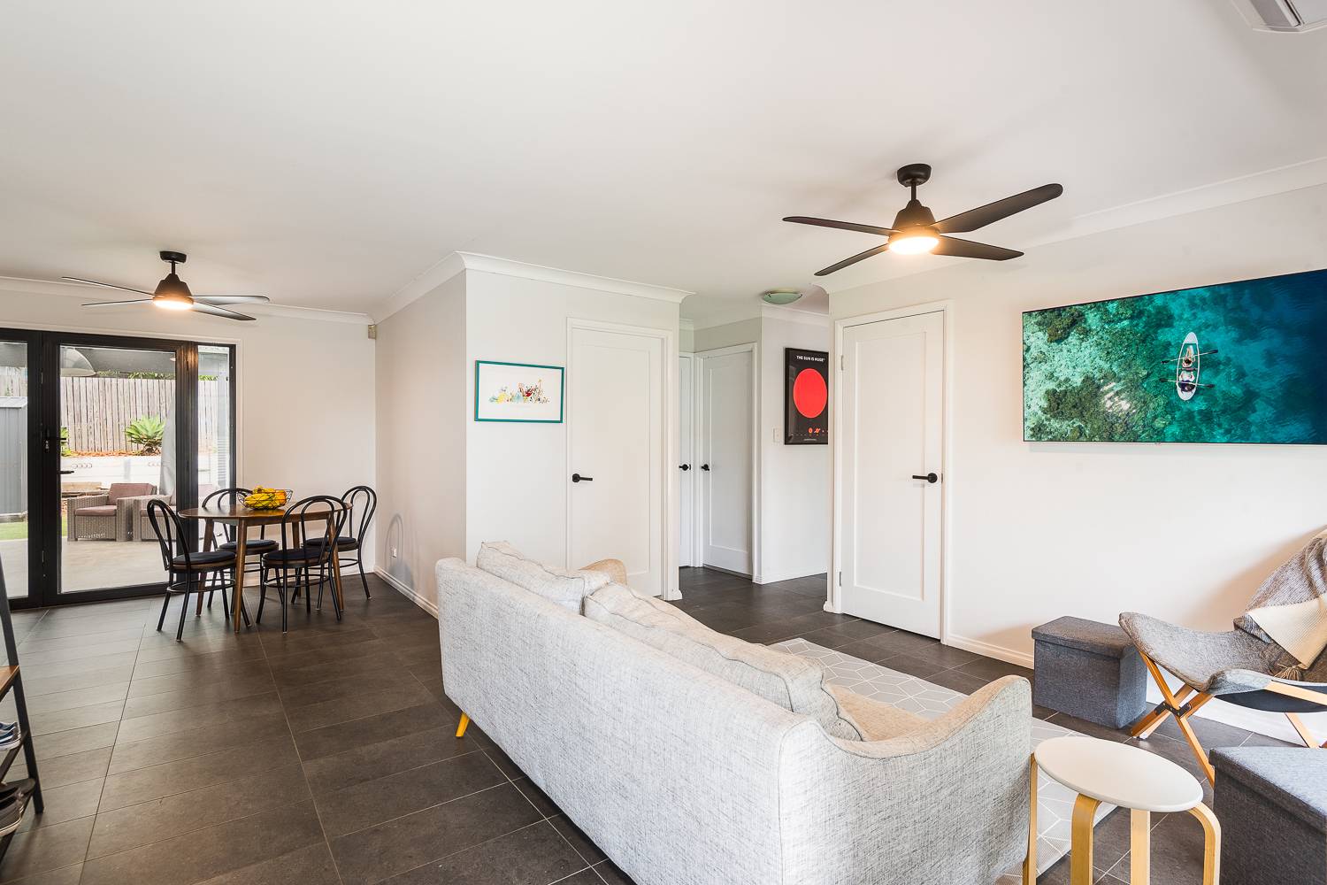 Lounge, dine and host guests on the covered entertaining area. Flowing out to the flat and spacious backyard with a cubby house, there is endless room for parents, kids and pets to unwind and soak up the sunshine.