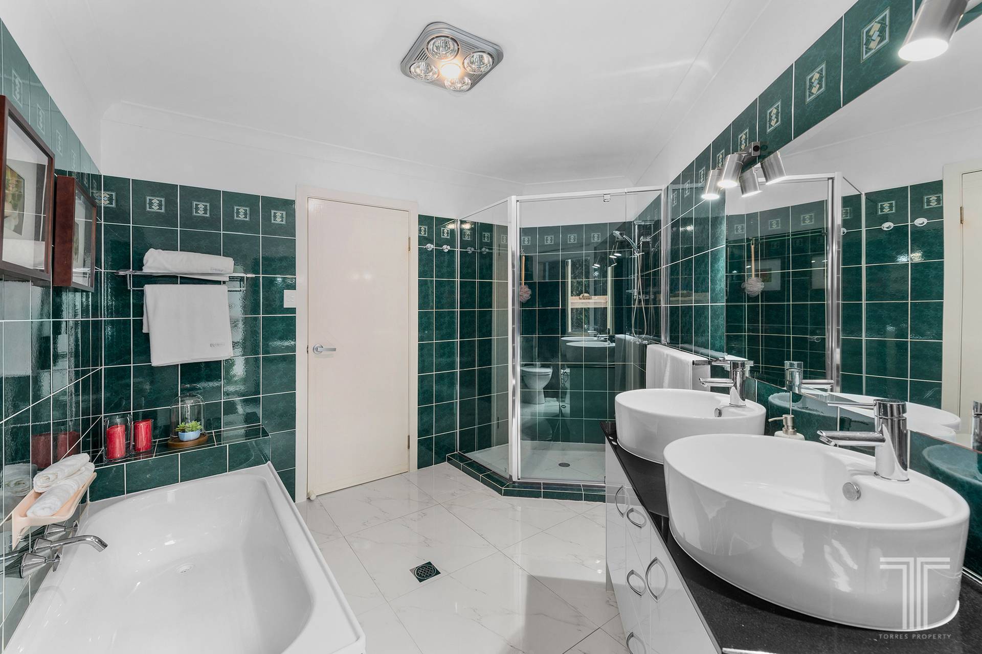 Four good-sized bedrooms are serviced by two bathrooms, a powder room and a laundry. The palatial master suite has been artfully designed with dual walk-in robes and an ensuite featuring double vanities and a relaxing bath.