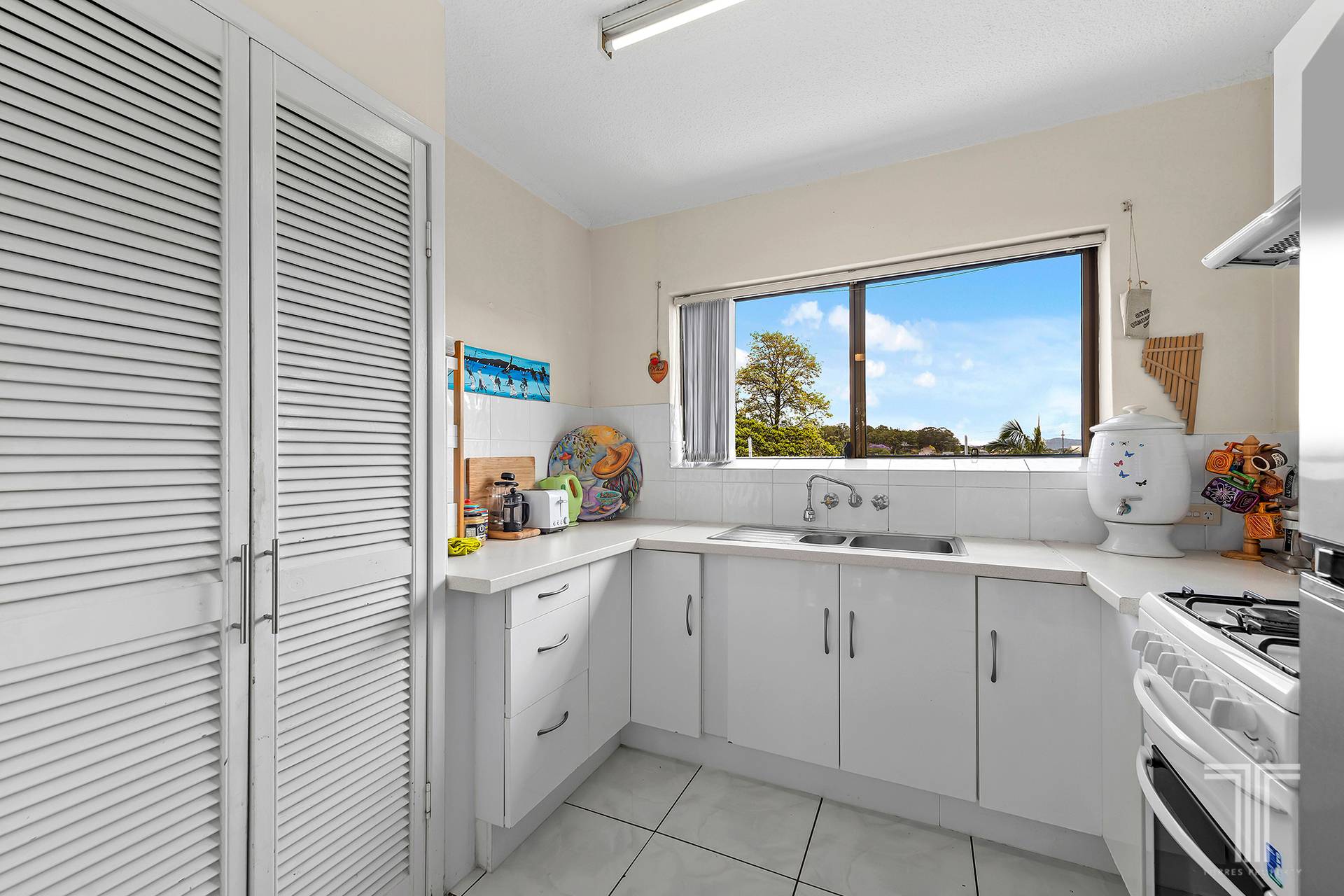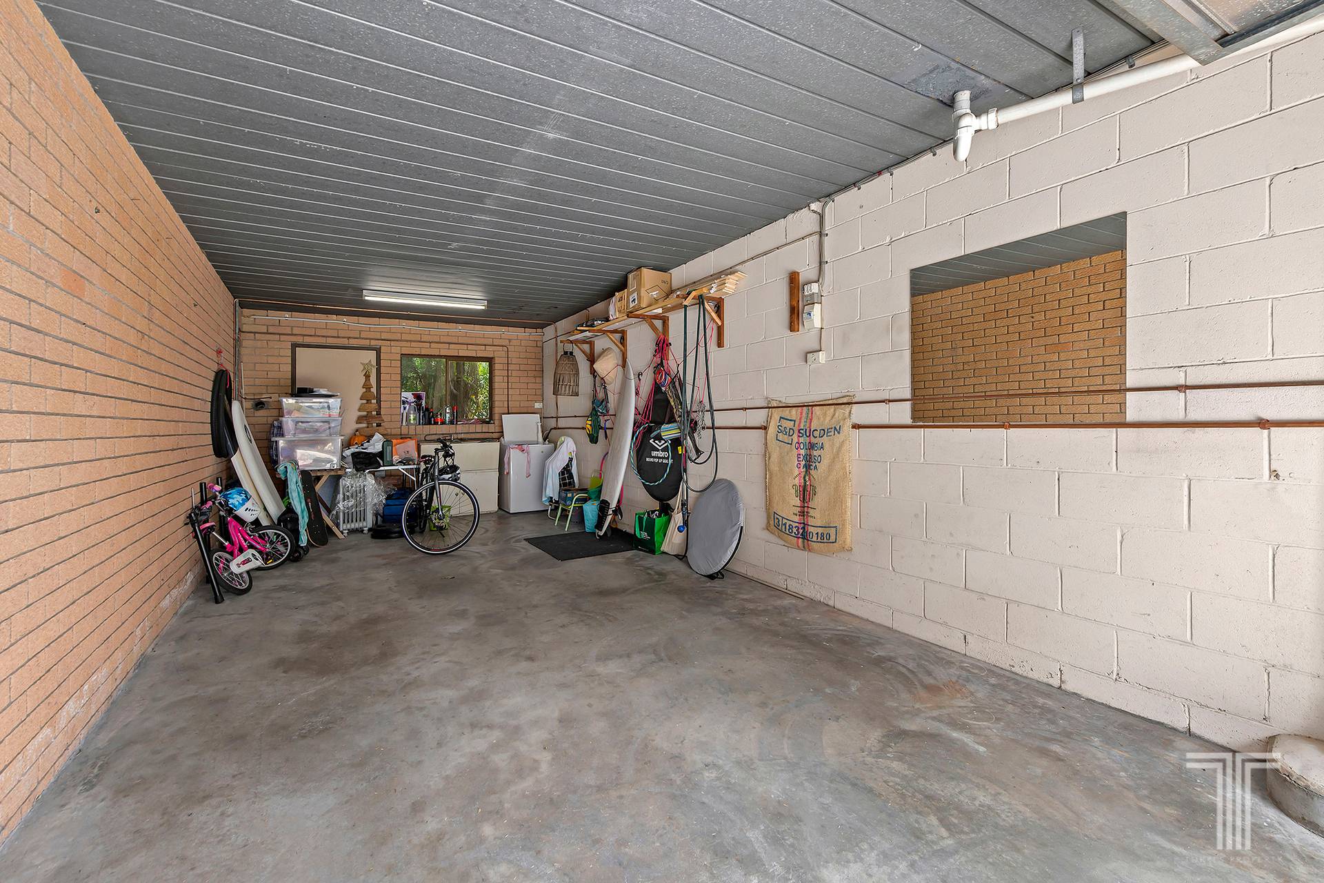 The fully tiled living and dining area extends past the practical kitchen to the leafy green balcony. Both bedrooms include built-in robes and access to the bathroom, and the laundry is located in the lock-up garage downstairs.