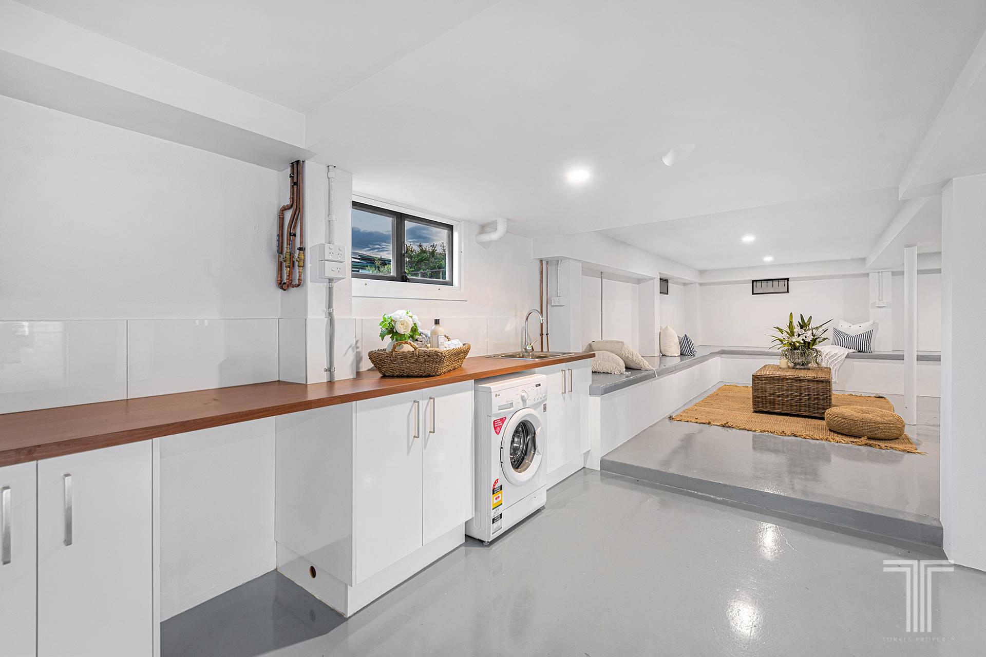 A second bathroom is located downstairs alongside a large multipurpose room with built-in seating, ideal for a kid's rumpus, parents' retreat, games area or a movie room.