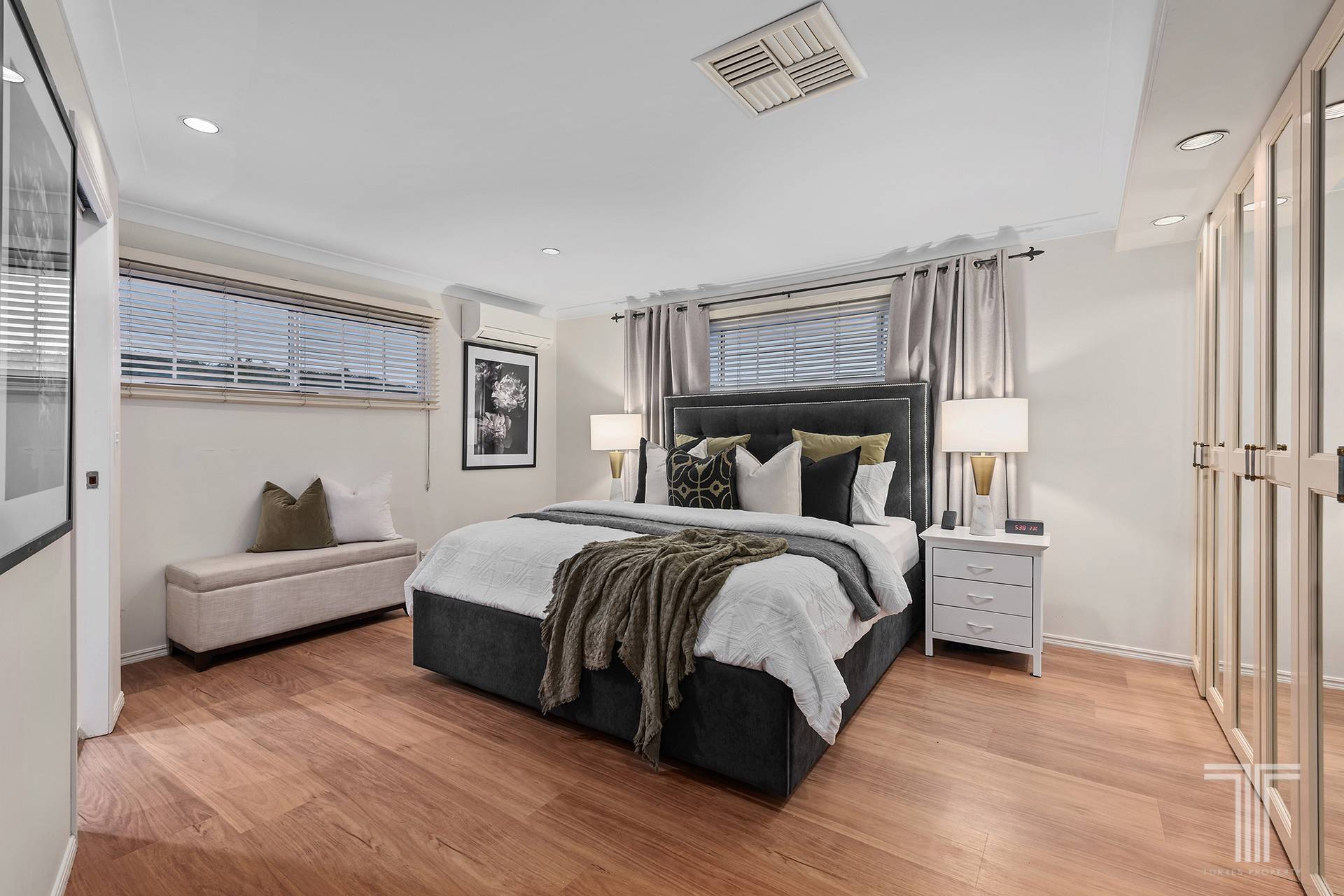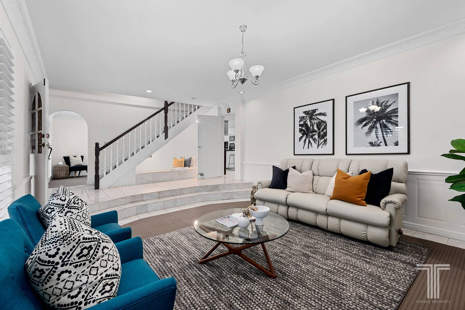 The spacious ground level provides plenty of family space adorned with tiled floors, ornate cornices, shutters and double brick. The floor plan flows from the lounge to the living room, dining space and meals area, ensuring endless room for kids and parents to unwind.