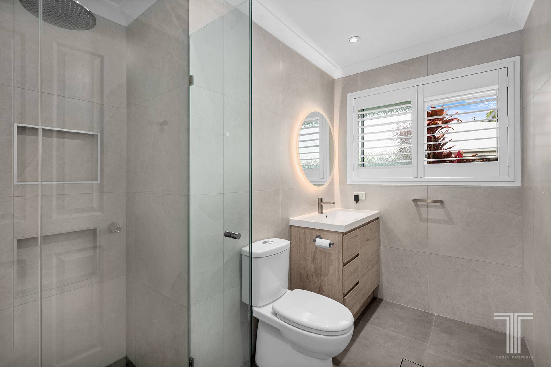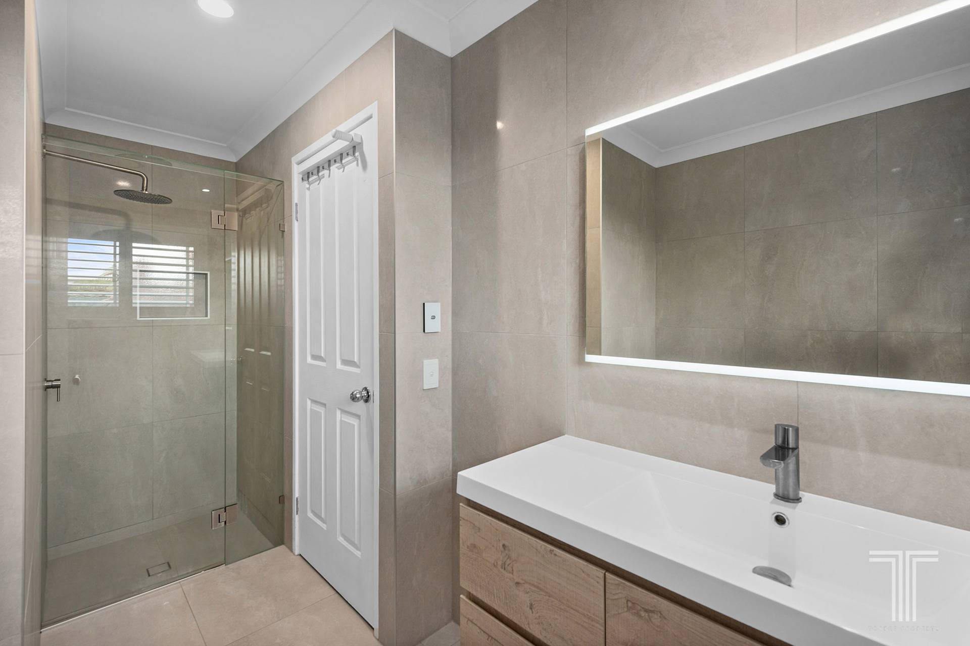 - Modern ensuite with LED mirror and floor-to-ceiling tiles