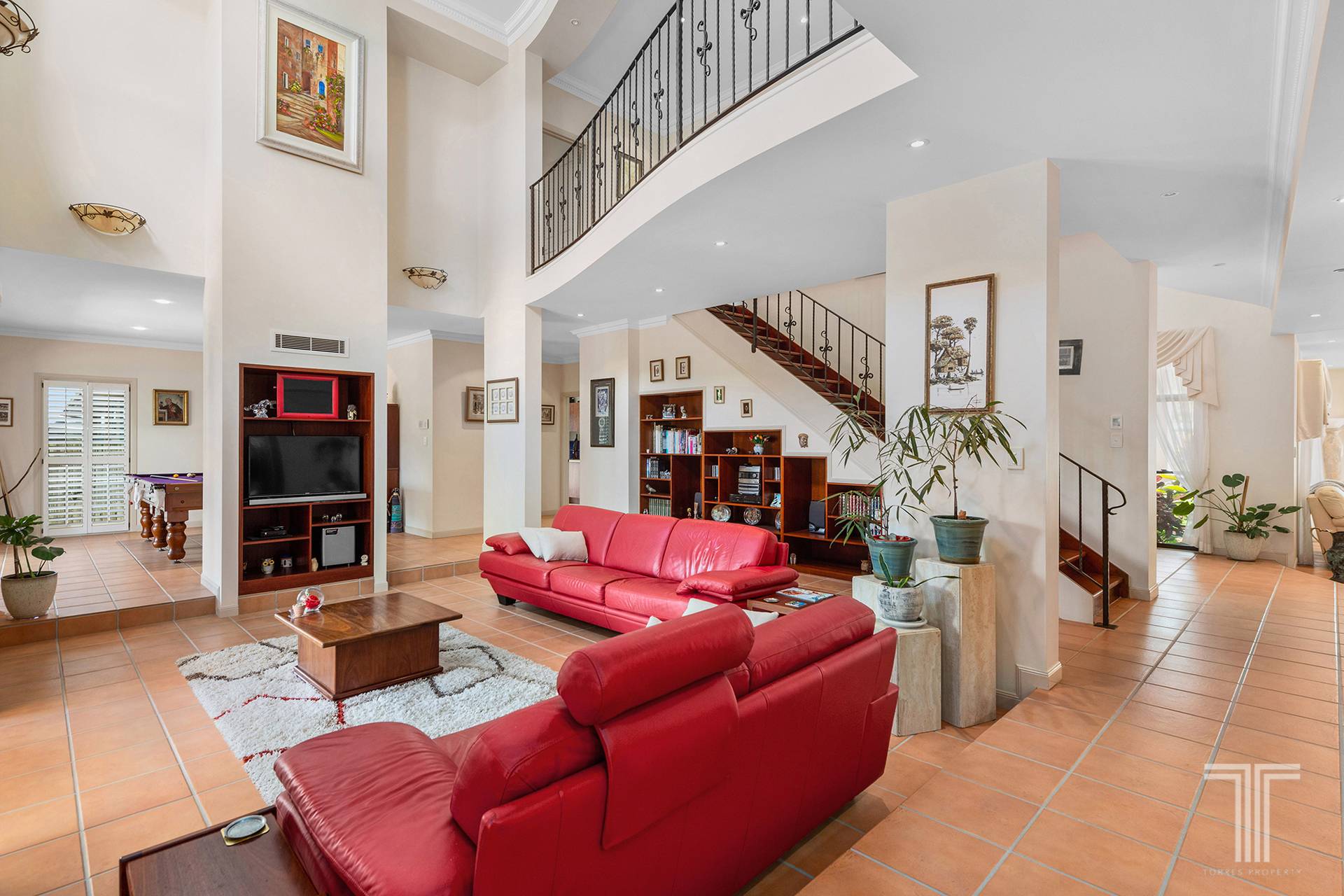 Open the front gates and make your way through the entrance into the flowing interiors. Showcasing an incredible sense of space, the double-height ceilings and plantation shutters filter natural light and breezes across the two-storey design.