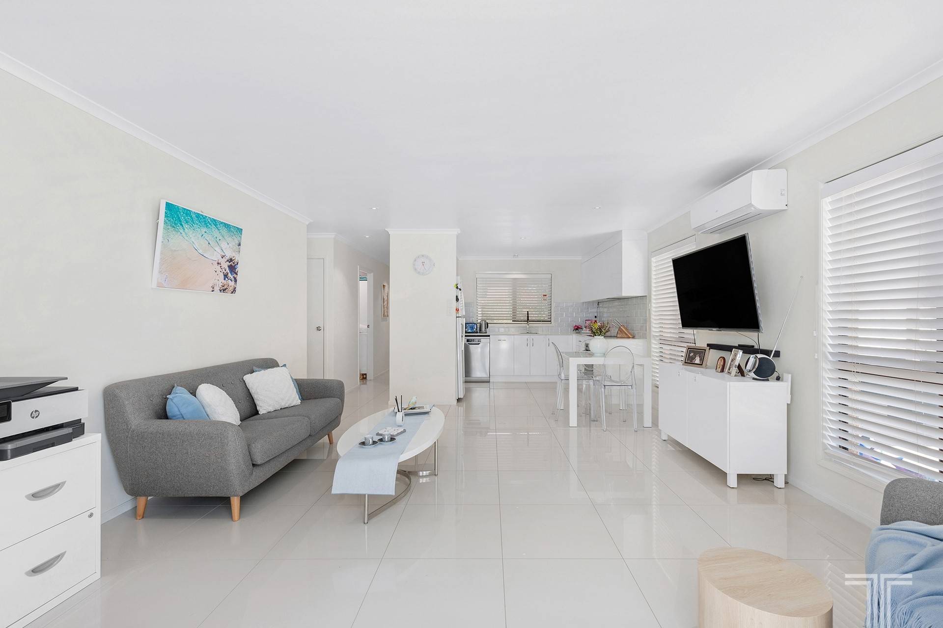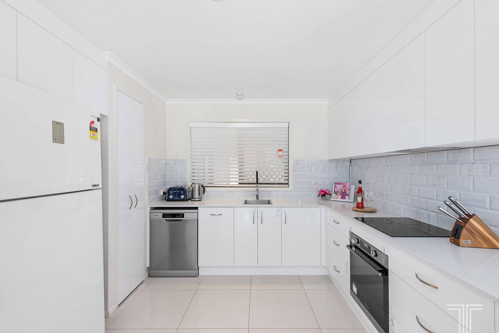 Featuring a functional layout with open interiors, large floor tiles and LED down lights throughout, the home opens into a light-filled lounge and dining area boasting air-conditioning and a study nook. Flowing into the newly renovated kitchen, the home cook will love the stone benchtops, sleek cabinetry and stainless steel appliances.