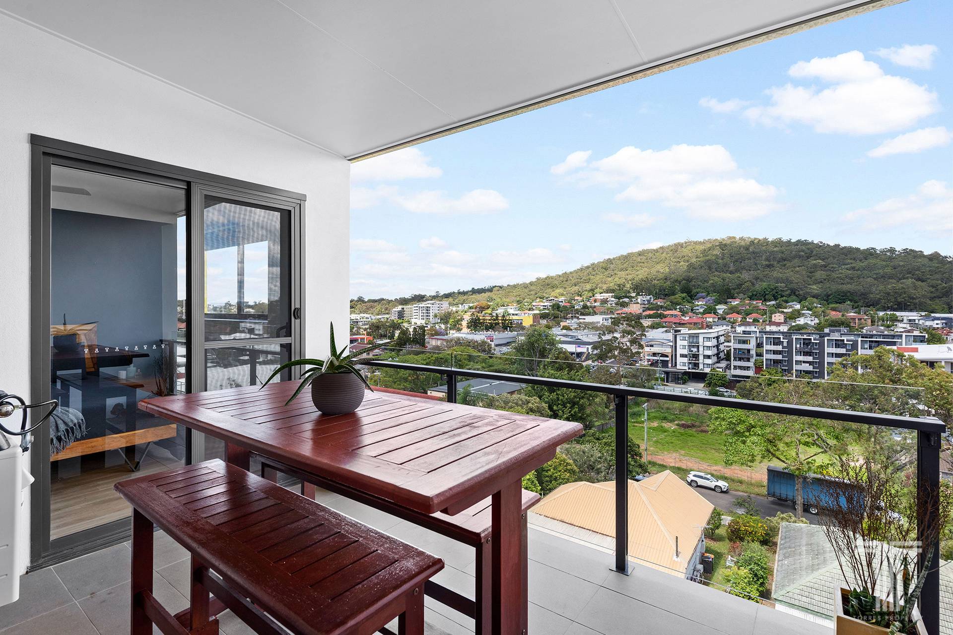 Enjoy outdoor living, dining and entertaining on the elevated balcony, delighting in peaceful outlooks across the mountain and sweeping suburban landscape.