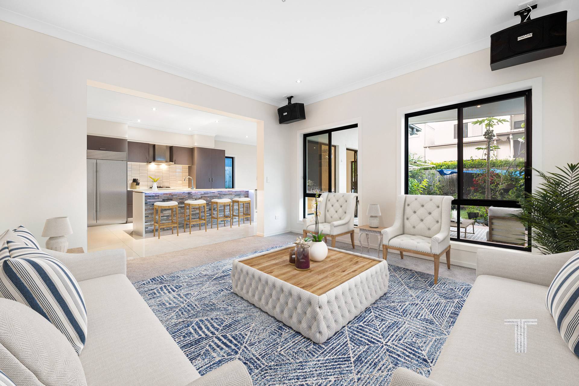 Boasting effortless flow and connection, residents can prepare meals while overlooking the lounge and dining area, entertainment space with built-in speakers, alfresco patio and generously sized backyard. The outdoor setting is designed for year-round enjoyment and provides privacy with established gardens and greenery.