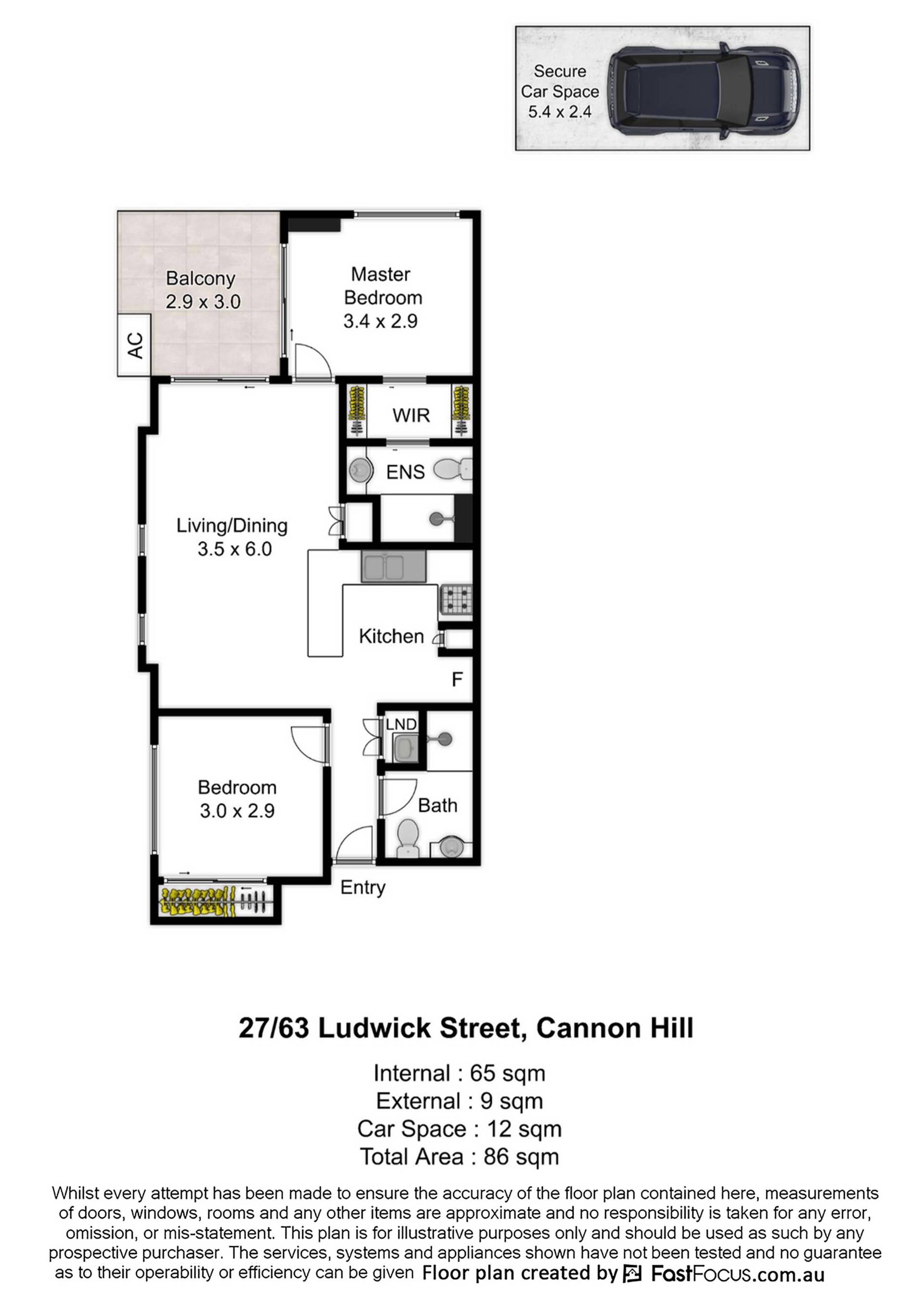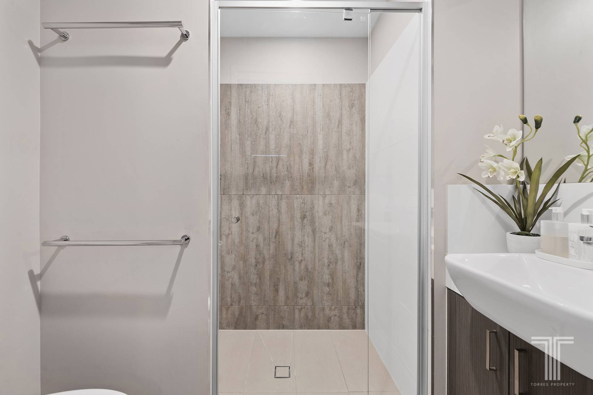 Two bedrooms, two bathrooms, a concealed laundry, and a secure car space provide a functional layout. The light-filled master includes a walk-in robe and ensuite, while the second bedroom features a built-in robe.