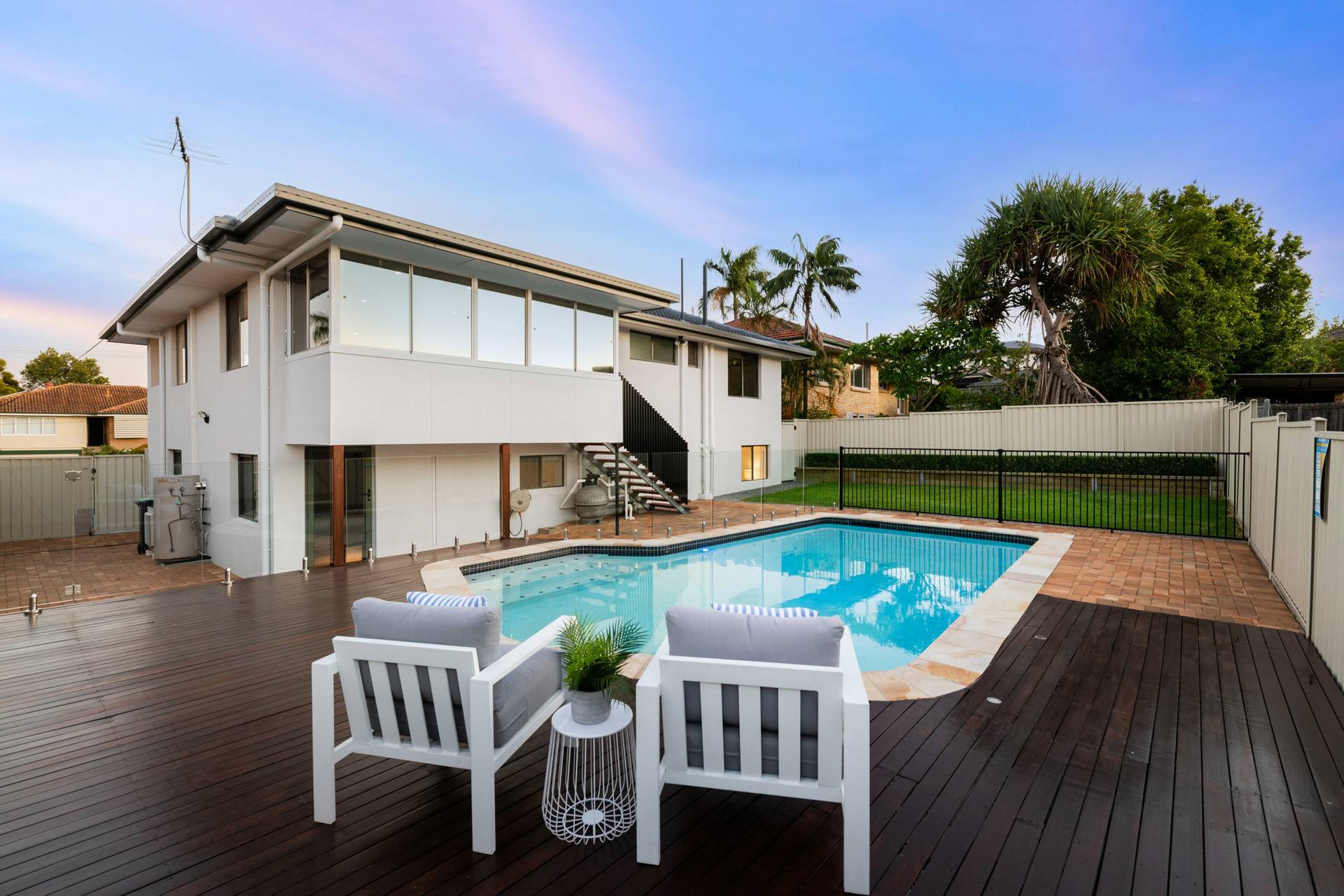Occupying a fully-fenced block with a backyard and swimming pool, the house offers family-friendly living, and Mansfield Primary and High School are just a short walk away.
