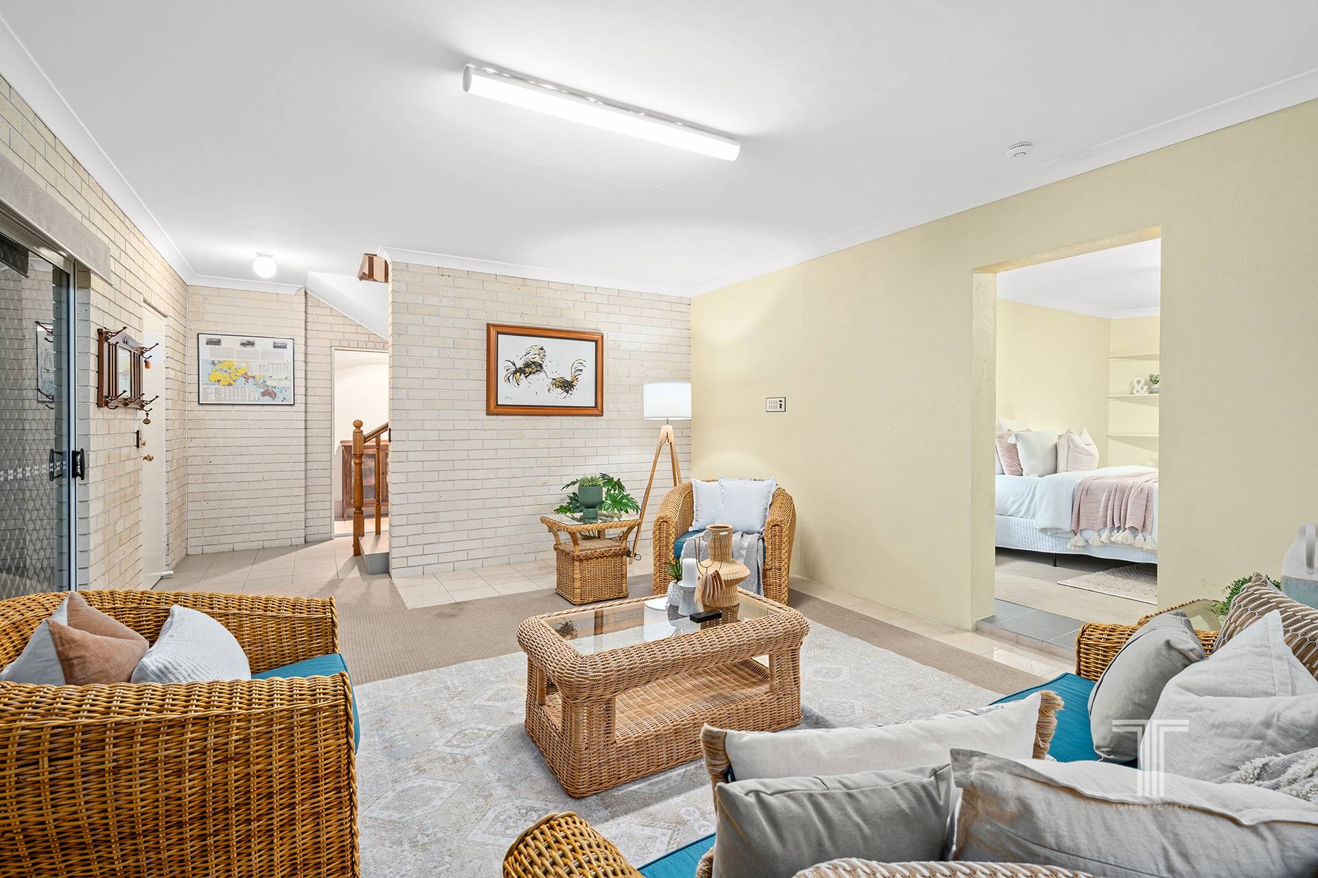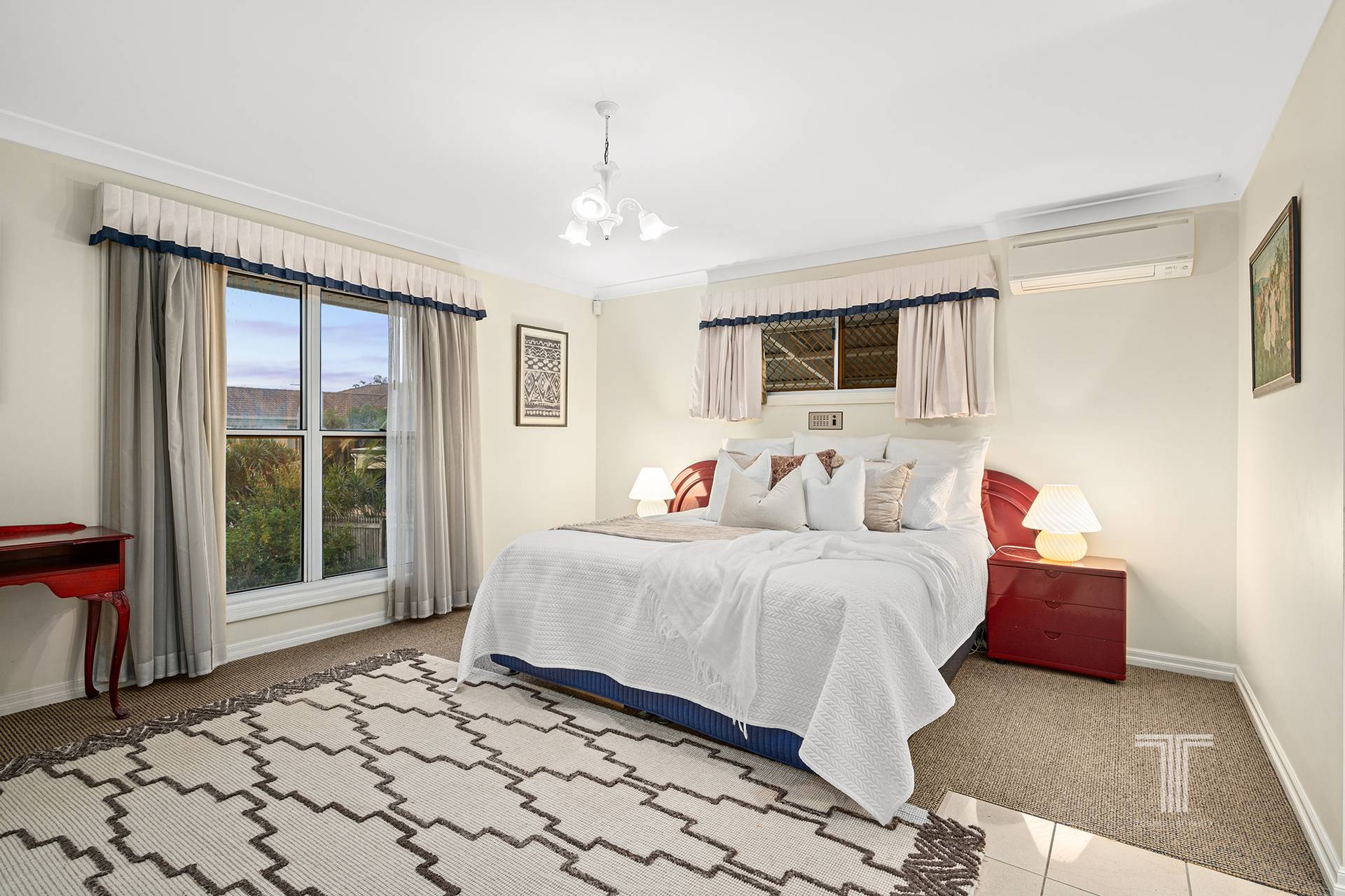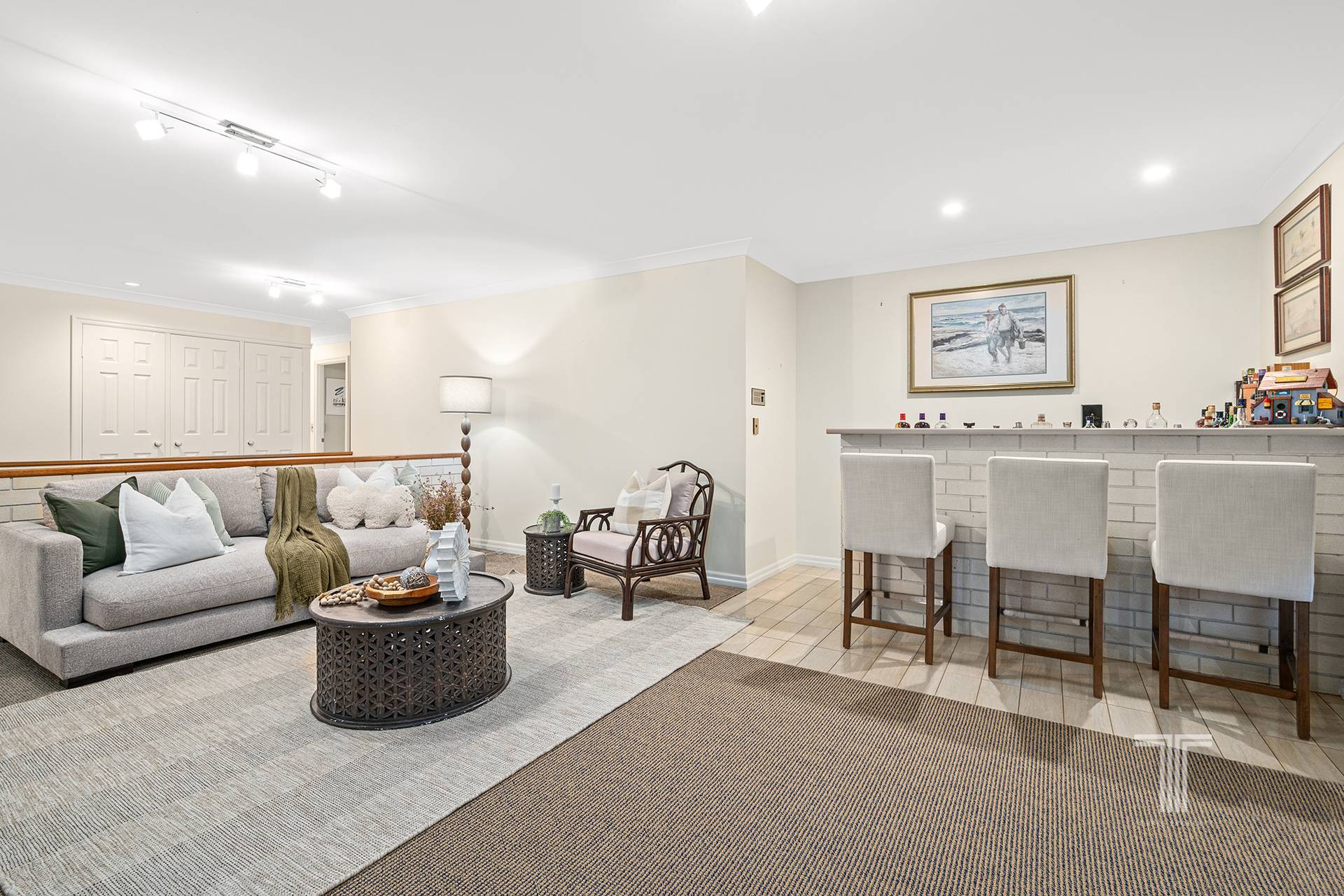 Four bedrooms occupy the upper floor, including two with bay window seats. The master opens to the deck and boasts an exclusive ensuite, while the main bathroom features a spa bath and separate toilet. Downstairs, a rumpus, fifth bedroom and third bathroom create a retreat for teenagers, grandparents or guests seeking privacy and separation.