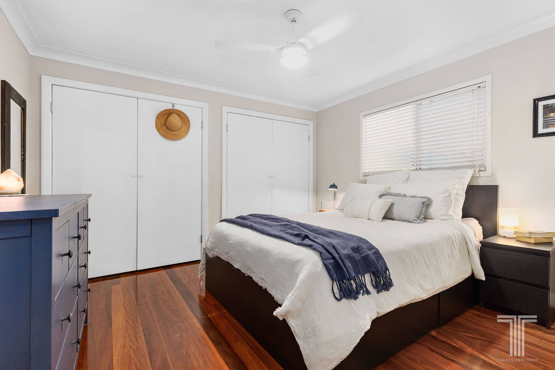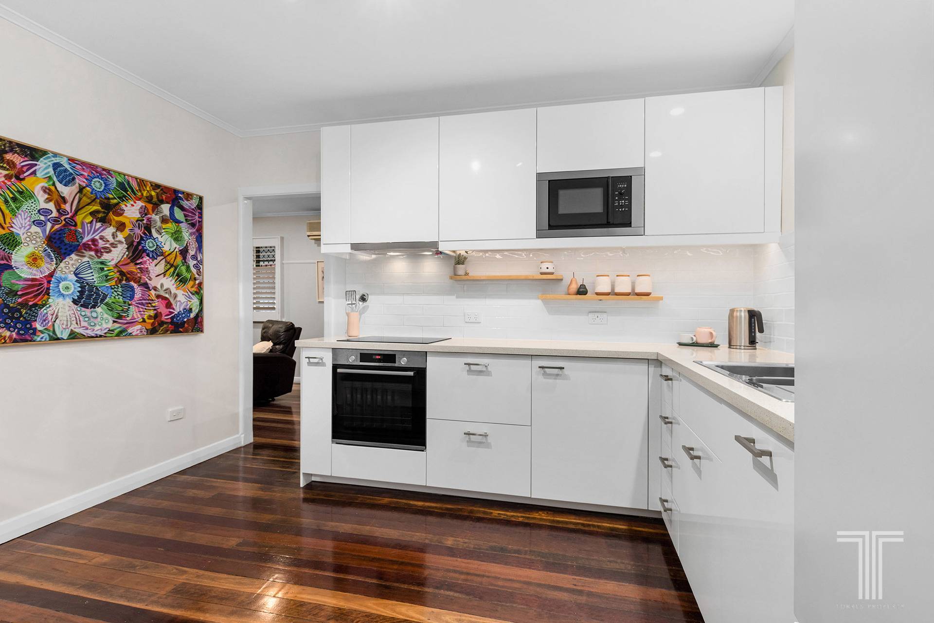 Freshly painted, the house offers comfort and peace of mind with air-conditioning and security screens. The living and dining area features timber floors, window shutters and access to the renovated kitchen adorned with a Bosch oven, built-in microwave and integrated dishwasher.