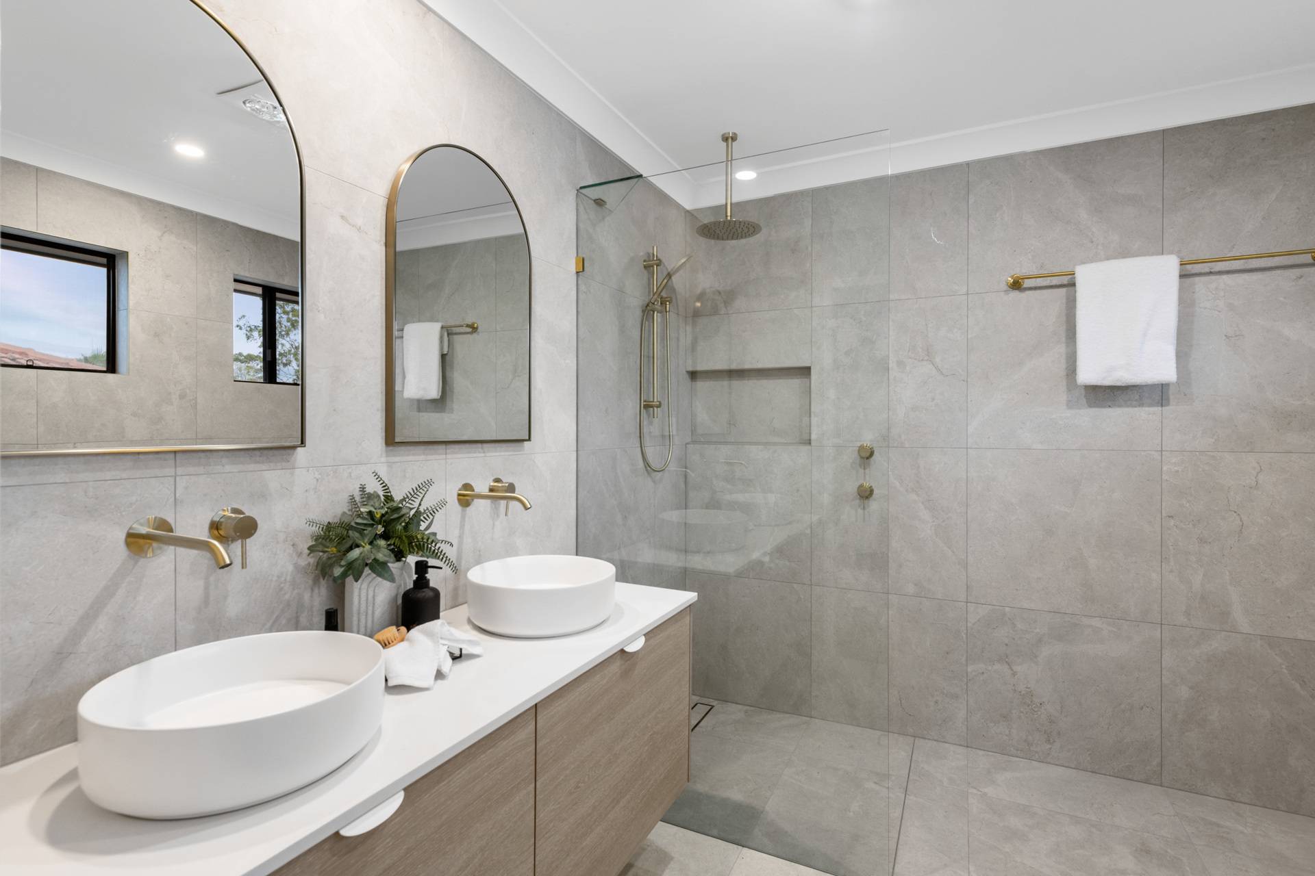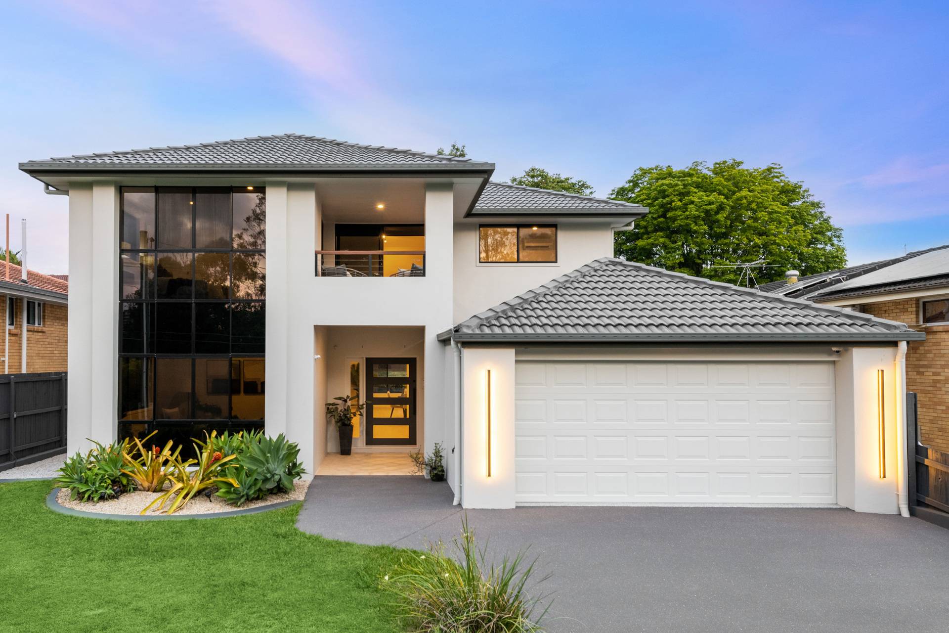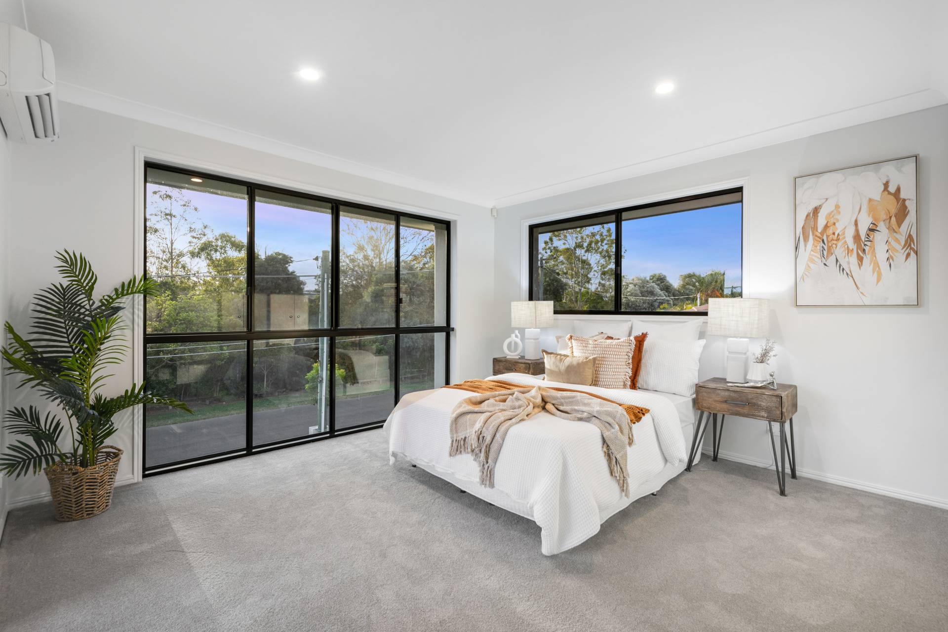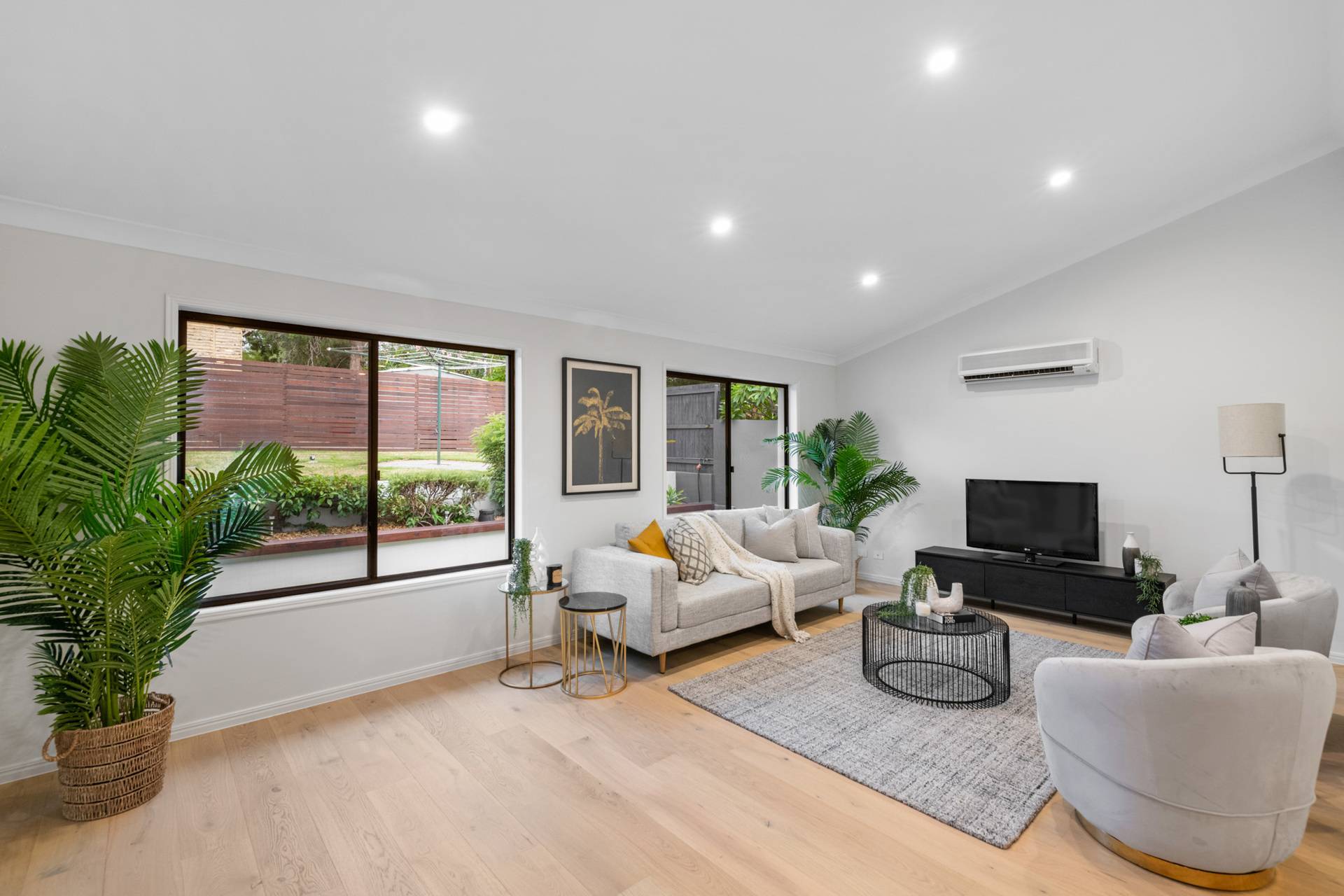 Having completed a high-end renovation, the house showcases premium inclusions and modern updates. European oak flooring and plush carpet adorn the floors, while stone benchtops, high ceilings and brass fittings evoke a sense of contemporary elegance.