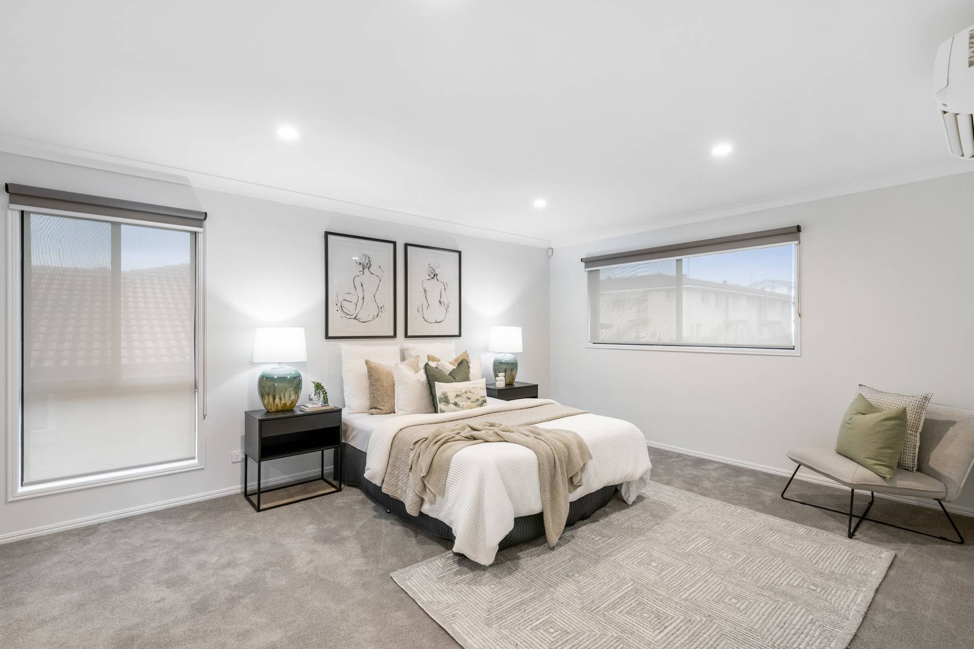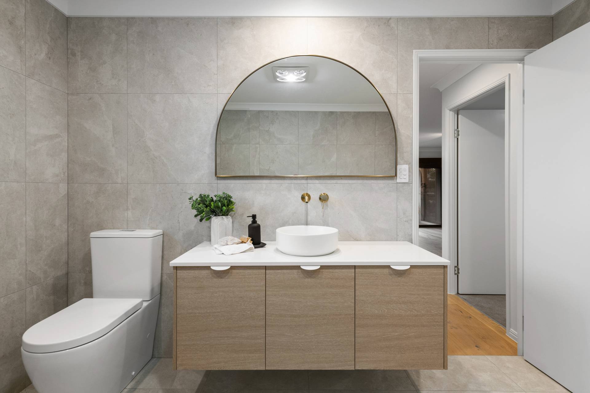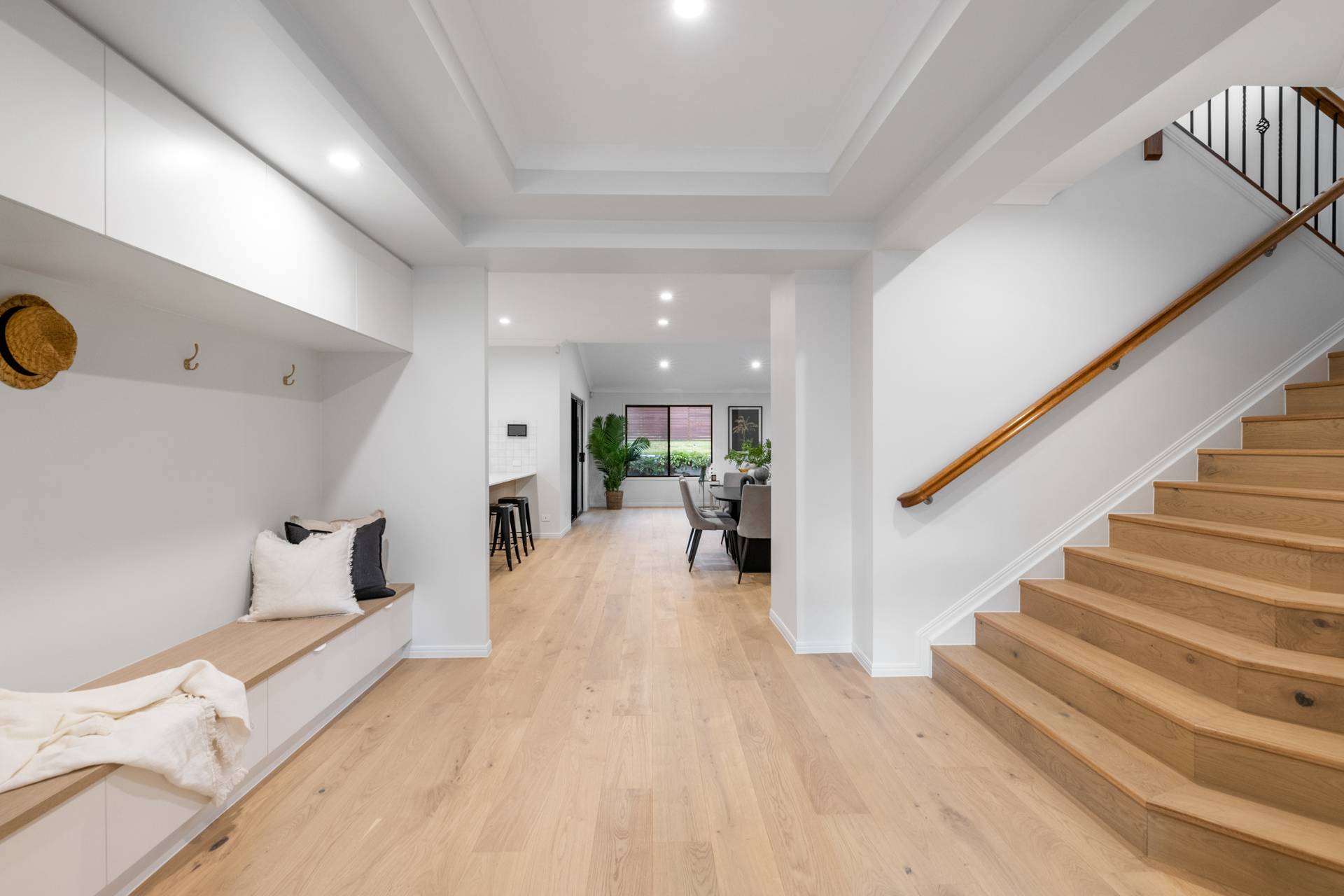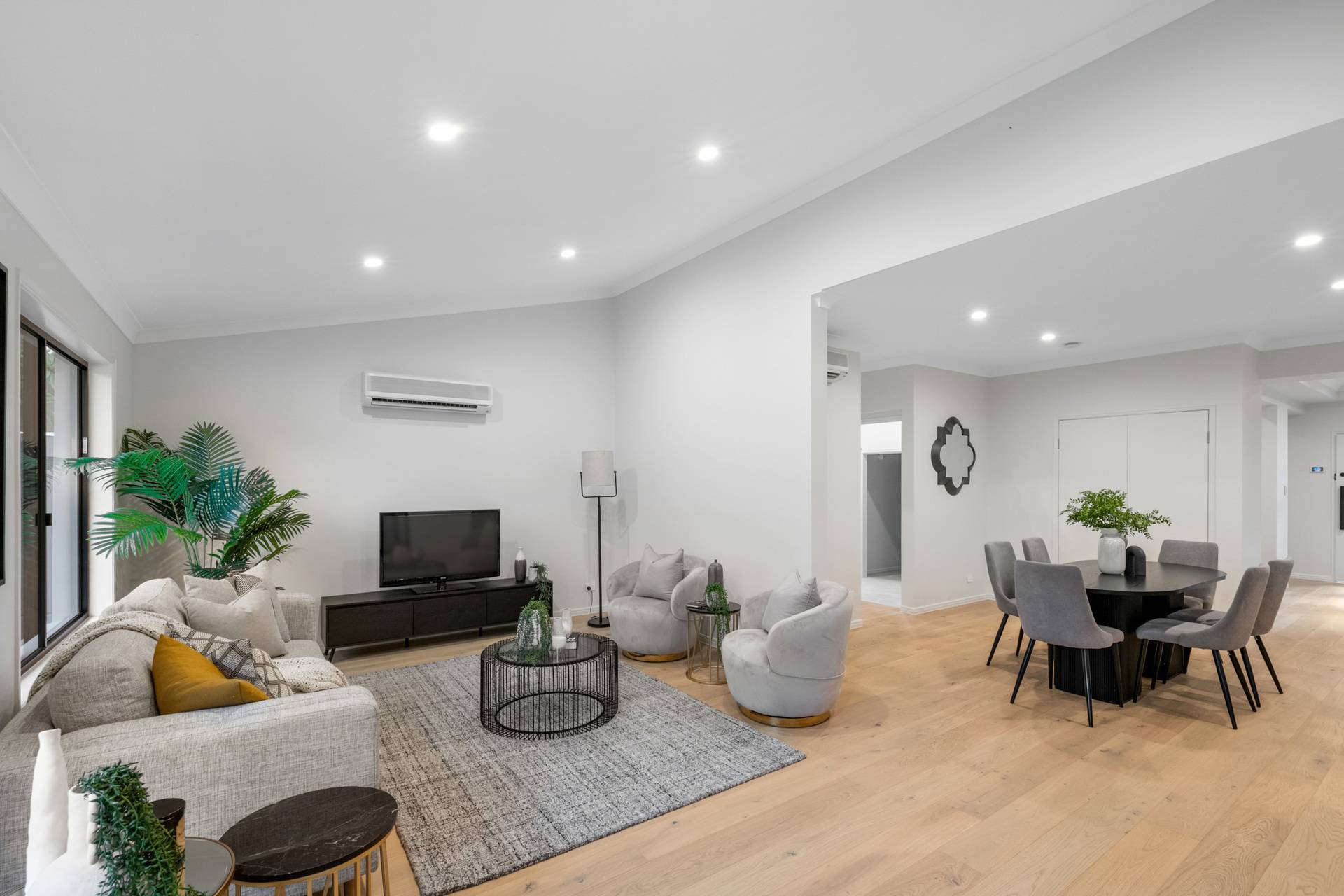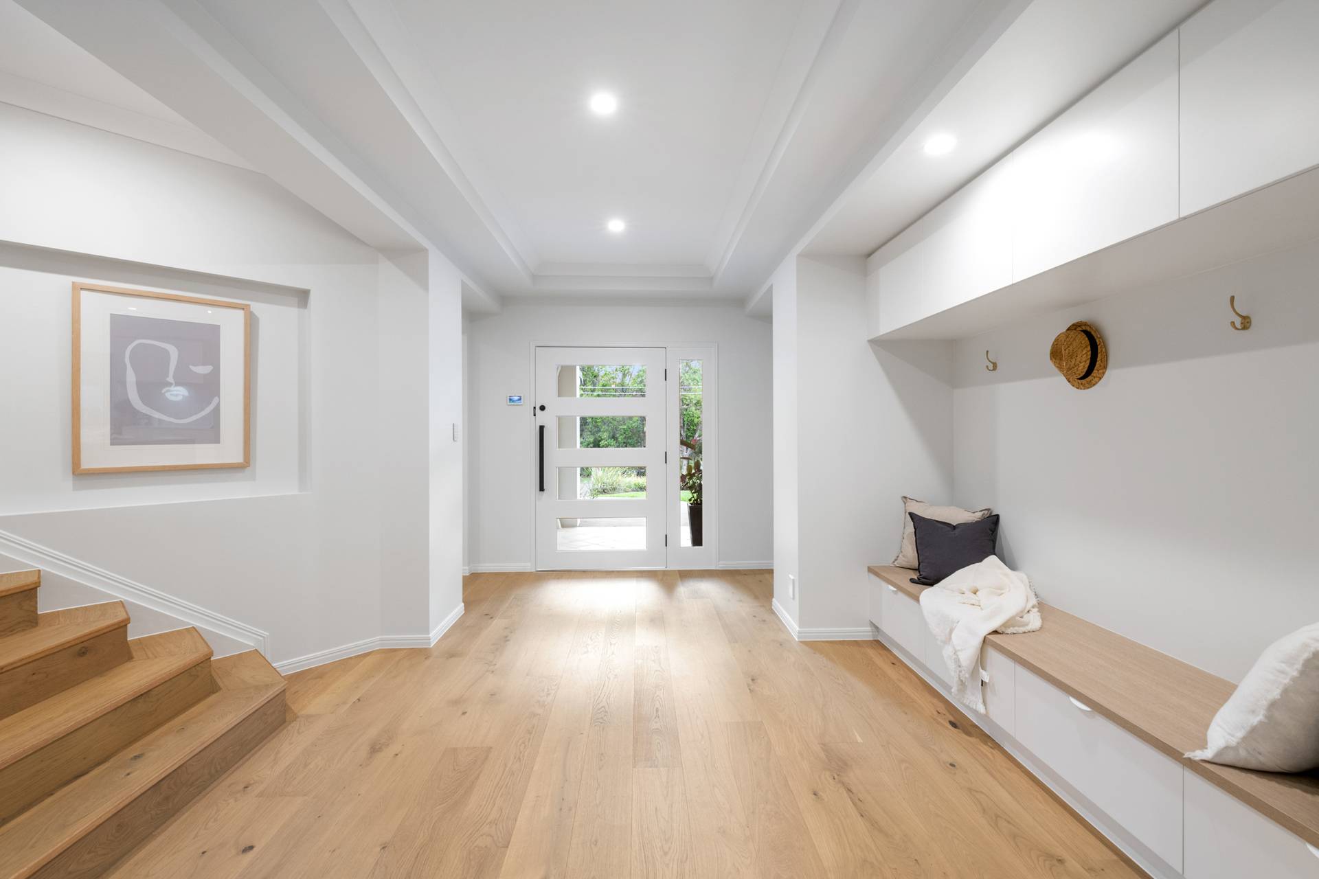 Having completed a high-end renovation, the house showcases premium inclusions and modern updates. European oak flooring and plush carpet adorn the floors, while stone benchtops, high ceilings and brass fittings evoke a sense of contemporary elegance.