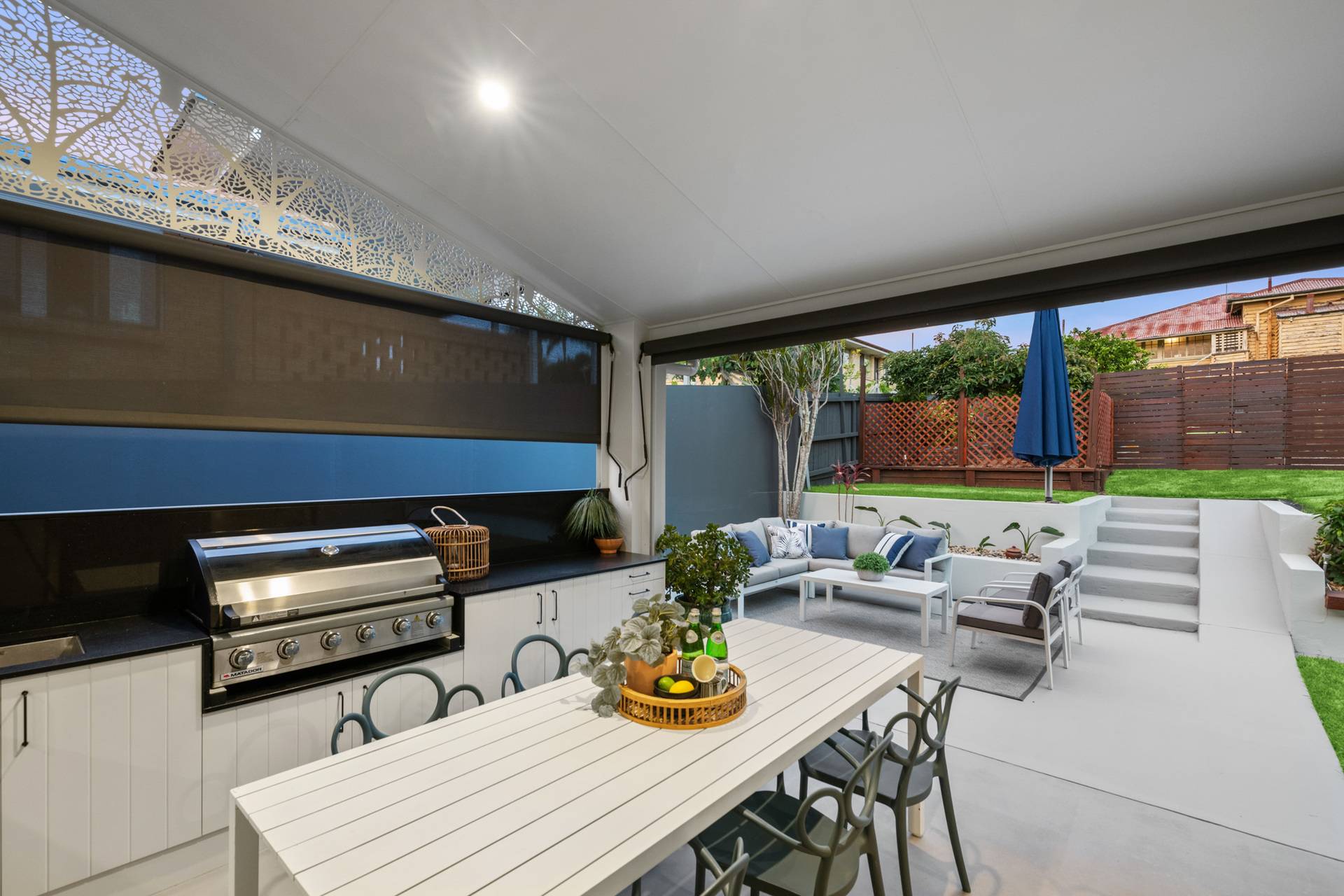 Living and dining continue outdoors on your private alfresco retreat, which caters to pets, children and entertaining. The semi-enclosed patio features a built-in BBQ and extends to a beautiful terrace and surrounding lawns resting in the sunshine.
