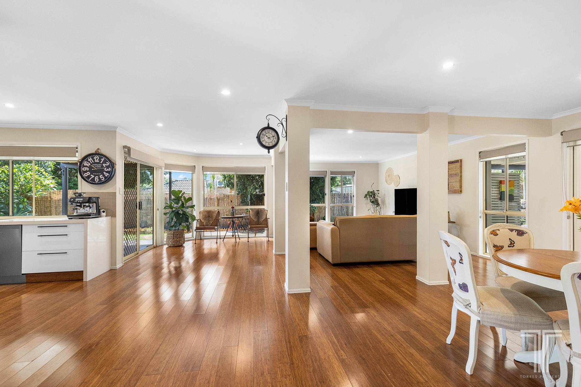 Ideal in all seasons, the home features dual outdoor patio areas, a storage shed and an expansive backyard for kids and pets to roam free. The double car garage also has rear roller door access with space to store a caravan or boat.