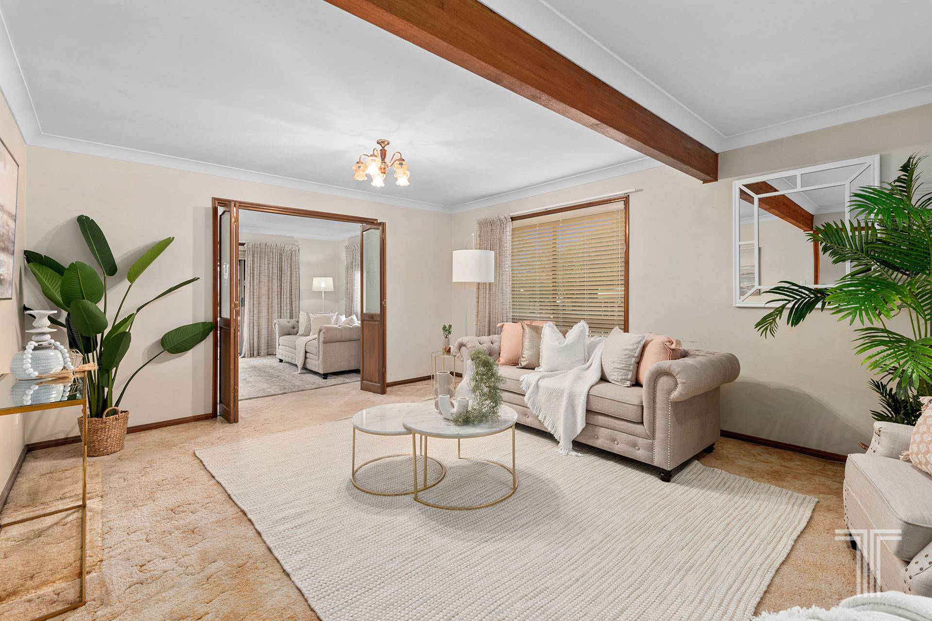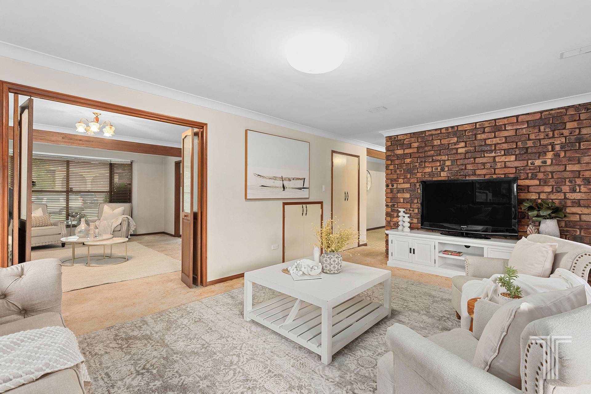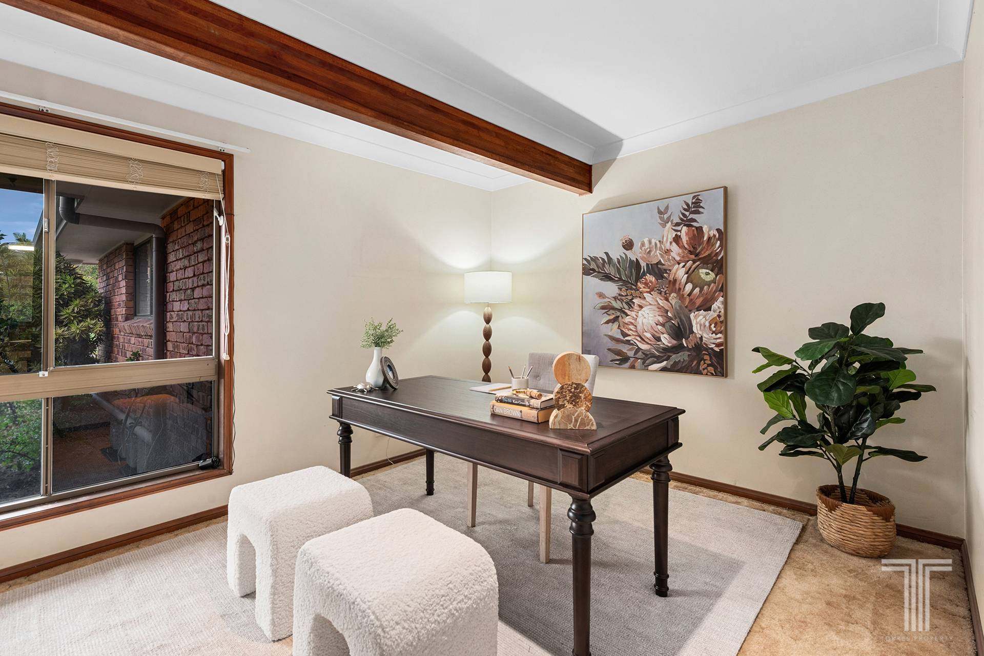 Timber beams and exposed brick feature across the downstairs living room, family room and kitchen/dining area. The rear deck leads down to the huge in-ground swimming pool with a water feature and plenty of room to lounge and cook BBQs. There is also a big front yard, perfect for sports and playing games with the kids.