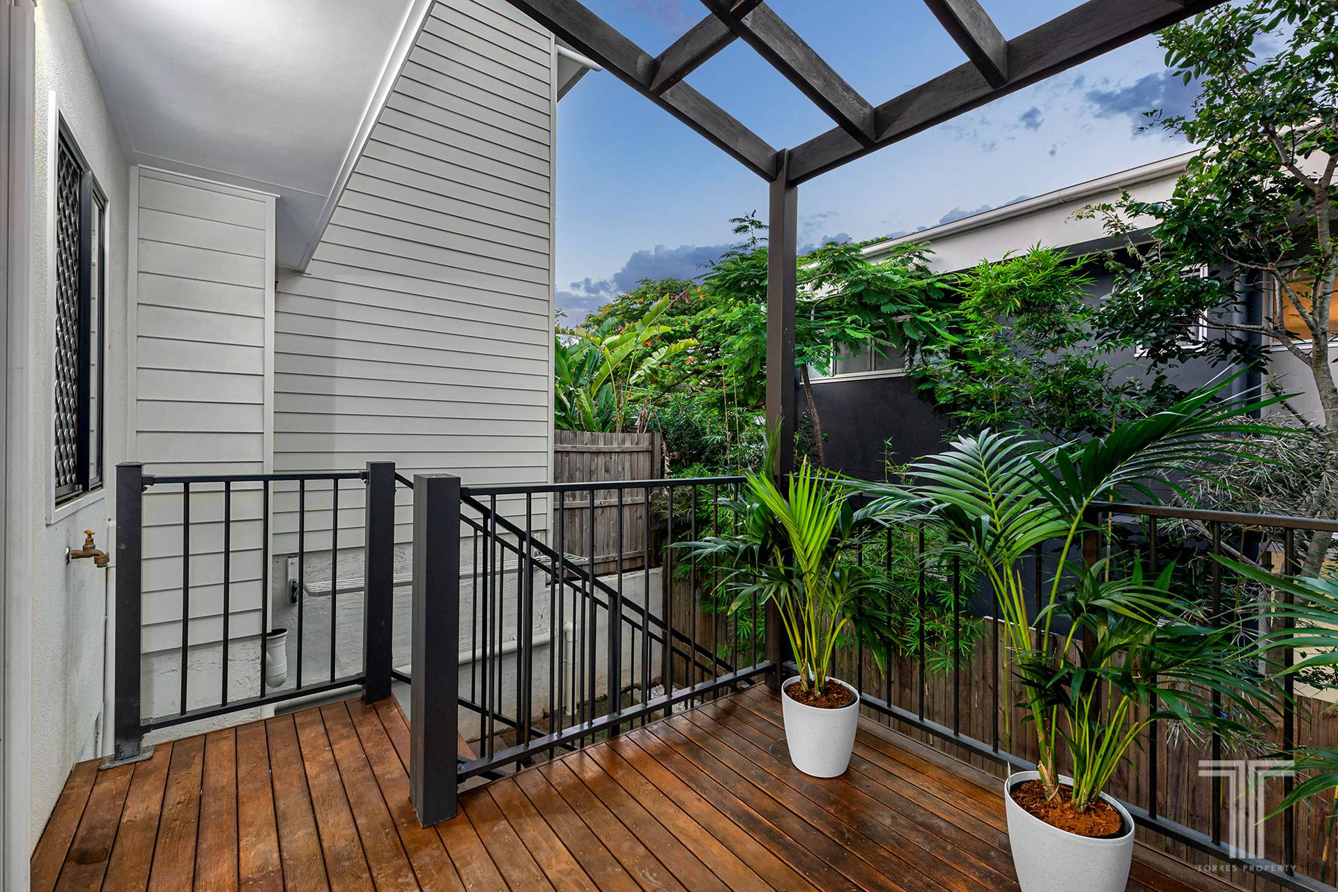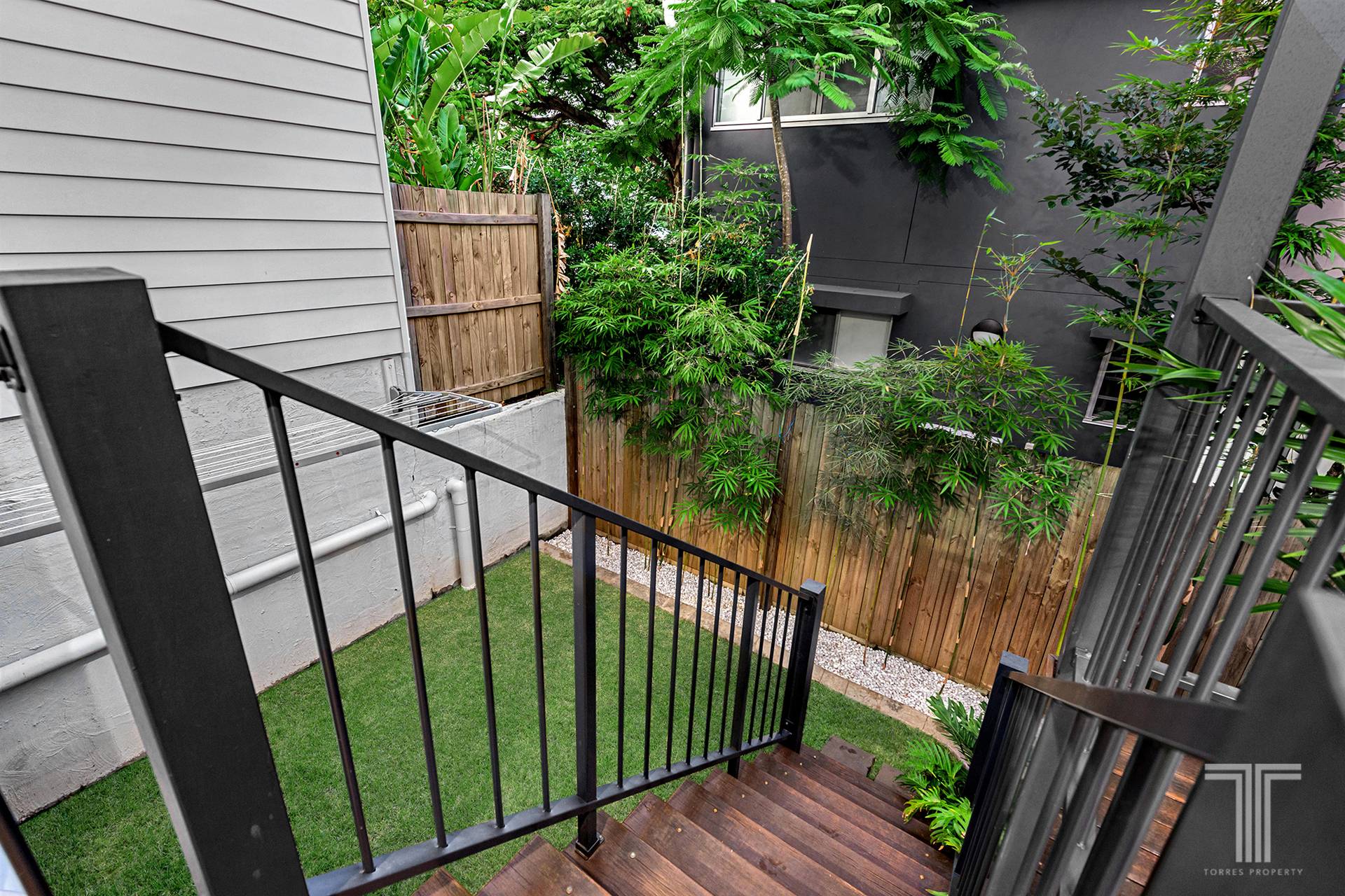 Outside you will discover a peaceful and private entertaining deck overlooking the private courtyard, and garden with stairs leading down. Ideal for outdoor living and entertaining, you can unwind and host guests while supervising kids and pets as they play below.