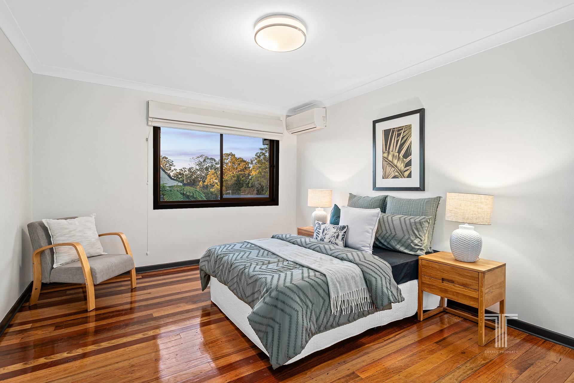 The main house features five bedrooms with built-in robes, two bathrooms, a powder room and laundry spread across two levels. Four bedrooms with timber floors and ornate ceilings reside upstairs, including the master suite with air-conditioning, a mirrored built-in robe, an ensuite, and an exclusive balcony.