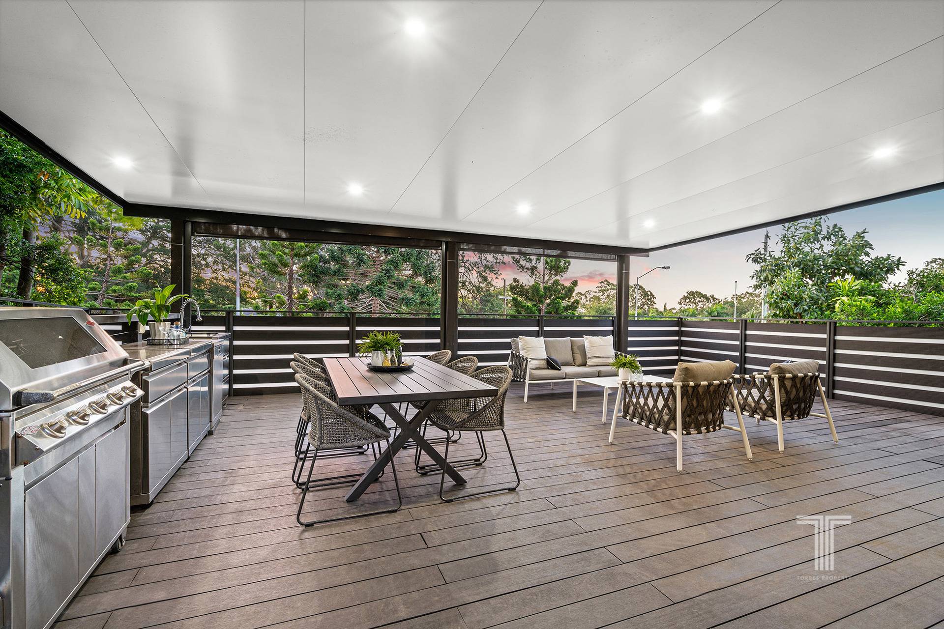 Entering via the expansive front deck, you will enjoy a seamless connection to the tree-lined views and sensational entertaining with an outdoor kitchen featuring a plumbed BBQ, sink and dishwasher for effortless alfresco cooking and dining.
