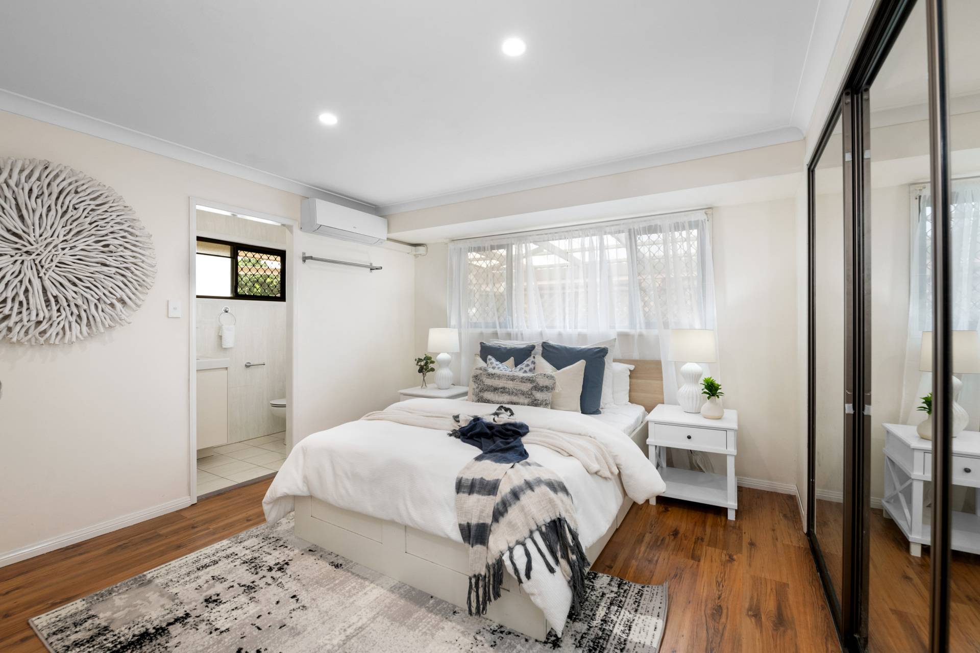 The layout accommodates growing families with four bedrooms, a study and two bathrooms. Parents can relax in the master suite, featuring air-conditioning, a mirrored built-in robe and an ensuite.