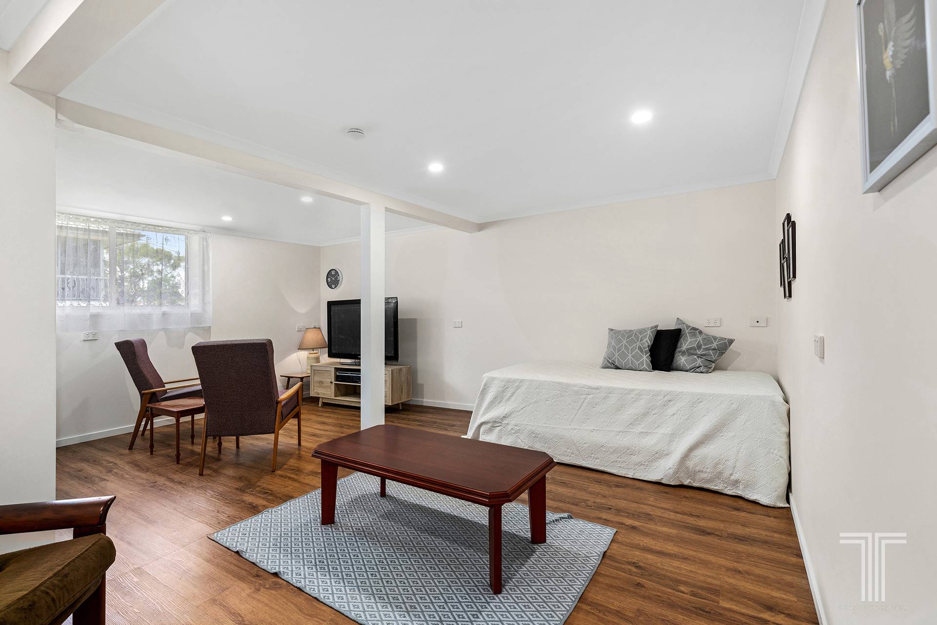 There is scope for independent/dual living downstairs with a large multipurpose room, a well-appointed kitchenette and a modern bathroom. The double lock-up garage is also on this floor and features a laundry that can be accessed by both levels.