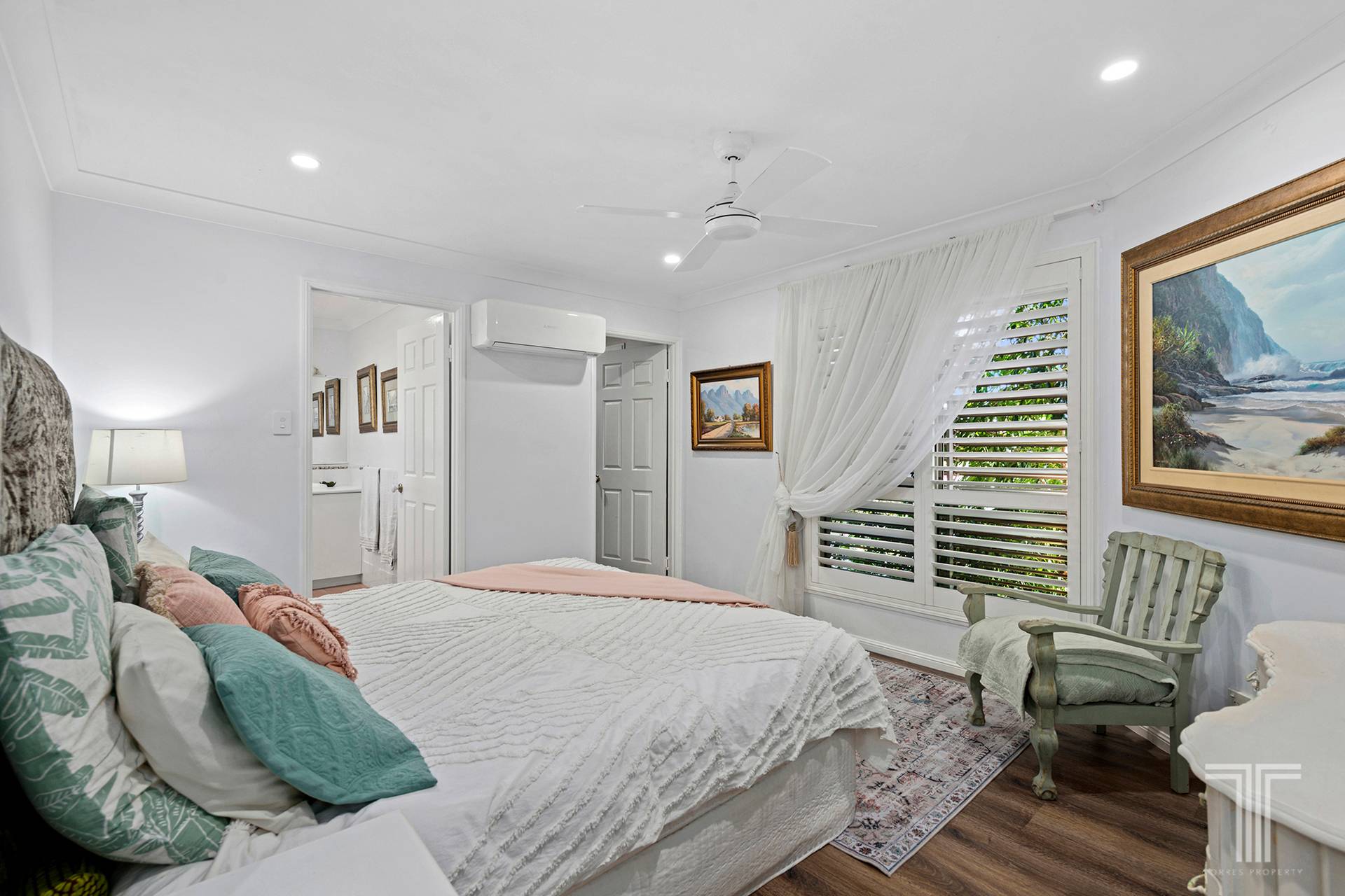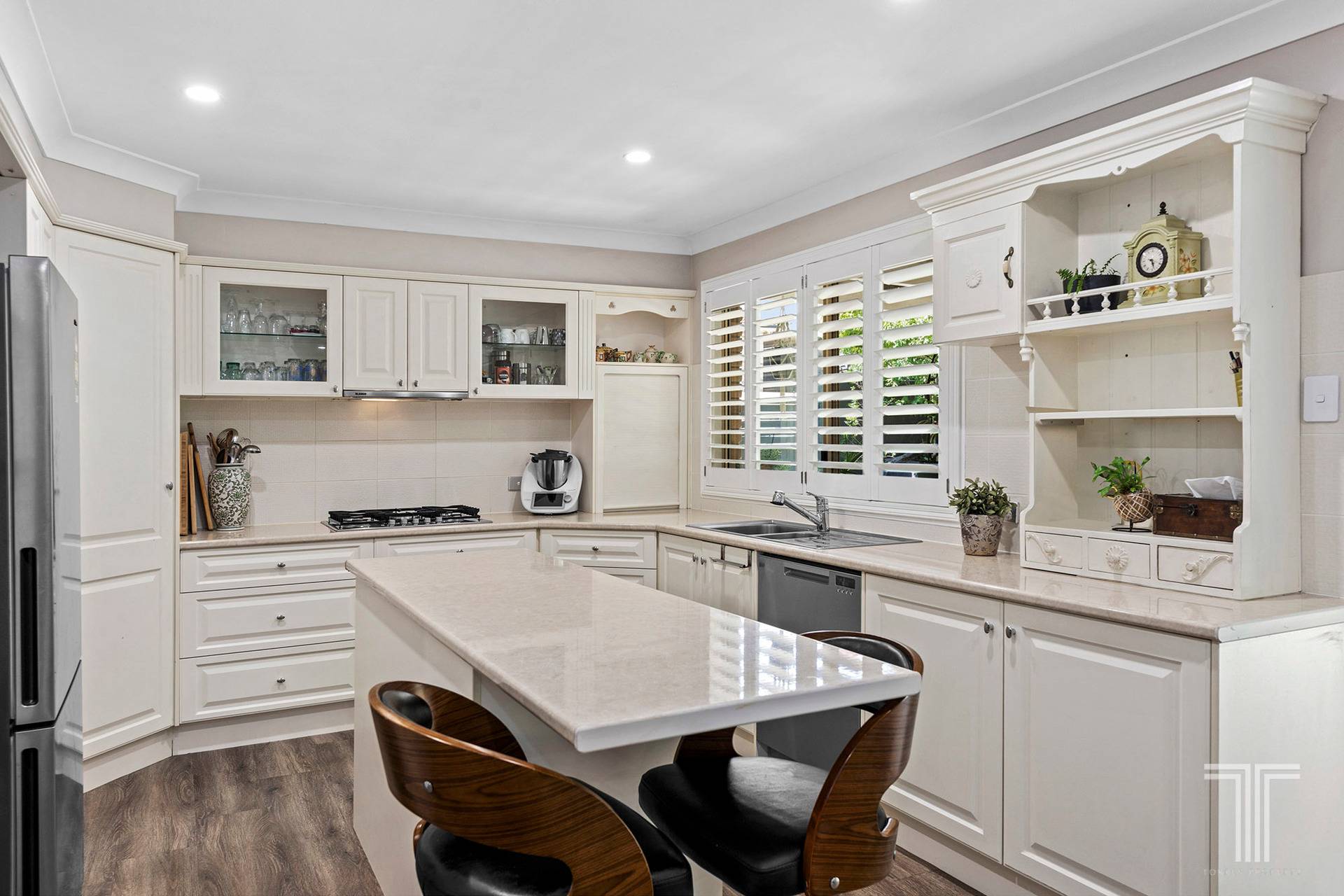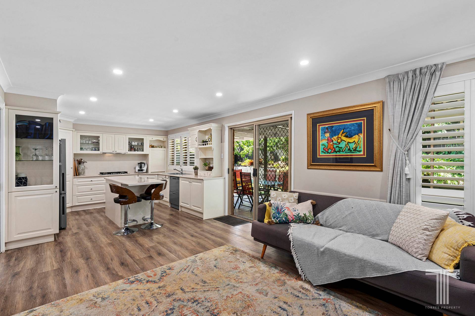 The perfect family oasis, the residence offers sensational comfort, effortless living and tranquil entertaining. Beautifully designed and updated, you will fall in love with the plantation shutters, high ceilings and luxury flooring that adorns the interiors.