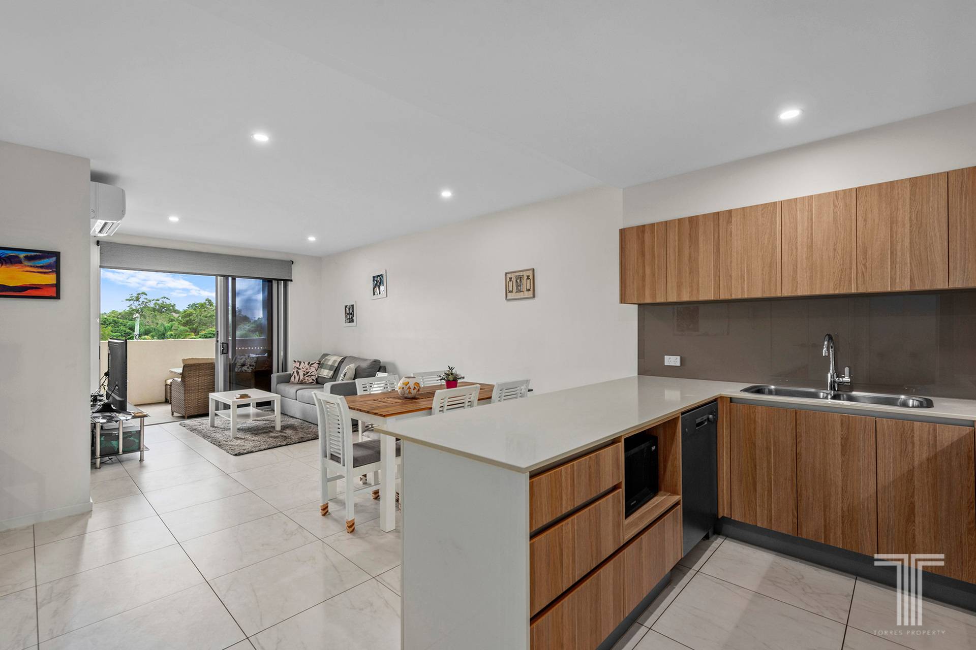 Entering inside, you are greeted by the living and dining area which reveals stylish tiled flooring and cooling breezes. Adjoining the well-appointed kitchen with an electric cooktop, oven and stainless steel dishwasher, this inviting living space flows with ease out onto the rear balcony.
