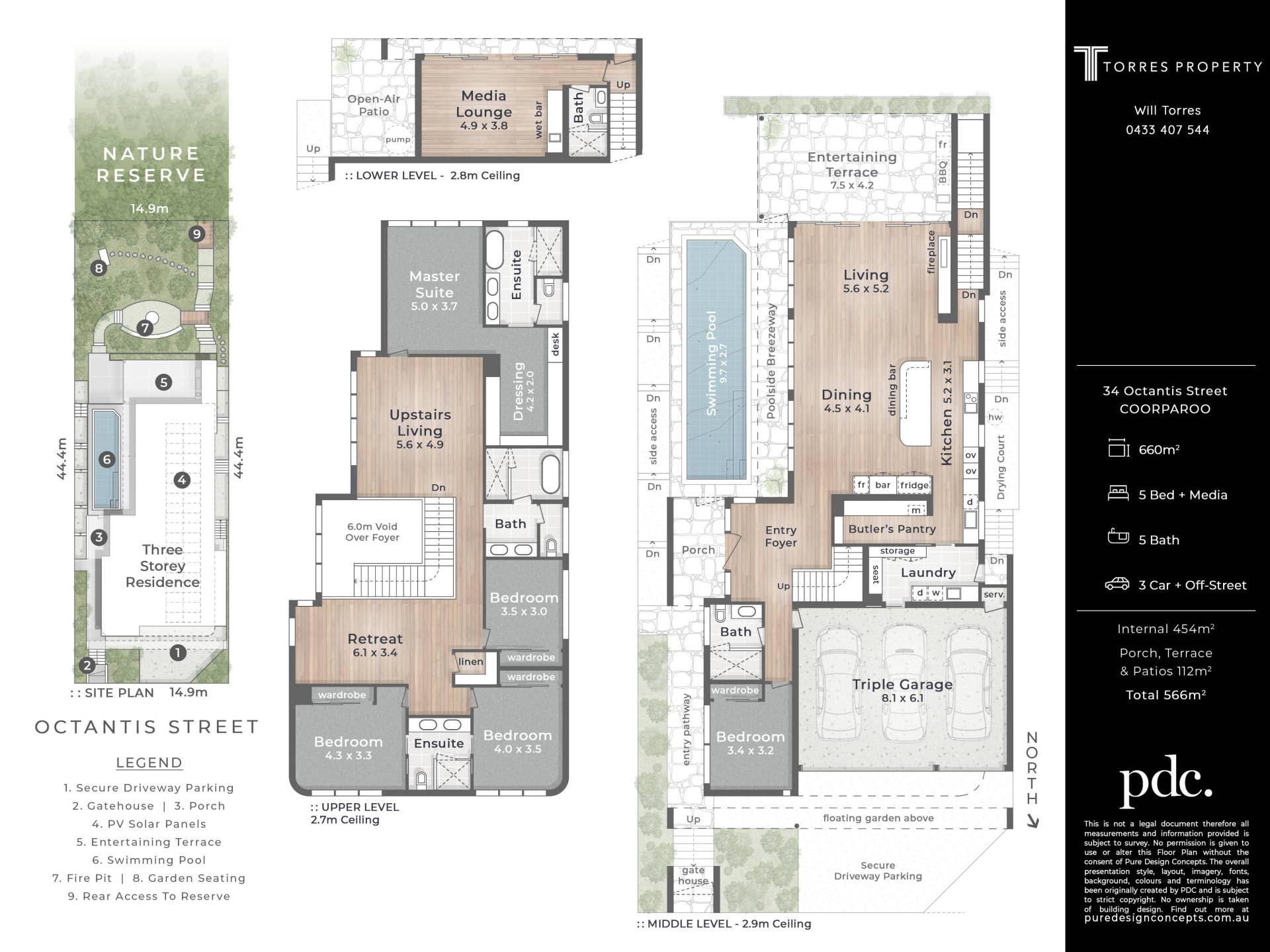 - 6m entry void, 2.9m ceilings on entry-level; 2.7m ceilings upstairs and downstairs