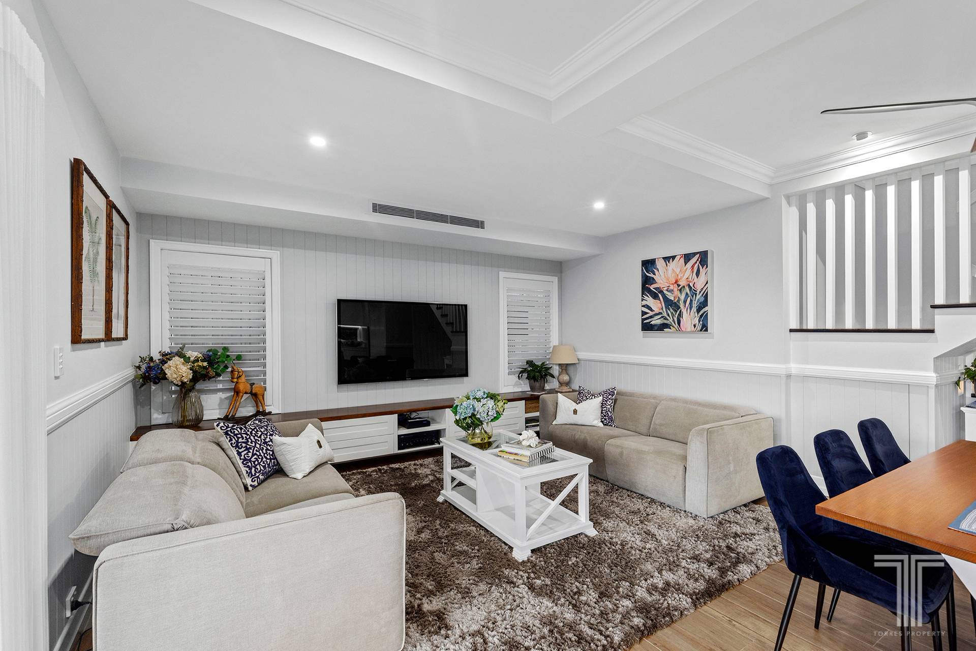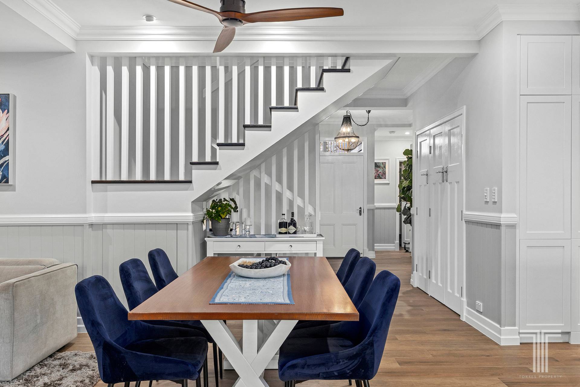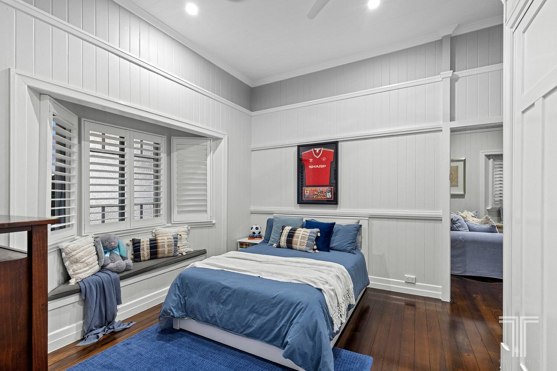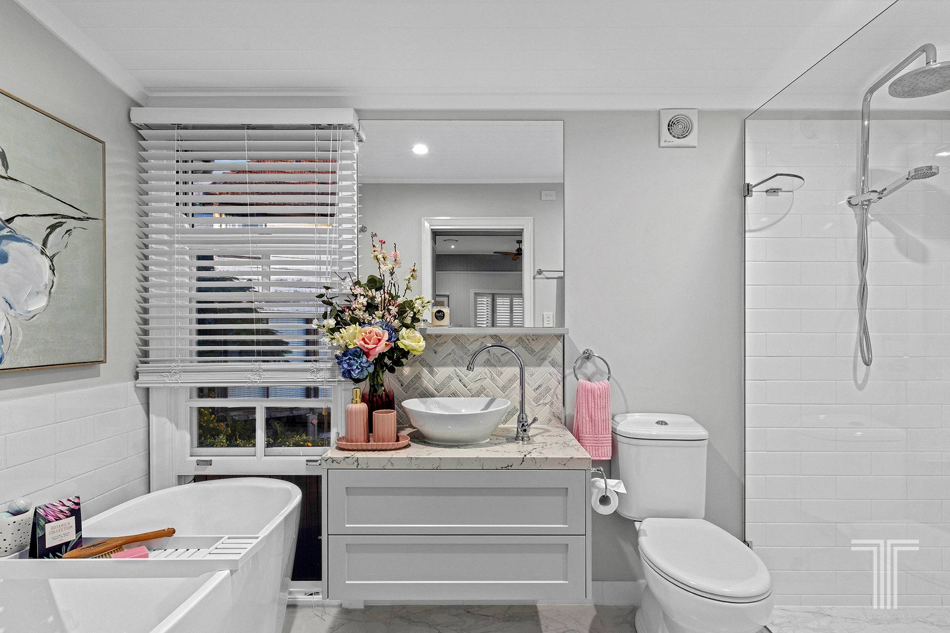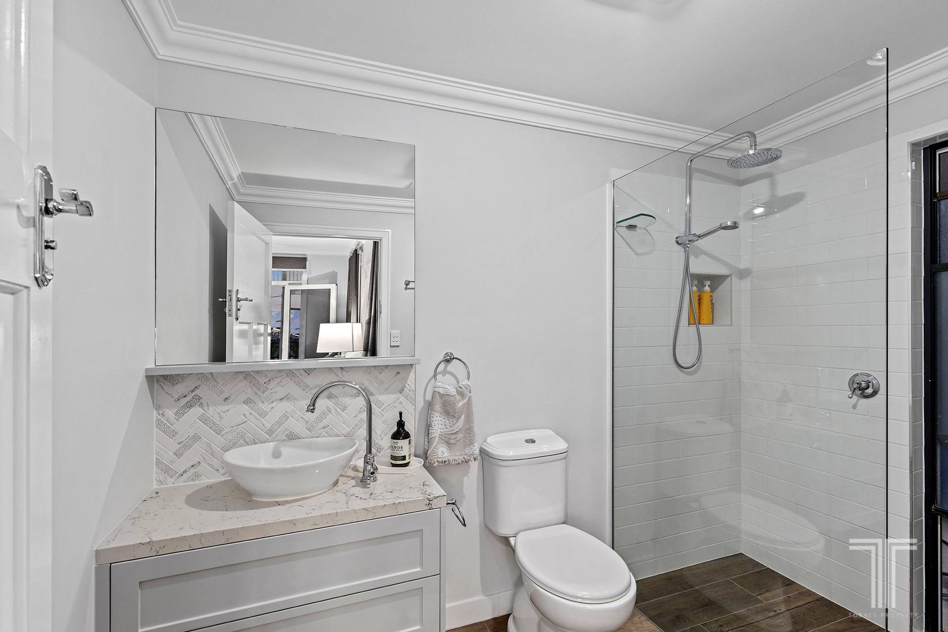 Traditional details have been lovingly retained to pay tribute to the home's history. VJ panelled feature walls, polished timber flooring, high ceilings, bay windows and stained glass exude all the charm of yesteryear and elegantly contrast the modern luxury updates, including Caesarstone kitchen benchtops and bathroom vanities.