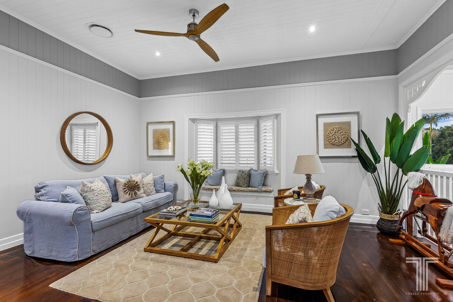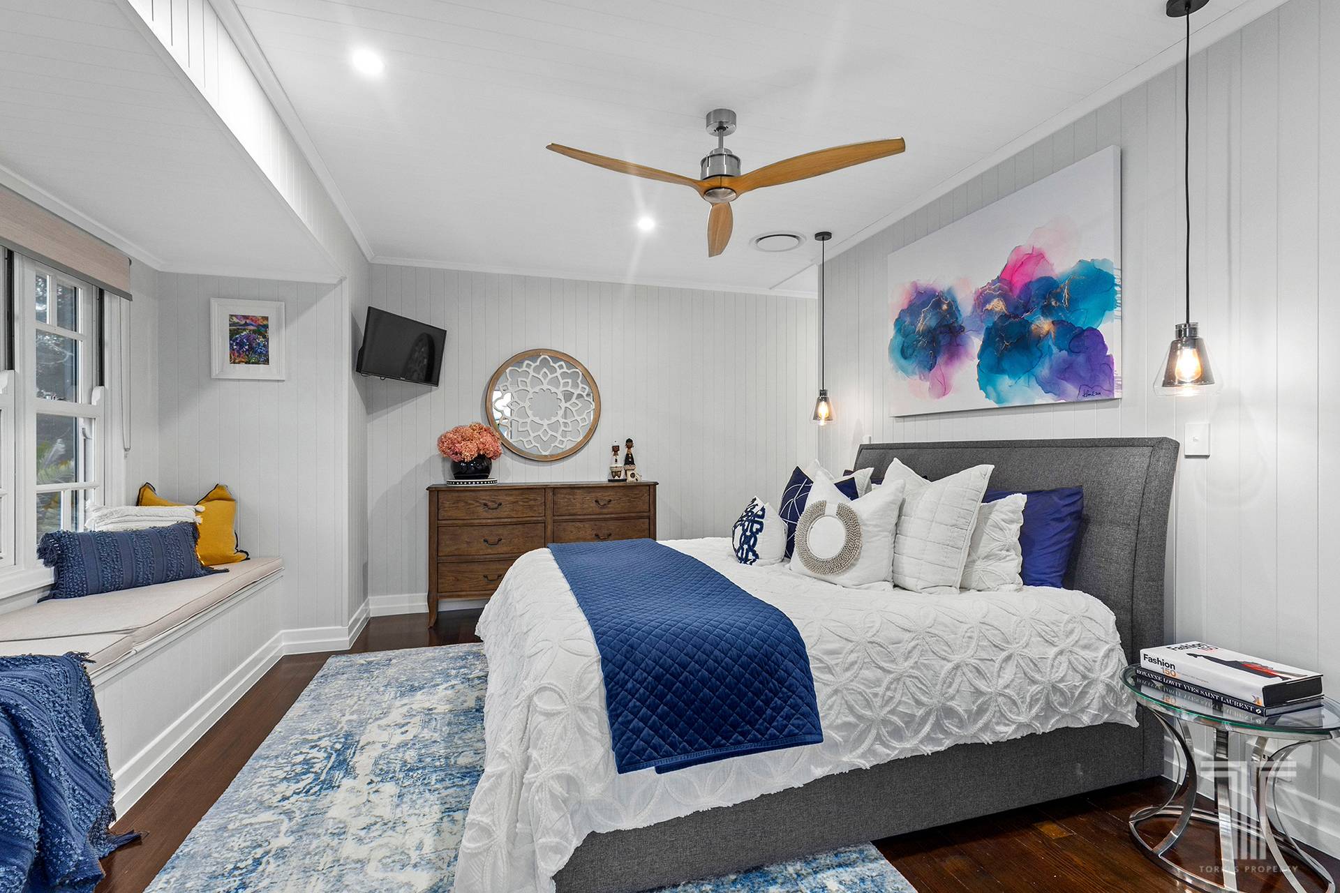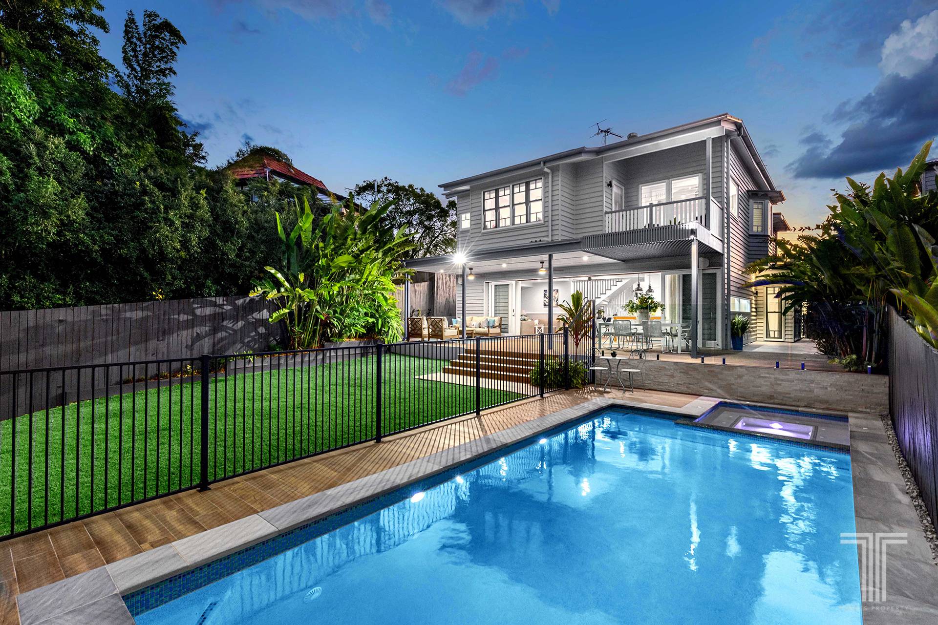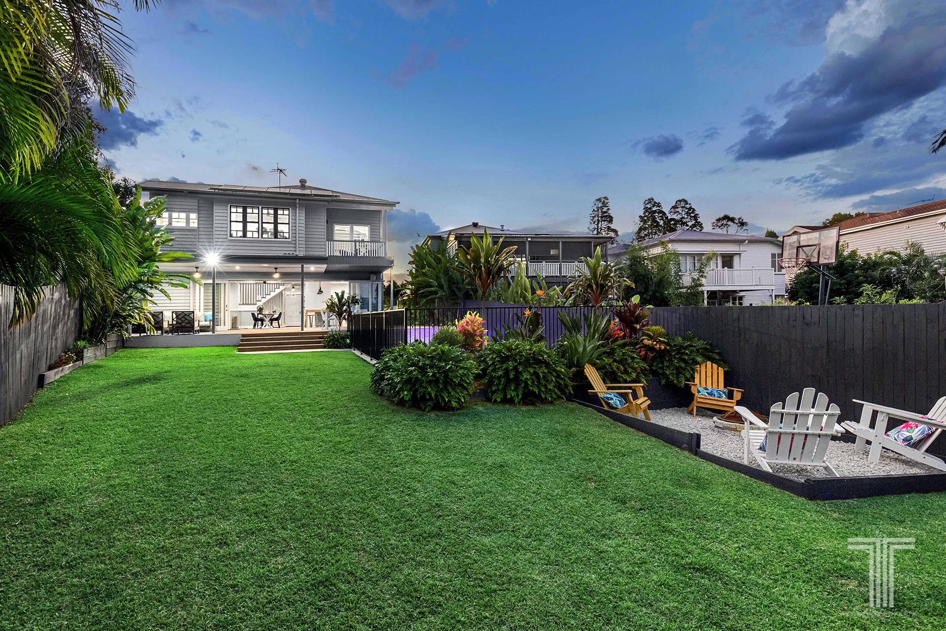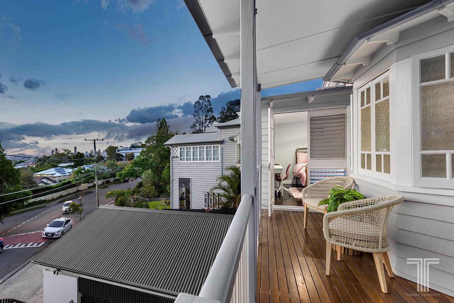 A haven of style and character, this 1933 Queenslander has undergone a complete renovation to create a stunning family masterpiece. Elevated atop a 637sqm parcel, the home delights in city views and an eastern aspect to the rear, inviting beautiful sunrises and morning light inside.