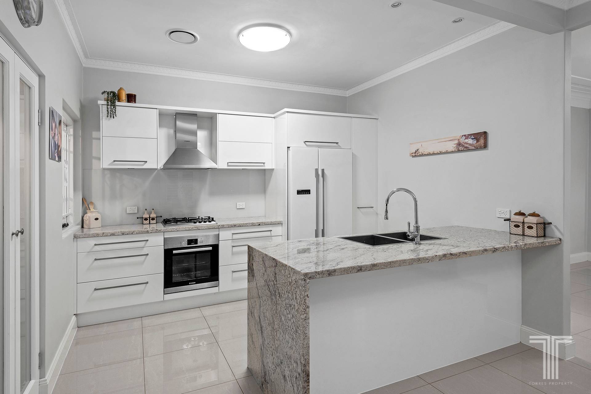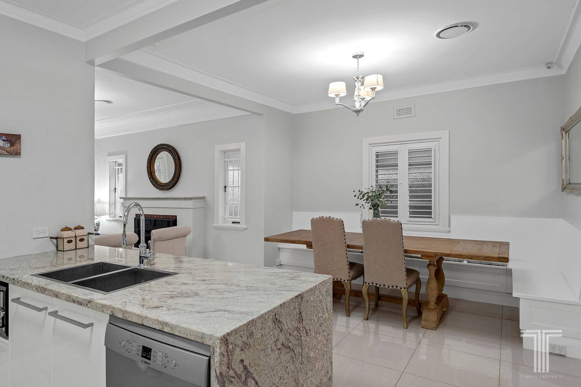 Boasting an array of living spaces and outdoor retreats across an 809sqm block, every element of the home is truly picture-perfect. The living room with a cosy granite-top fireplace and the dining area featuring integrated seating flow seamlessly into the modern kitchen adorned with a granite waterfall island, European appliances and a gas cooktop.