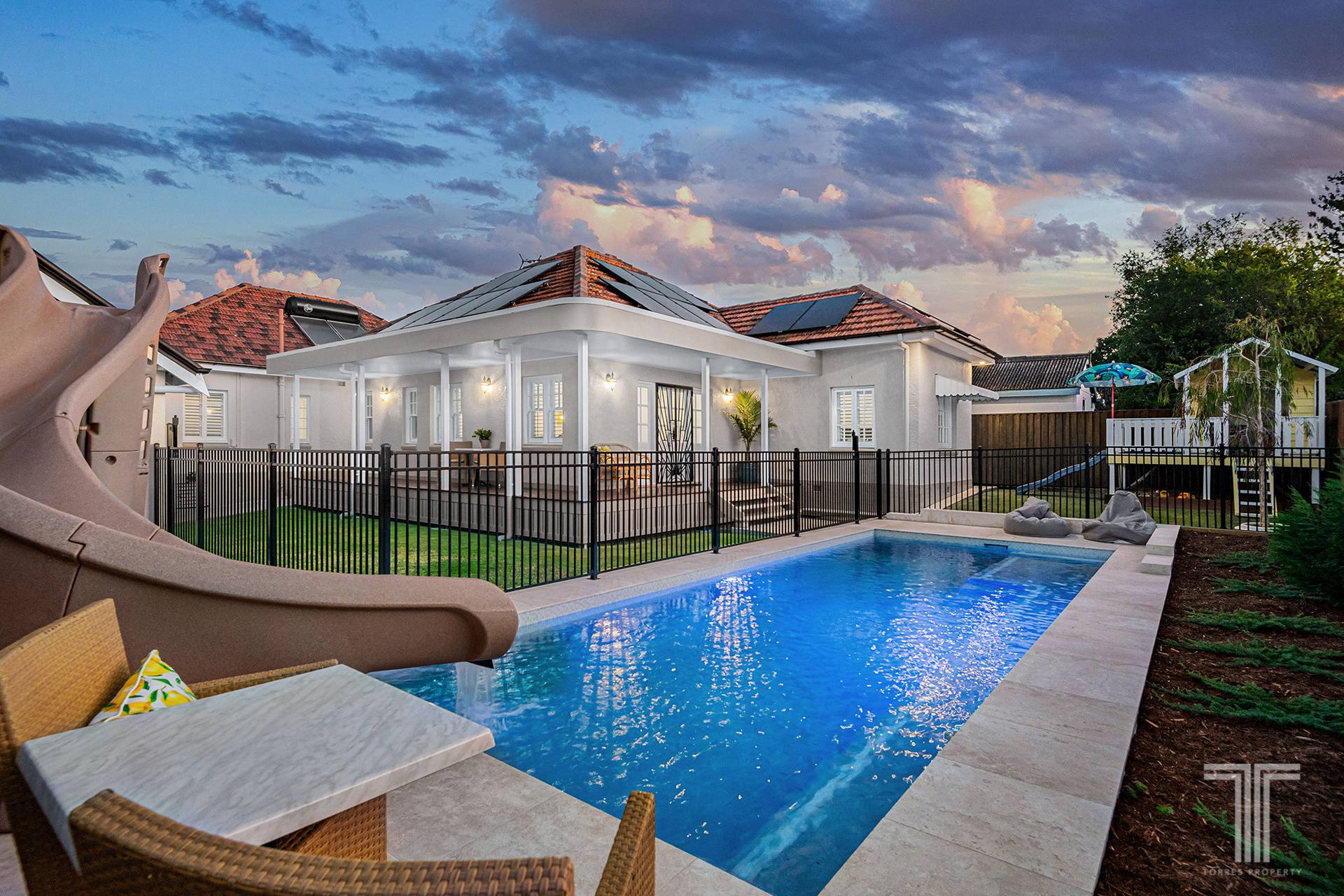 There is a lounge/media room for movie nights and a separate family lounge at the rear opening to the timber deck and secure backyard, perfect for children. An alfresco oasis catering to fun, relaxation and recreation, you can enjoy BBQs with friends as you watch kids descend the slide into the glistening pool or play in the cubby house. The lush front lawns present additional outdoor space amongst the manicured gardens.