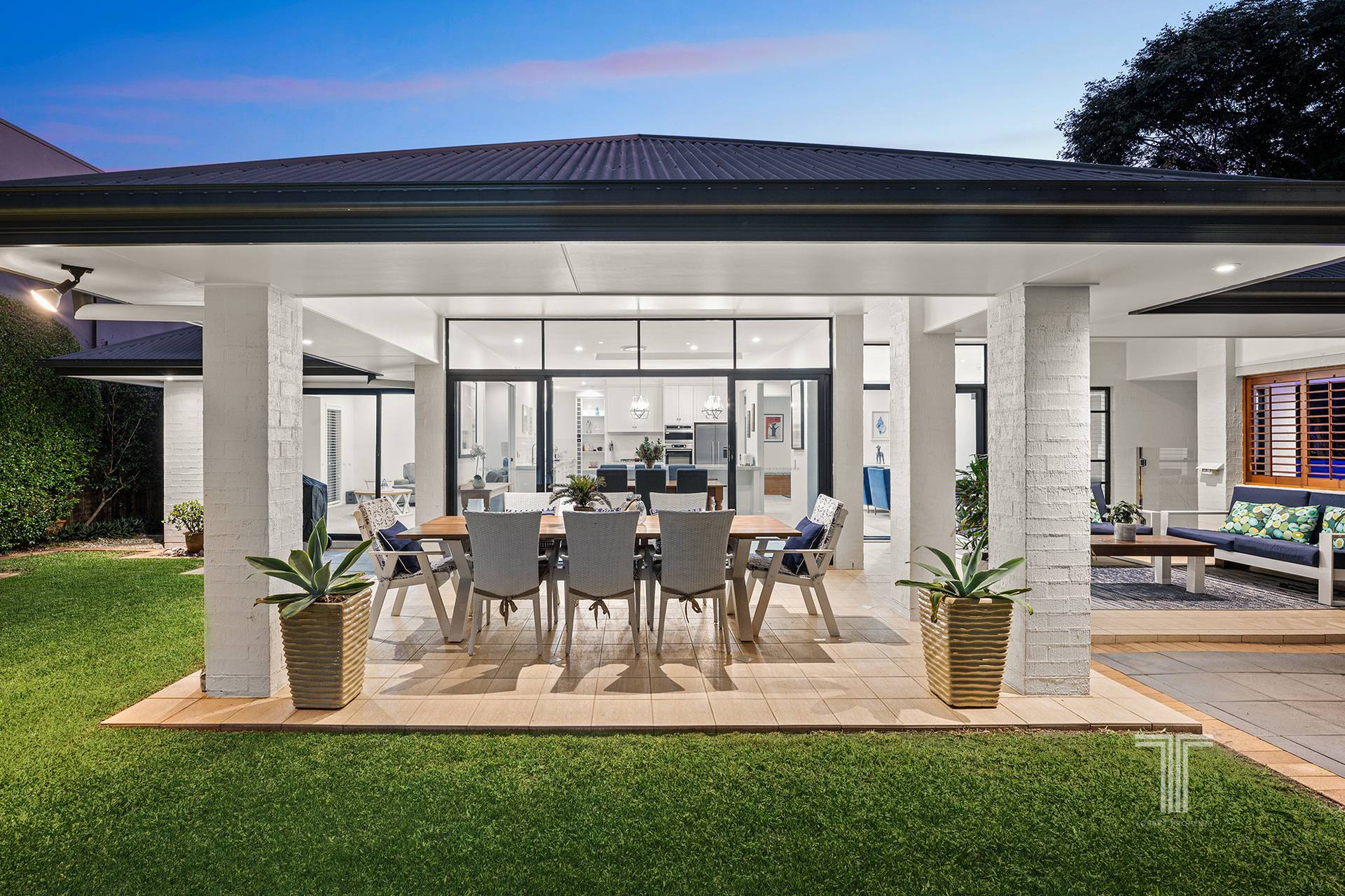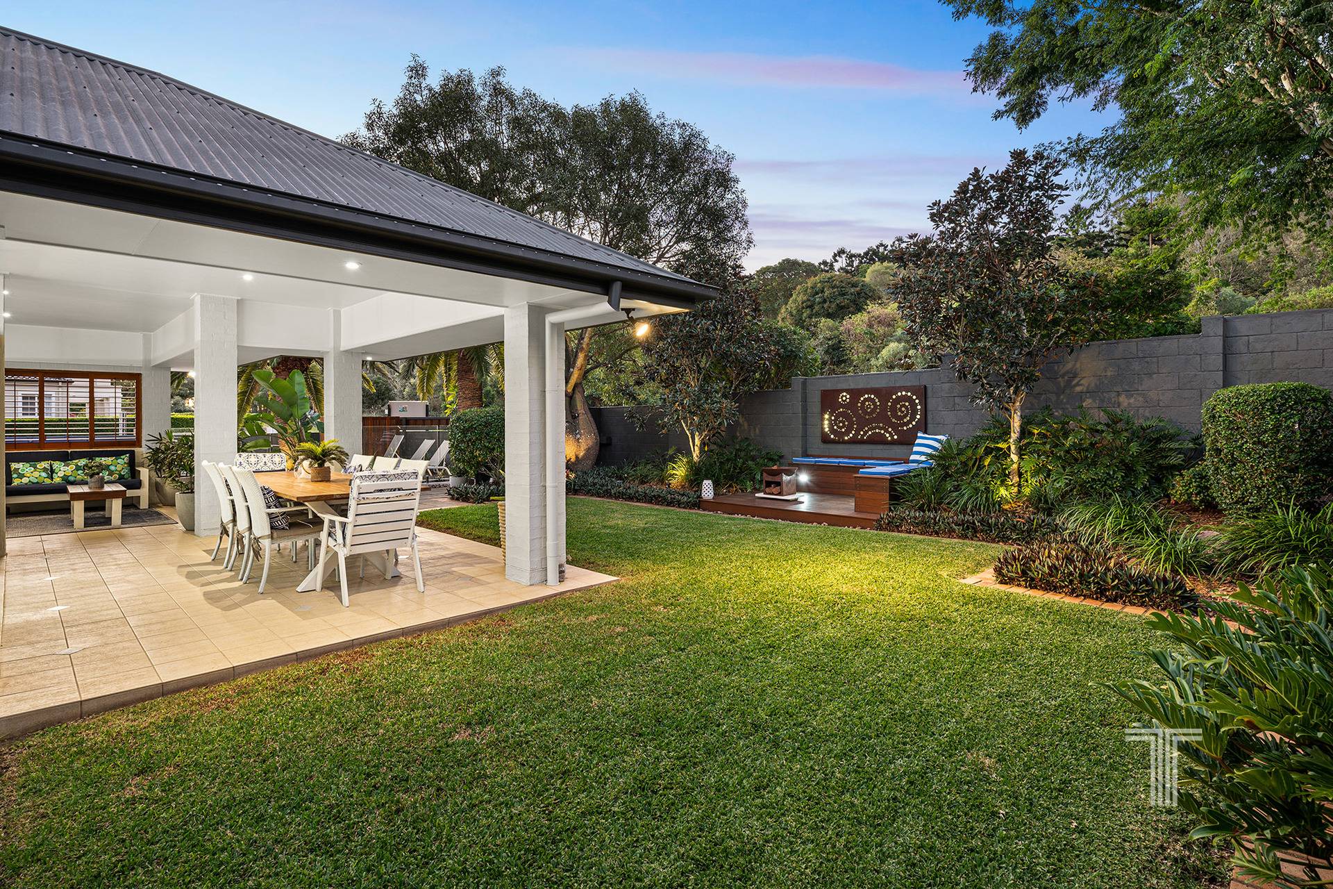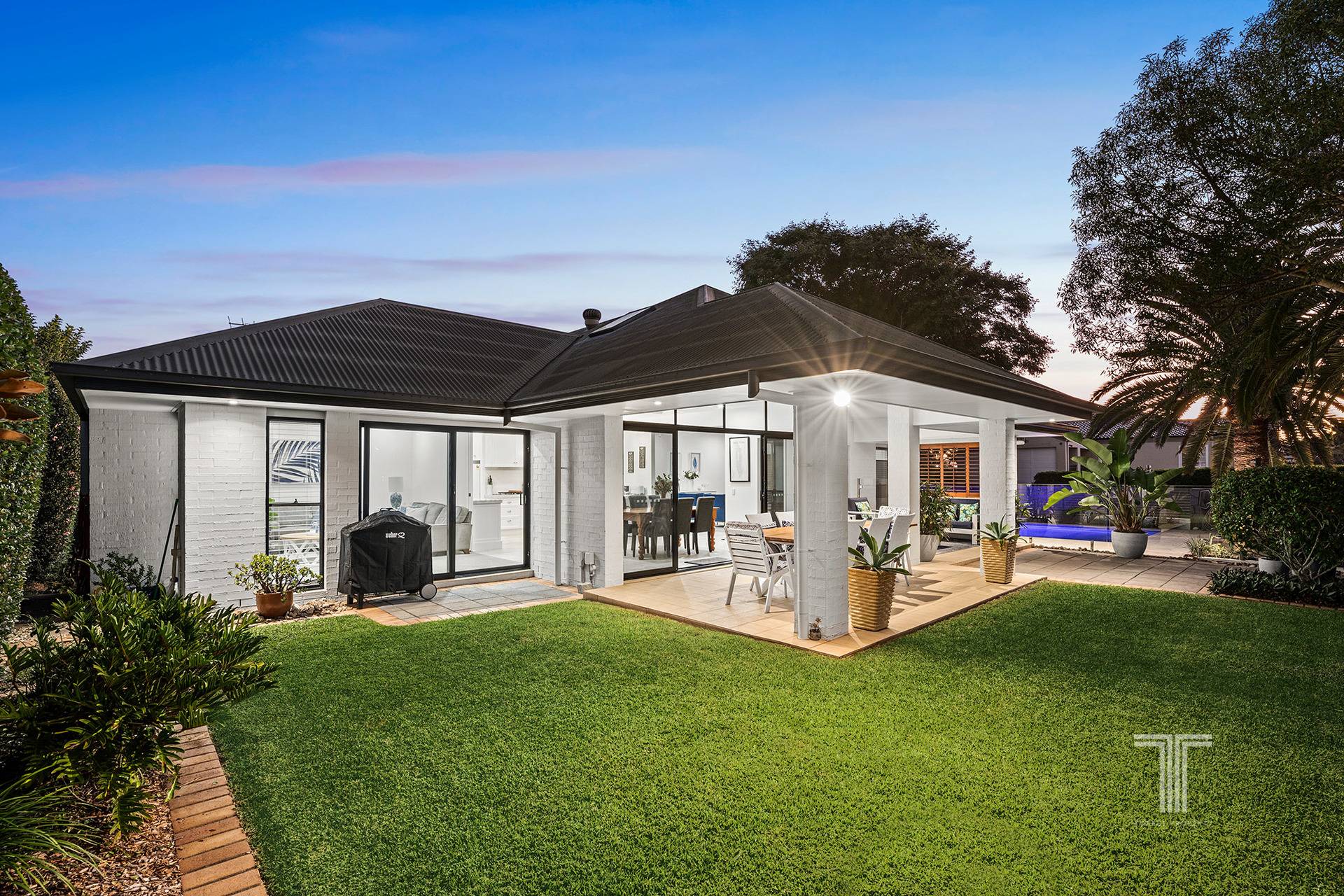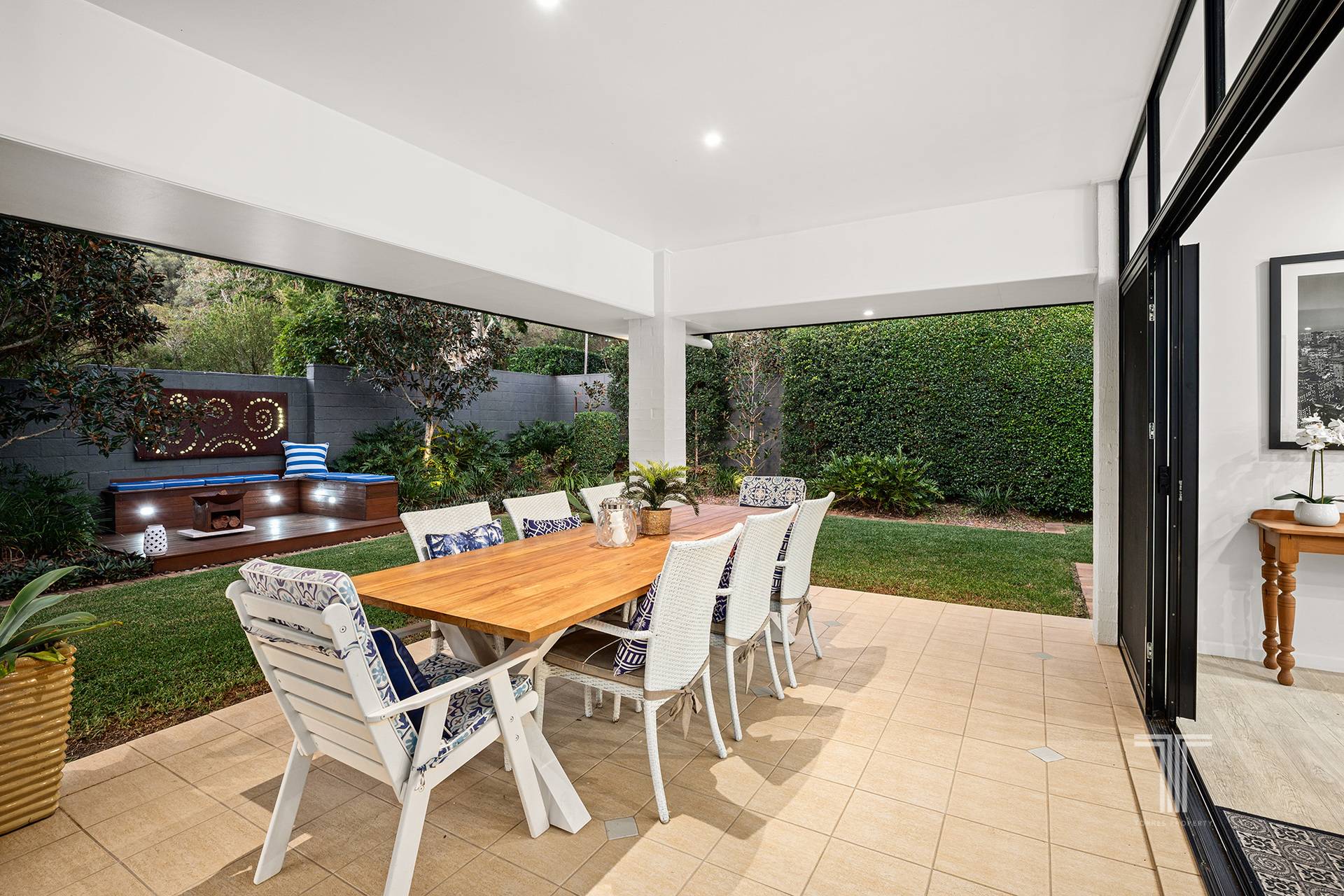 Outdoors presents a serene sanctuary amongst the well-maintained gardens and lush lawns. Host parties and dinners on the expansive undercover entertaining area, roast marshmallows by the fire pit in winter and lounge in the summer sunshine by the glistening 11m Travertine tile pool.