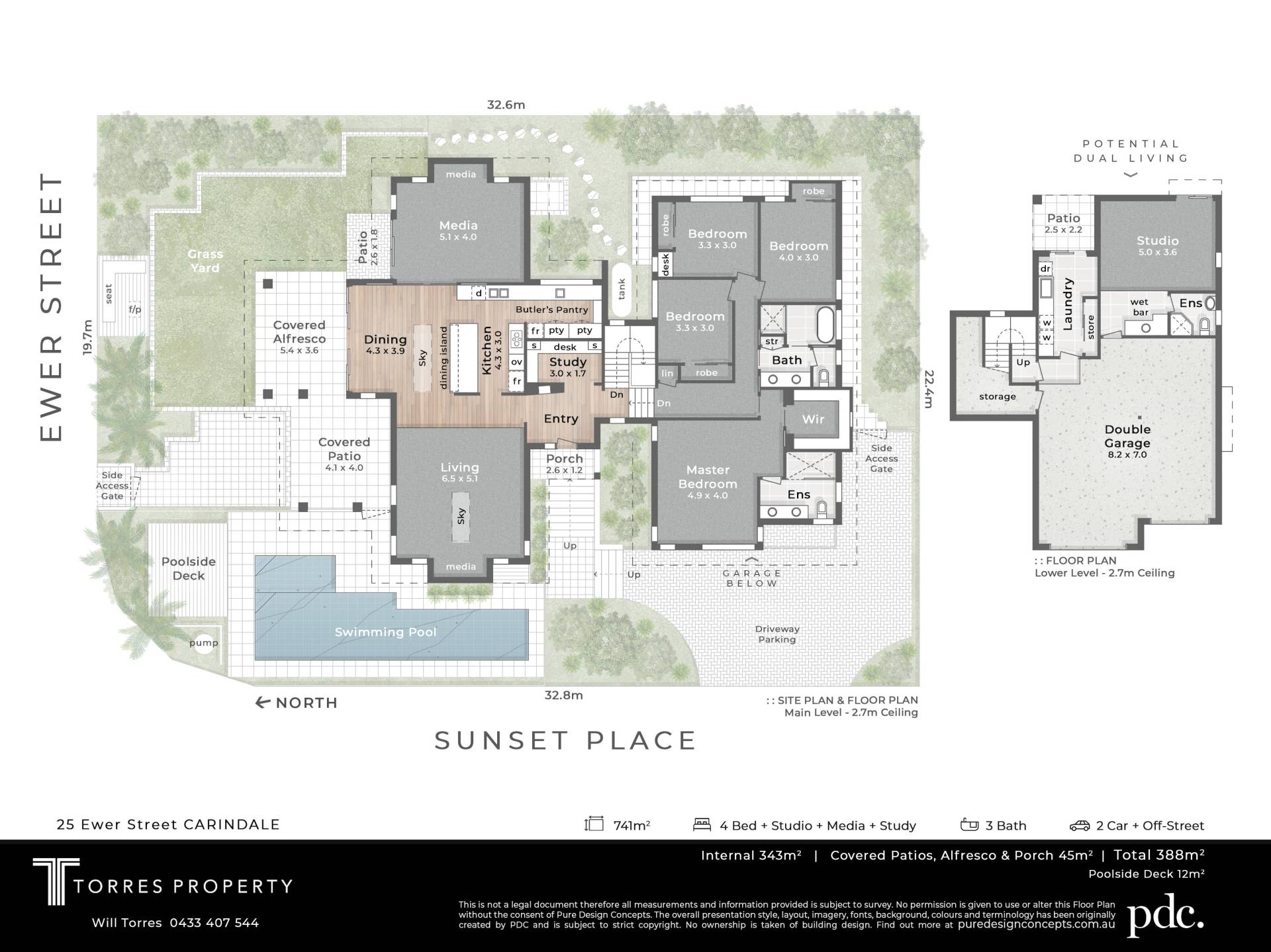 5 Beds 3 Baths 2 Cars Pool Study 741 m2