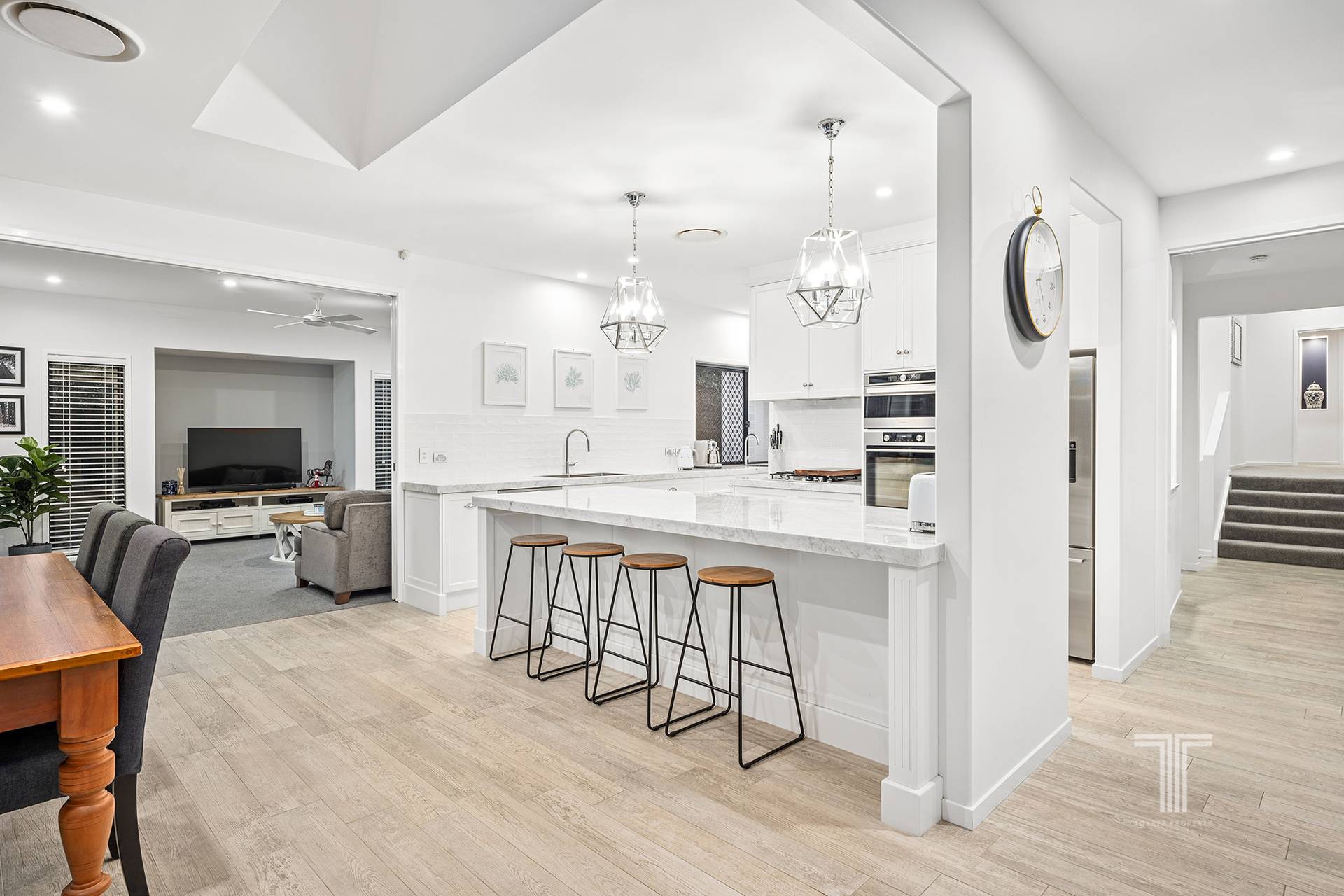 Experience uncompromised comfort and relaxation in the lounge, media room and dining area, revealing two stunning skylights and banks of glass. The renovated kitchen allows the master chef to stay connected to guests and family while cooking and unveils gorgeous Carrara marble benchtops, 2Pac cabinetry, a butler's pantry and premium appliances.