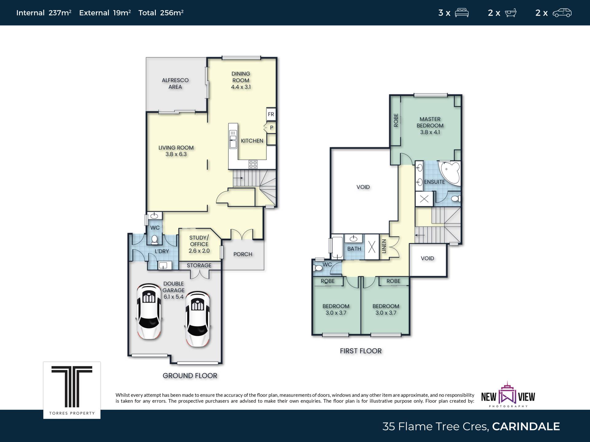 3 Beds 2 Baths 2 Cars Study 357 m2