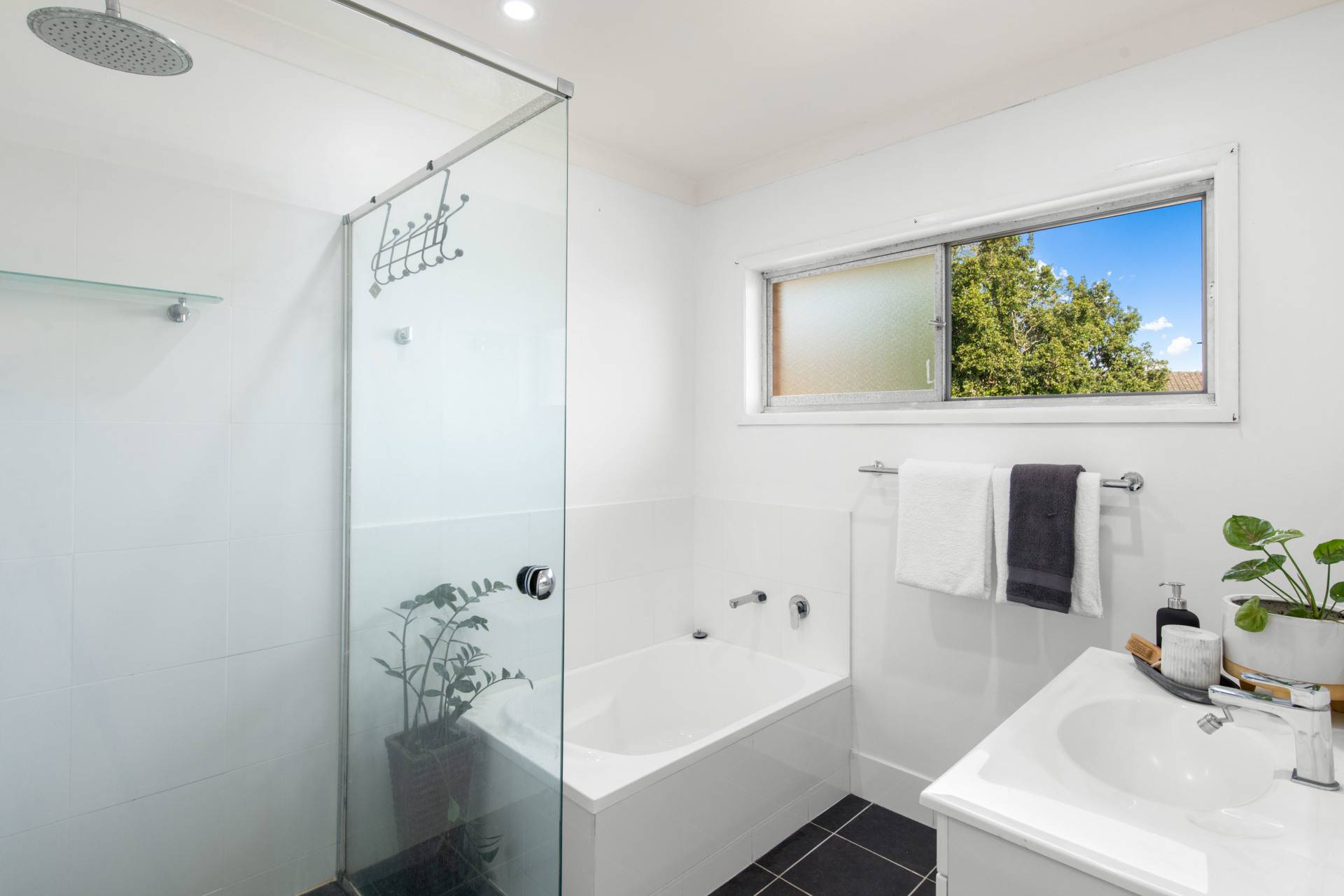 The upper floor unveils polished timber floors and a flowing design basking in gorgeous sunlight, scenic greenery and tranquil mountain views. The spacious lounge opens to the front balcony taking in aspects across the front yard and gardens; the dining area is positioned by the updated kitchen, and the rear living zone leads to the back deck, where you can gaze across the mountaintops and tree-lined vistas.