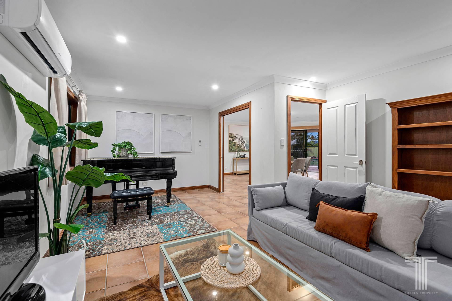 While kids run, play and swim outdoors, parents can unwind in the palatial master suite, unveiling a parent's retreat, walk-in robe, private patio and dual vanity ensuite with a relaxing bath. Two additional bedrooms boast walk-in robes and pool views, and the fourth includes a built-in robe and easy access to the main bathroom, also featuring dual basins and a bath.