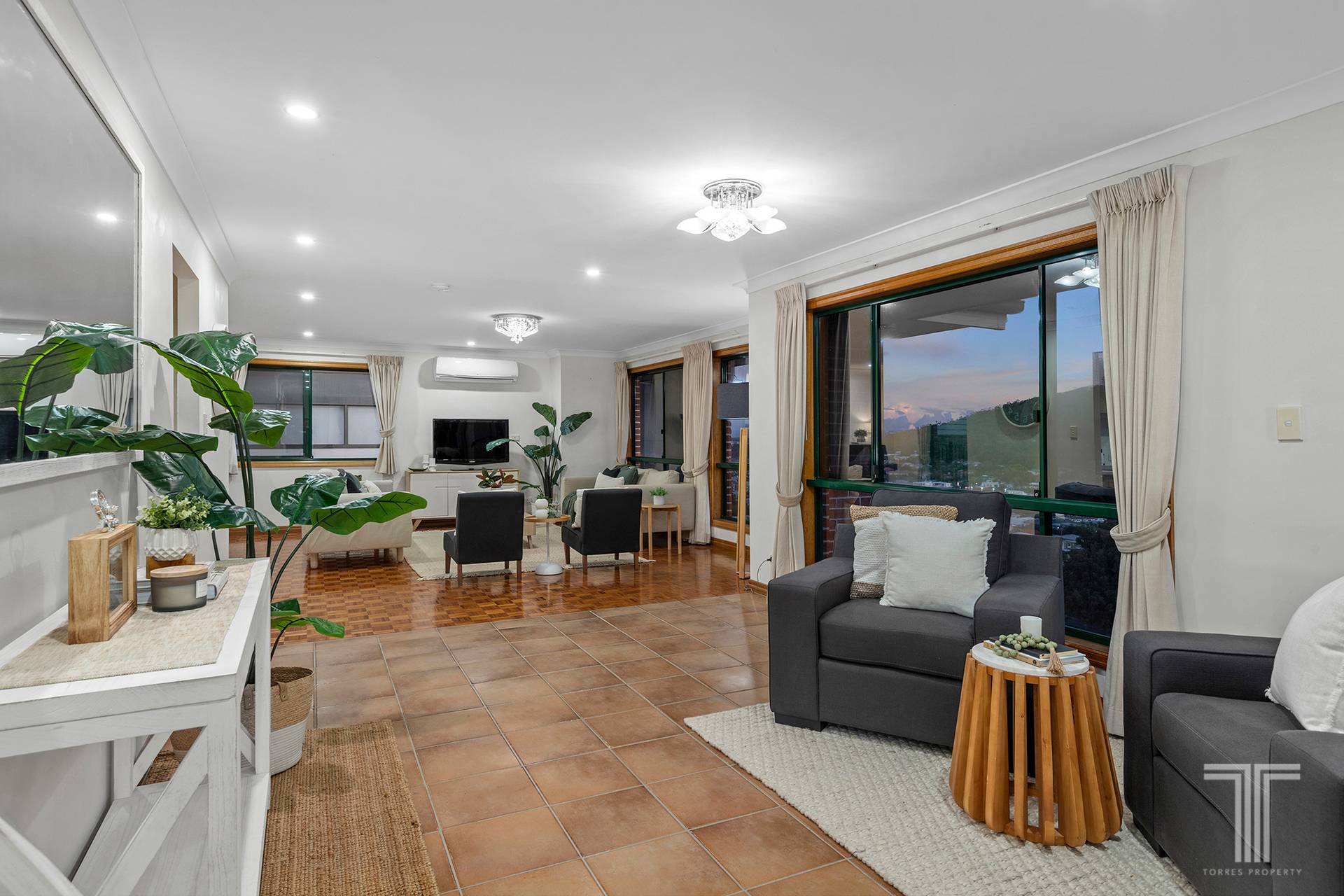 Experience top-of-the-world living and unrivalled tranquillity in this large family home boasting an incredible position on a sprawling 1,022sqm parcel of land. Elevated in one of the best street in the suburb, named for its sensational views, the house harnesses sweeping outlooks across the mountain, endless greenery and stunning suburban landscape.
