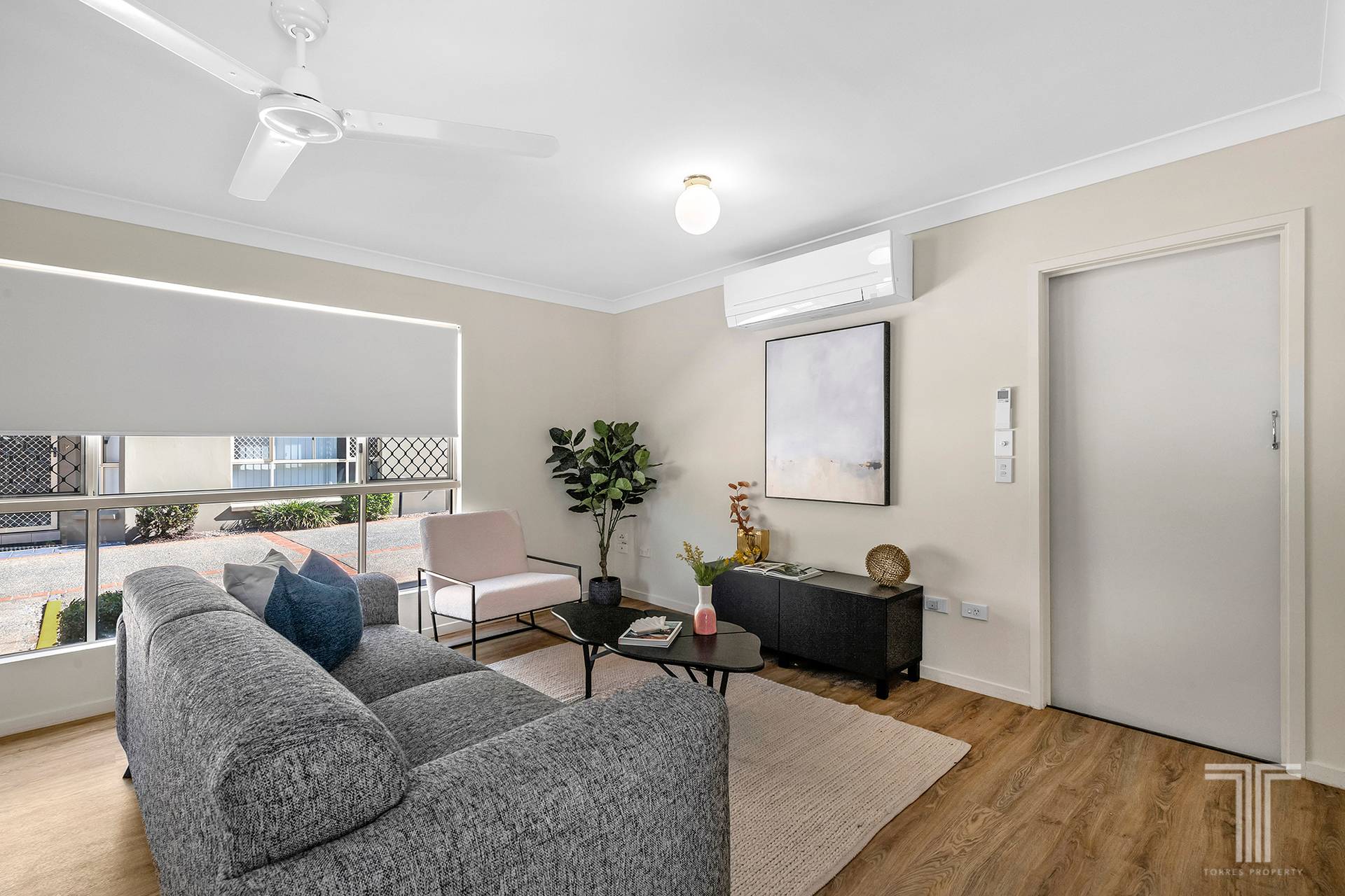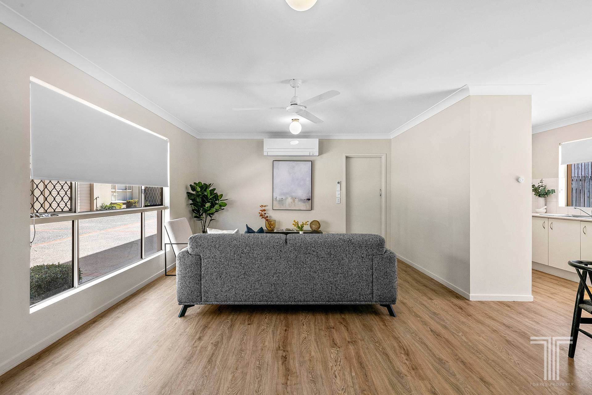 The open layout comprises a generous living and dining area with air-conditioning and a well-appointed kitchen featuring stainless steel appliances. Extending to a covered patio and secure yard, you have so much space to unwind, entertain, cook BBQs and let young kids and pets play.
